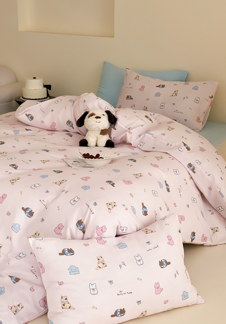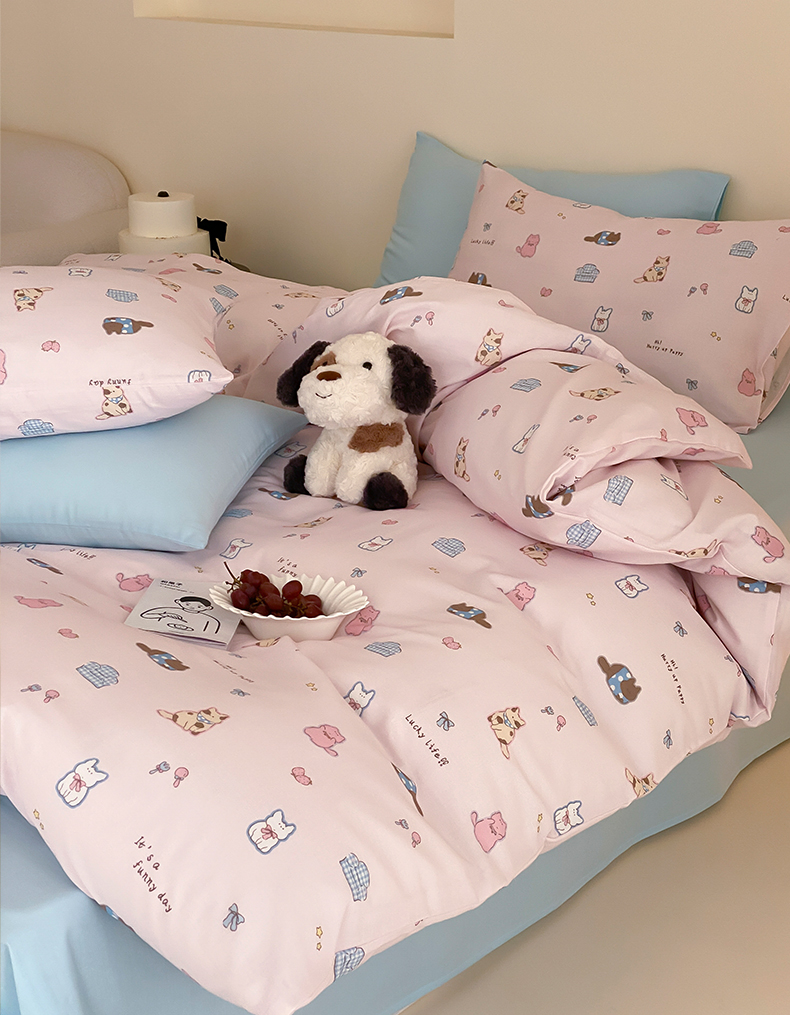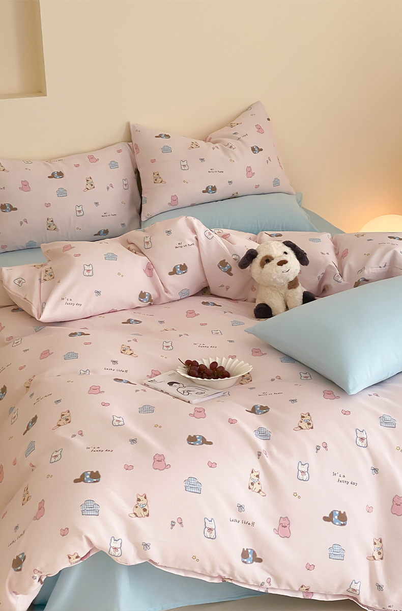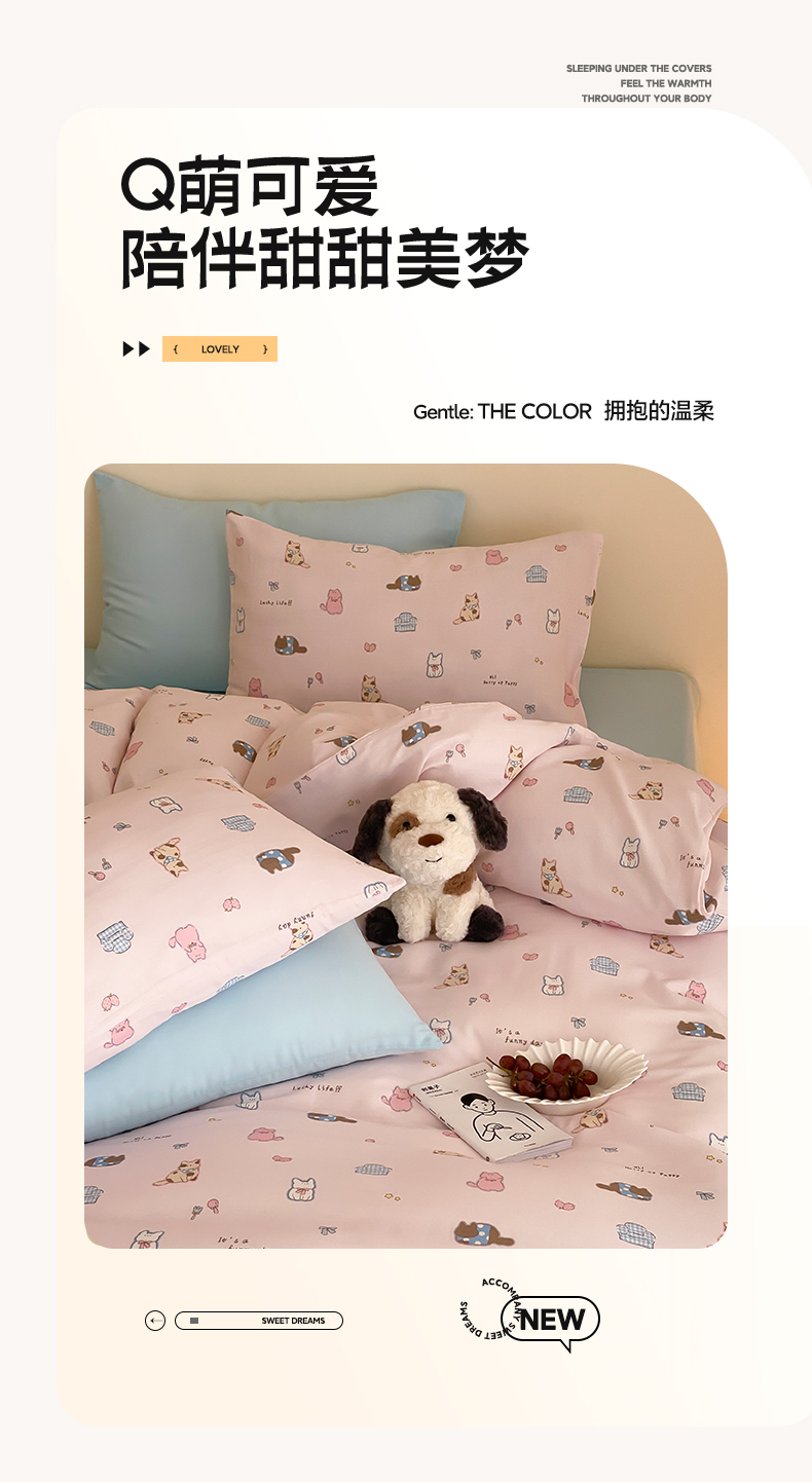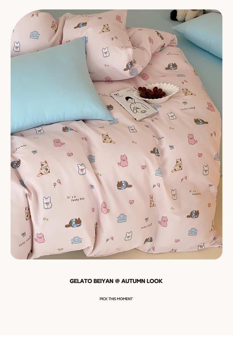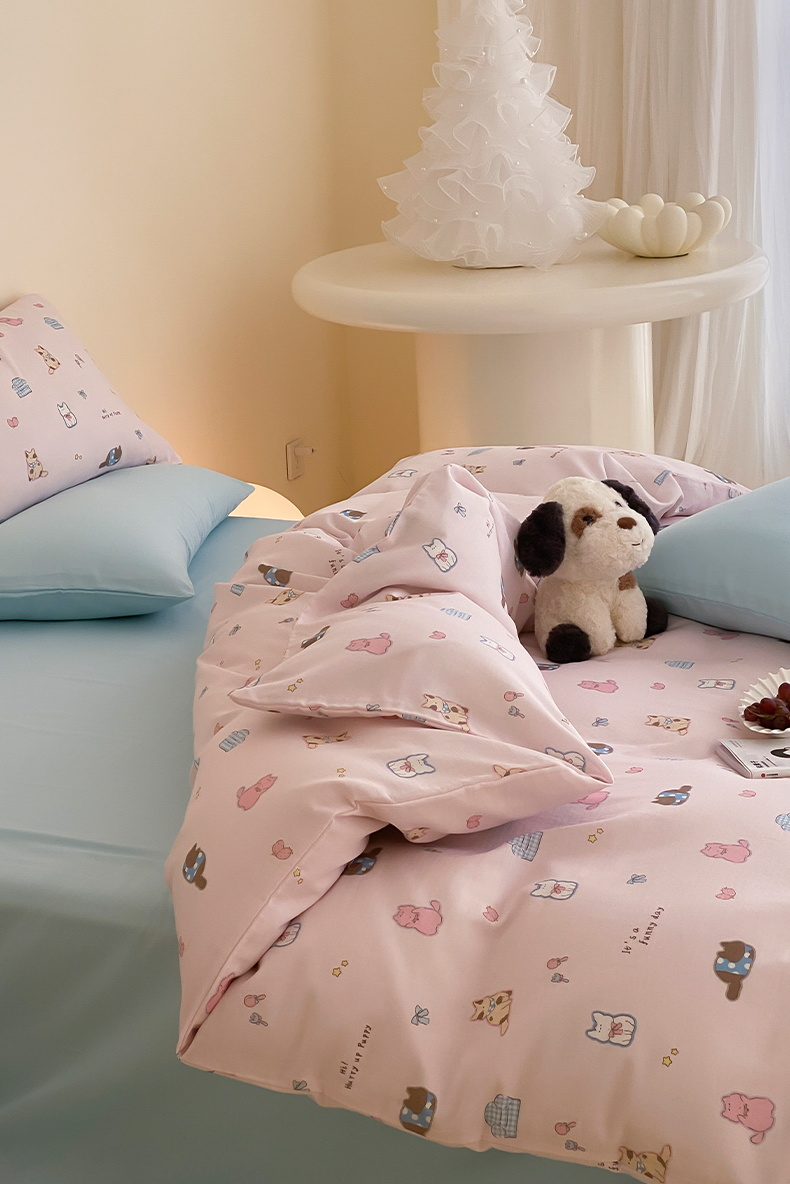 当前位置: 91家纺网 > 商品网购 > 床品套件 > 四件套 > 全棉普通四件套 > 时光里 2025新款A类全棉双层纱套件第一波 猫圈世界-粉