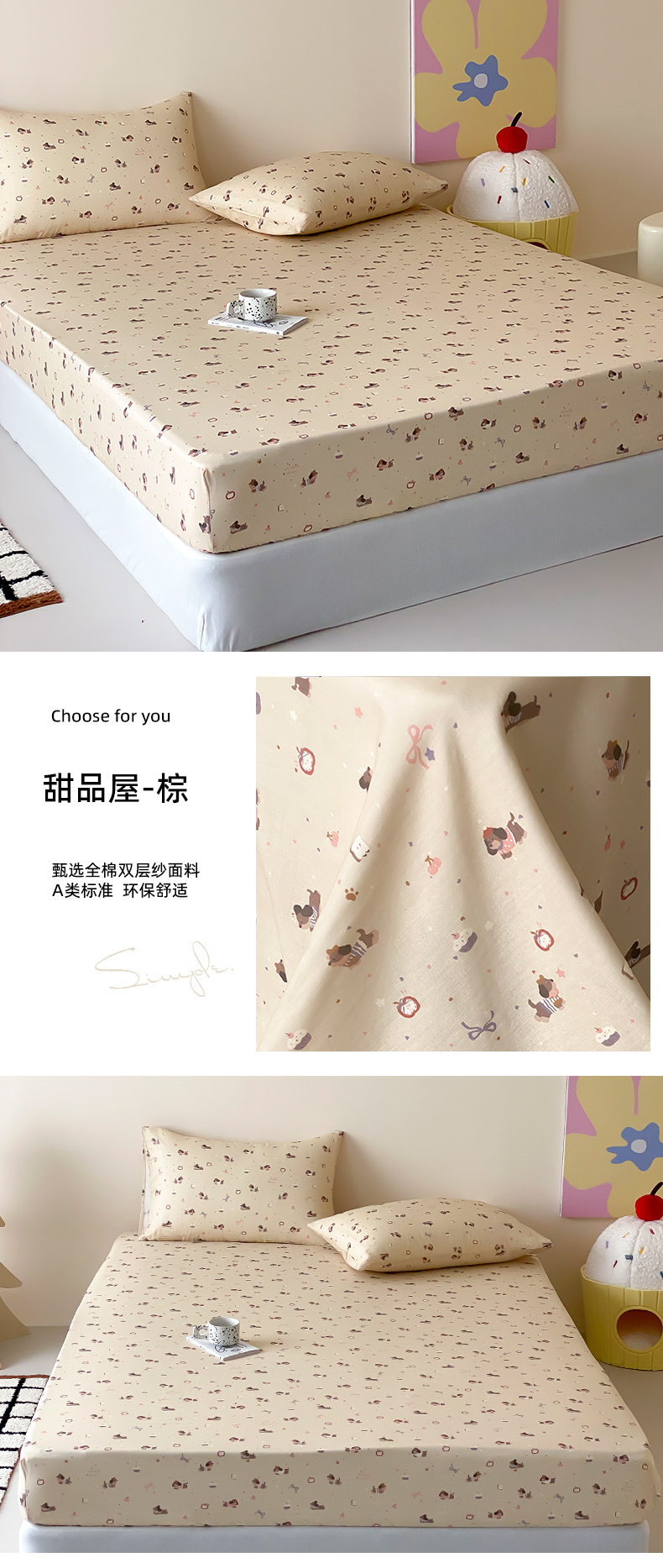 (总)时光里 2025新款双层纱系列卡通风床单,豹豹妮,啵啵乐园,布丁,可艾,萌宠宝宝-绿,如甜初梦,甜品屋-棕,小兔乖乖,竹汐恋,卡通风集合图
