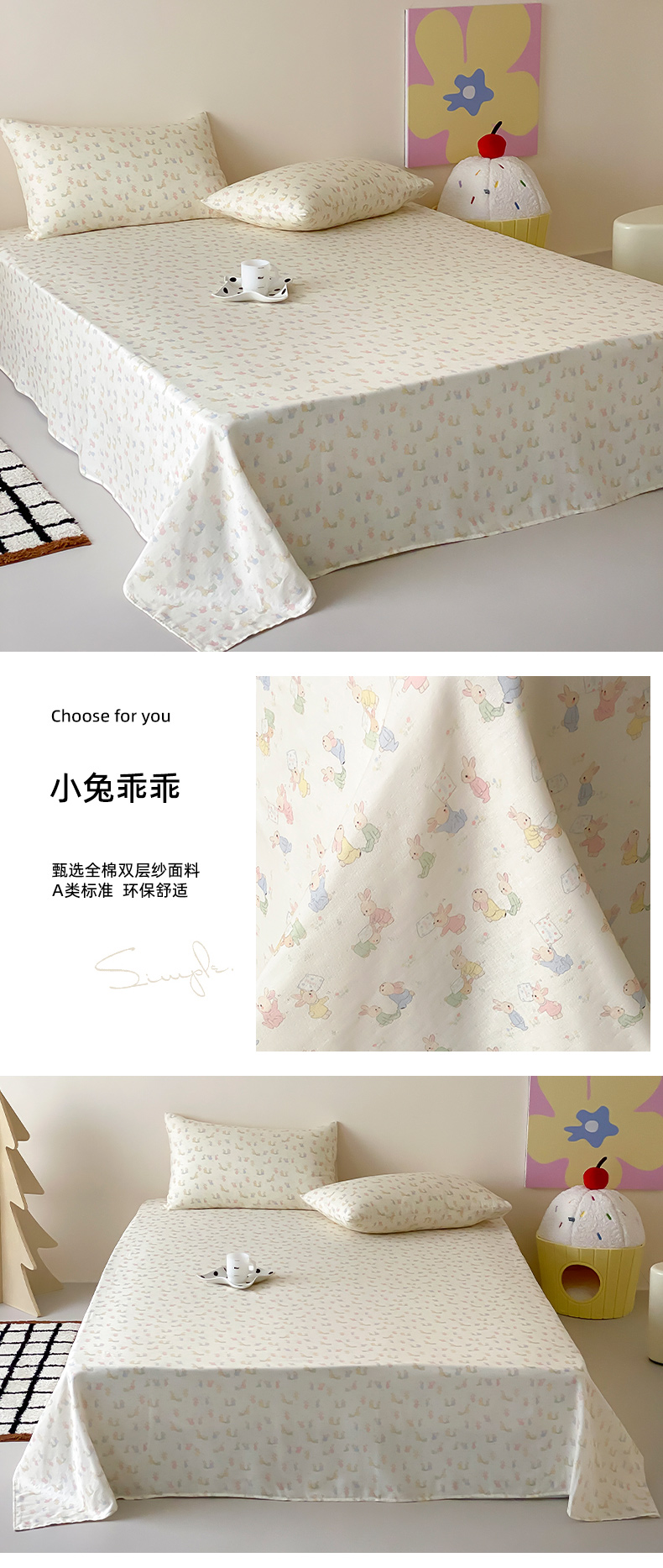 (总)时光里 2025新款双层纱系列卡通风床单,豹豹妮,啵啵乐园,布丁,可艾,萌宠宝宝-绿,如甜初梦,甜品屋-棕,小兔乖乖,竹汐恋,卡通风集合图