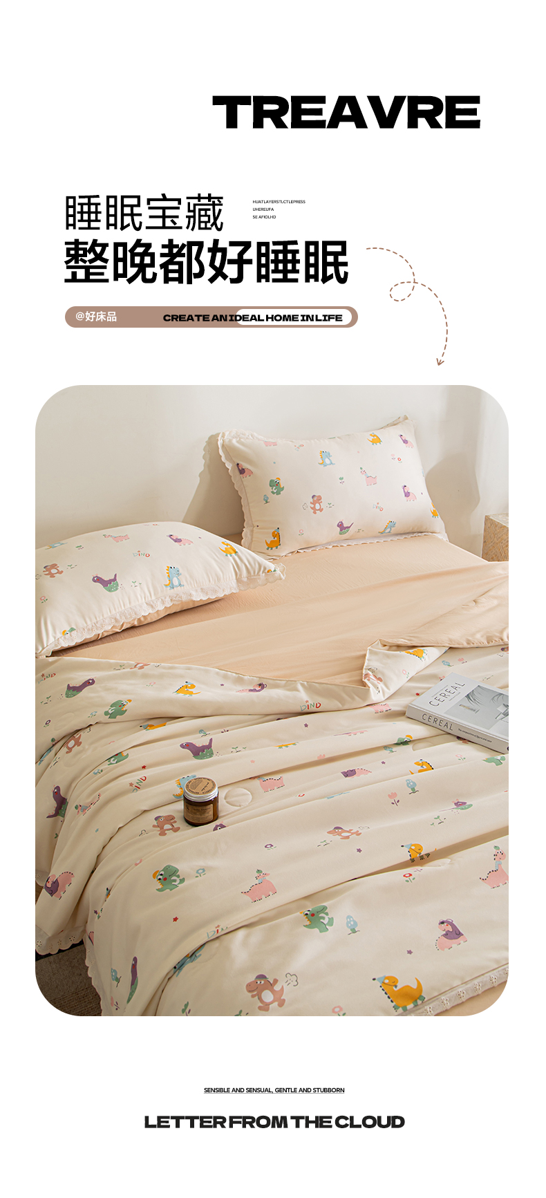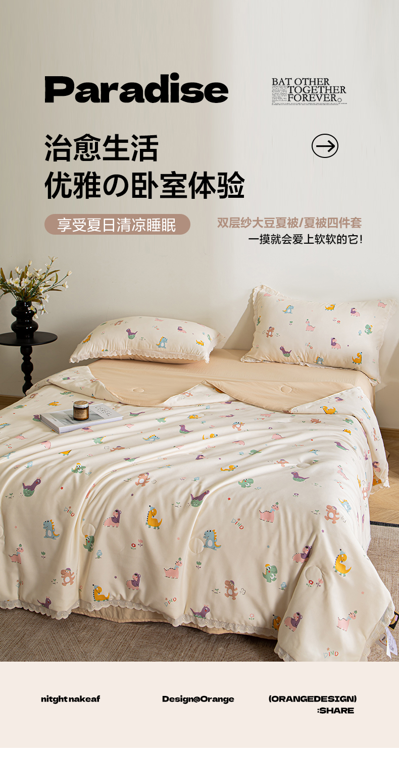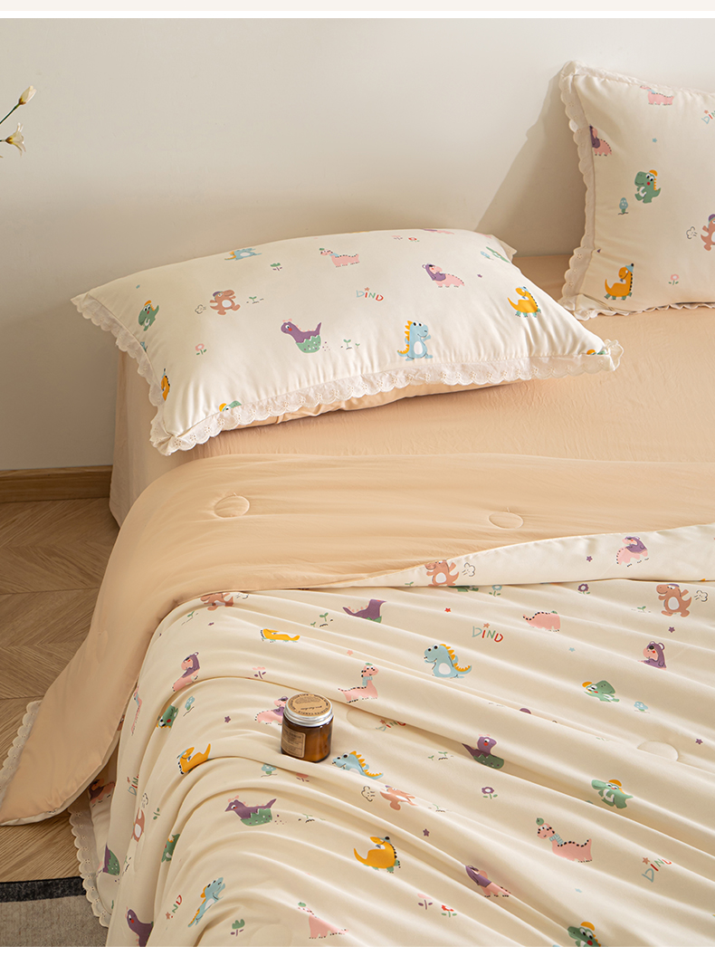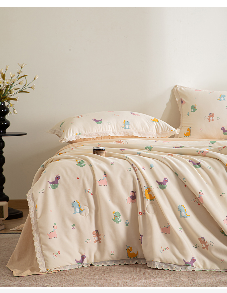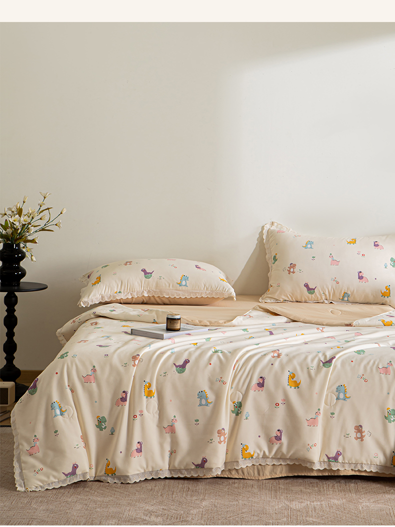 商品名称:玛德琳 2025新款双层纱大豆夏凉被空调被夏被四件套 恐龙舞会