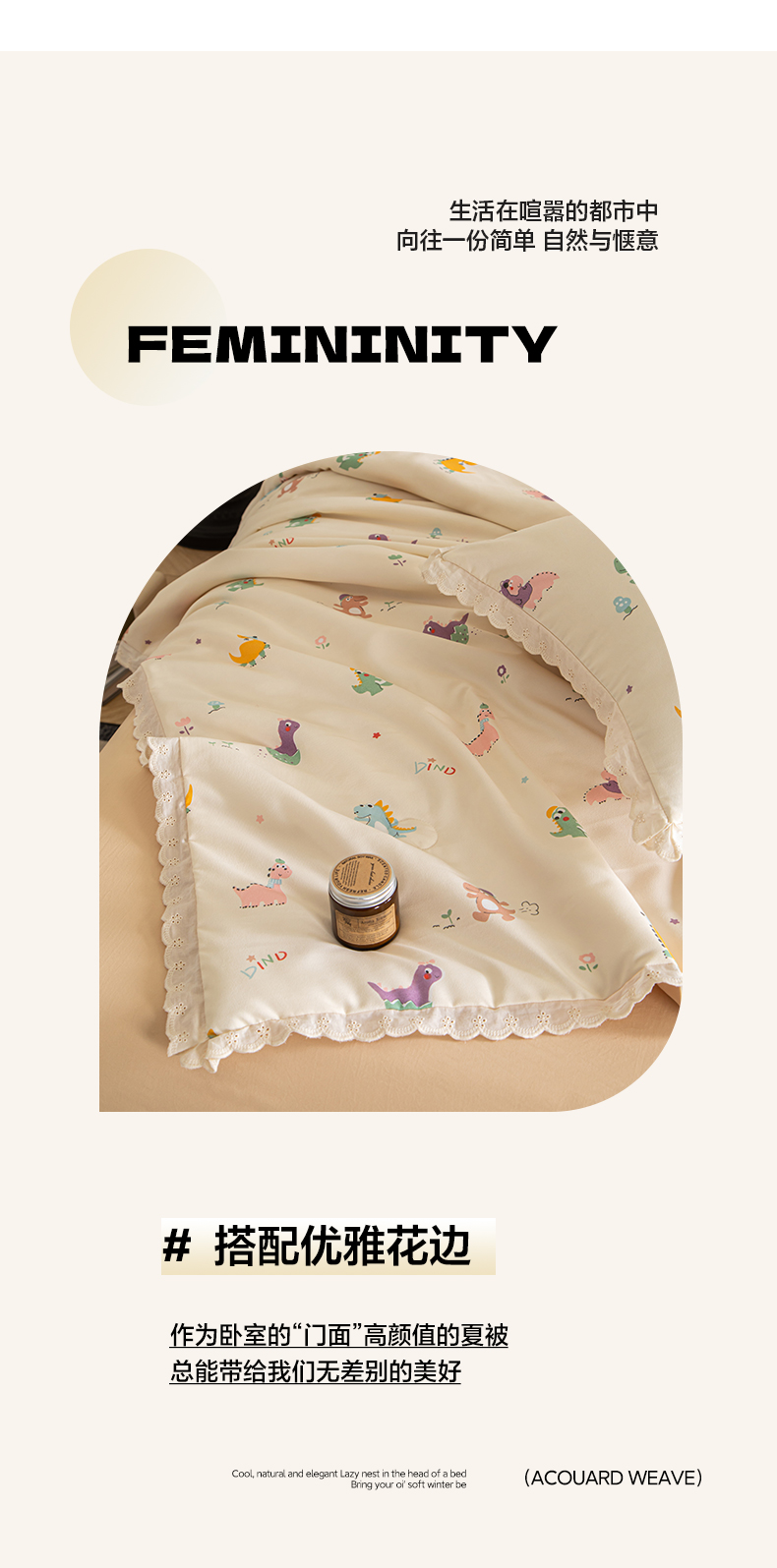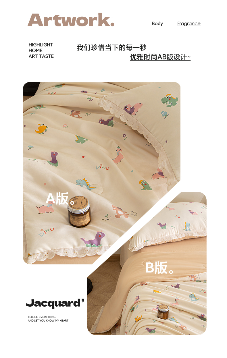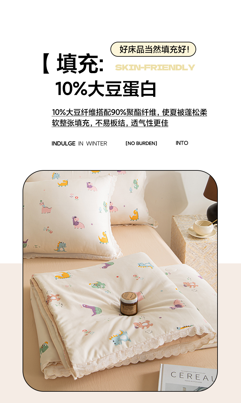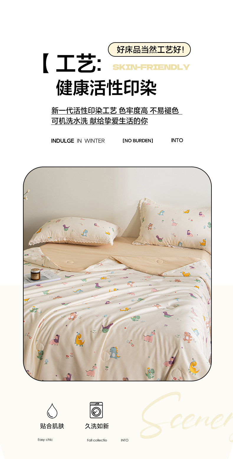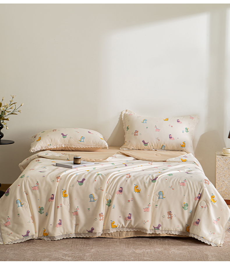 商品名称:玛德琳 2025新款双层纱大豆夏凉被空调被夏被四件套 恐龙舞会