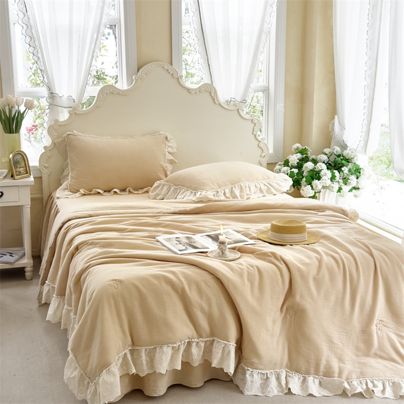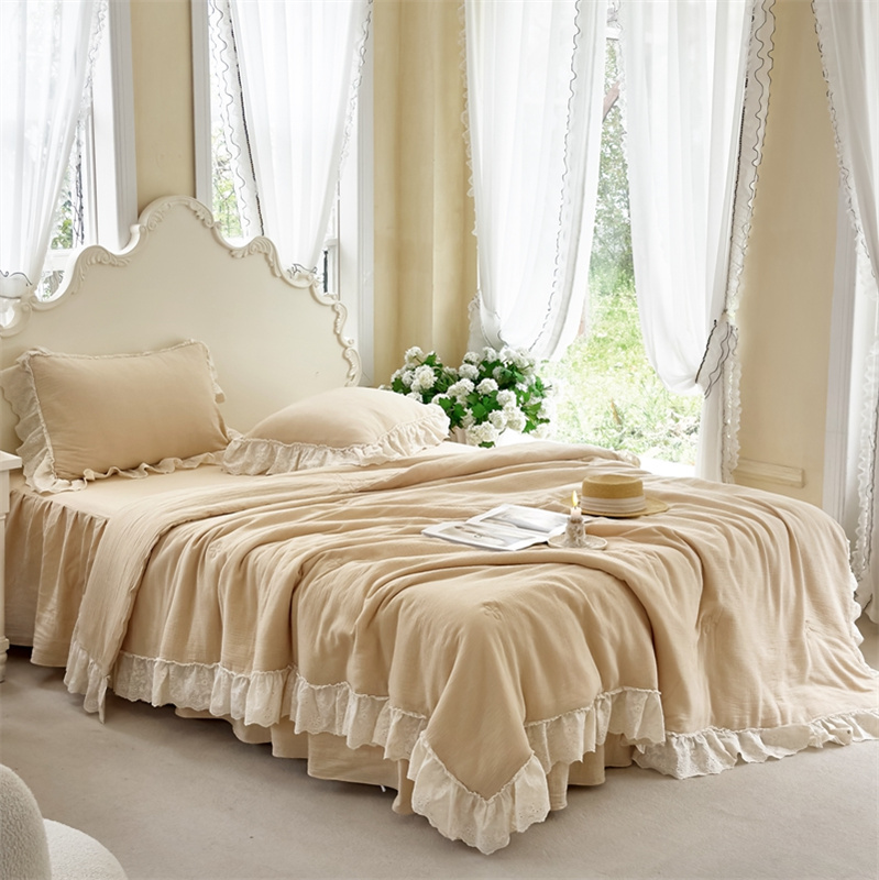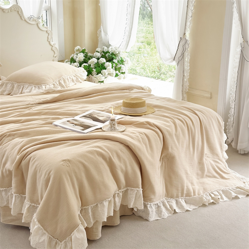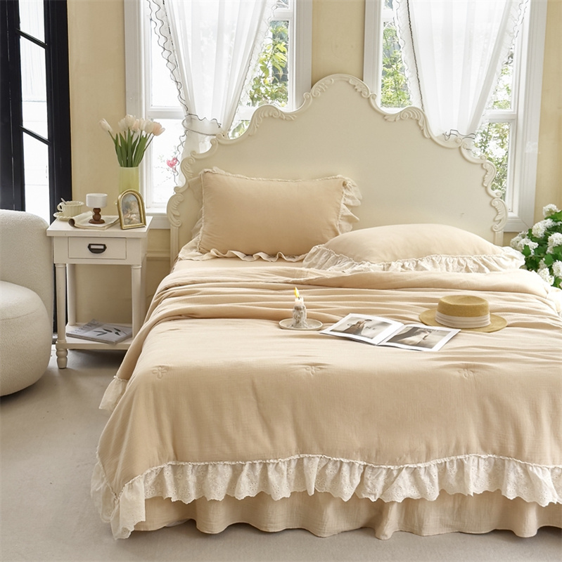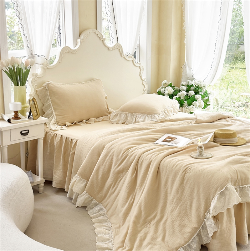 (总)北纬27度2025新款双层全棉绉绉纱夏被四件套,米色,浅卡其,豆沙,牛仔蓝