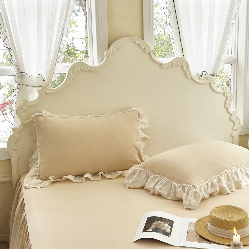 总北纬27度 2022法式双层花边全棉夹棉床裙四件套直播爆款,高级白,公主粉,海洋蓝,可爱黄