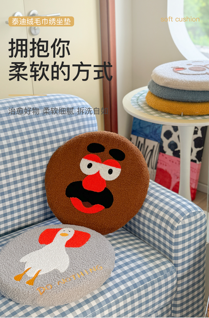商品名称:美茉家居 2025新款泰迪绒毛巾绣坐垫 熊猫白