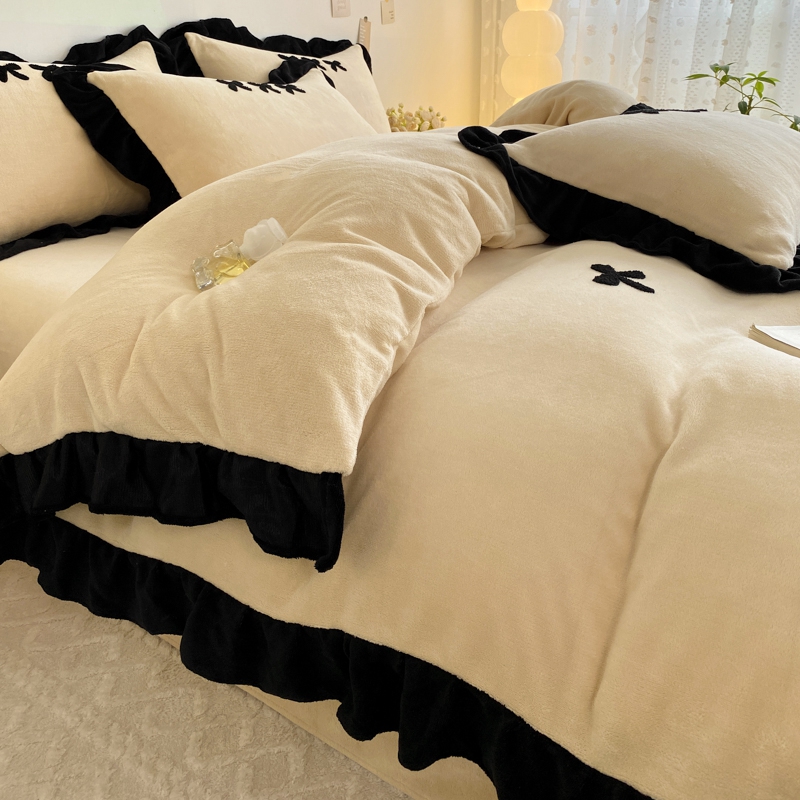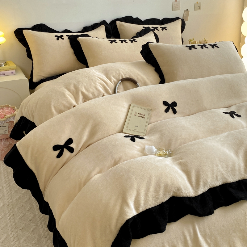 (总)梦莱斯 2025新款加厚保暖双面牛奶绒四件套-黑色花边款,爱丽丝花园,爱心点点,暗香,布偶兔兔,彩虹波点,春不晚,蝶舞,繁花,粉红蝴蝶结,粉色猫,格子爱心咖,格子猫,格子樱桃,黑巧樱桃,黑糖珍珠,蝴蝶结,花里梦,快乐女孩,玫瑰之约 - 白,玫瑰之约 - 黑,米亚,桃之夭夭,心动-灰,心动-紫,紫花萌境