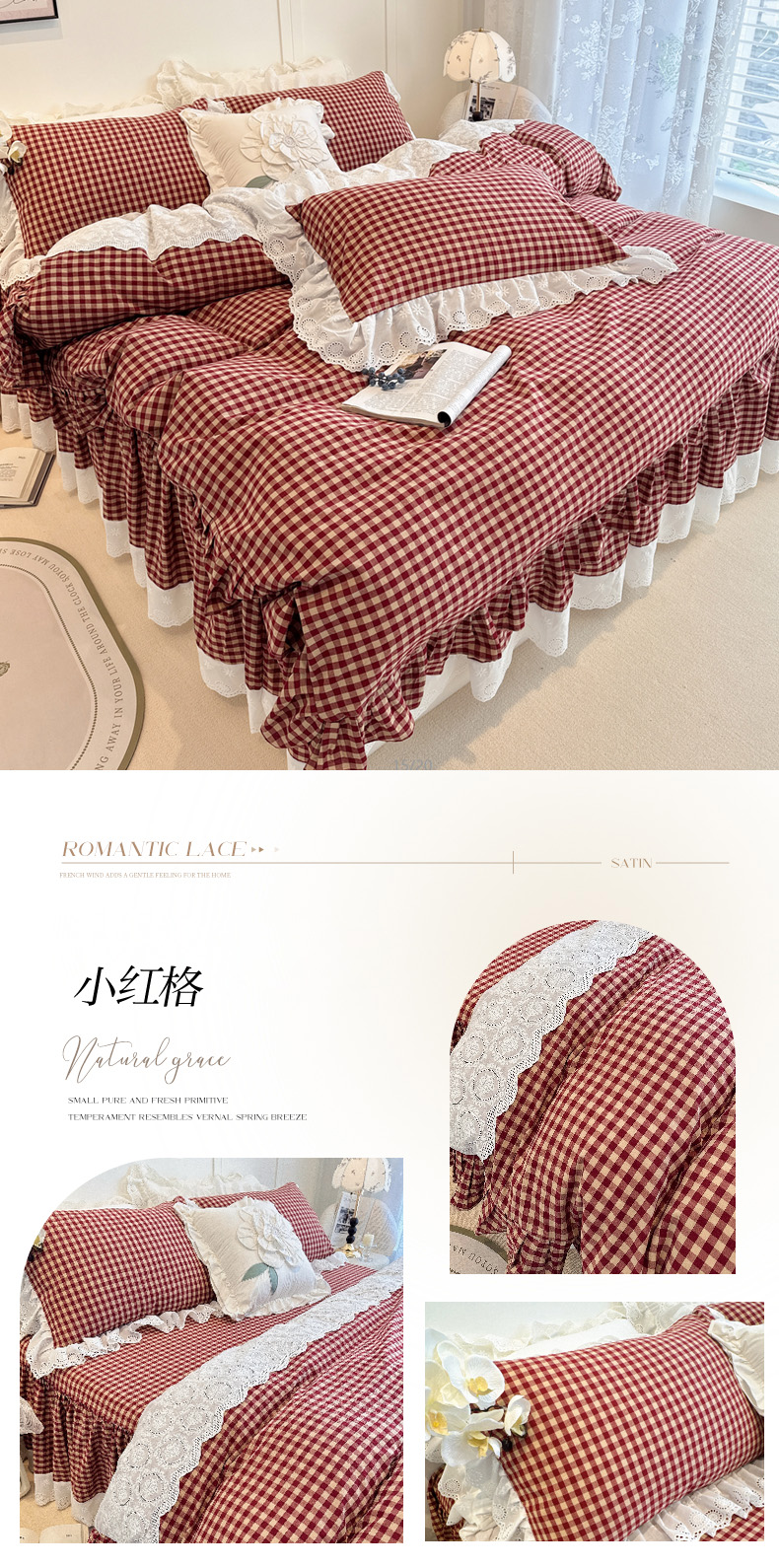 胜权家纺 2025春夏新品全棉法式复古色织水洗棉床裙四件套系列 小红格