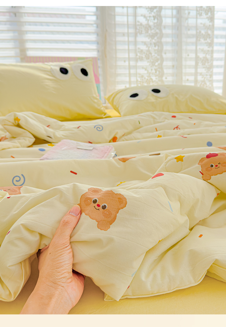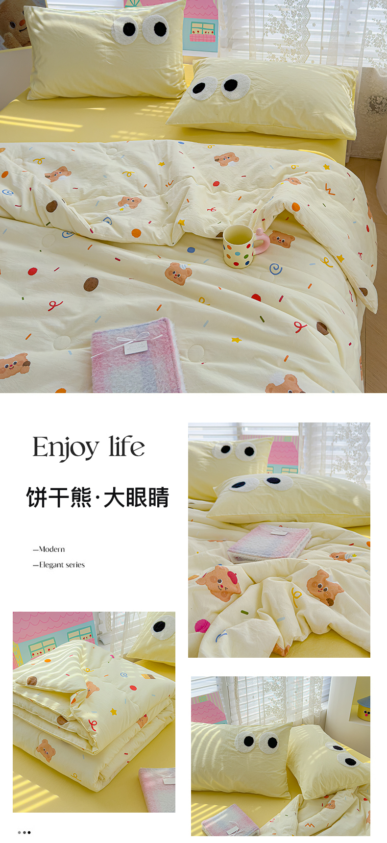 (总)颜选 2025新款绵柔水洗棉夏被四件套,贝利卡,饼干熊,波点,黑狗狗,蝴蝶结熊,花花狗,可可猫咪,铃铛狗