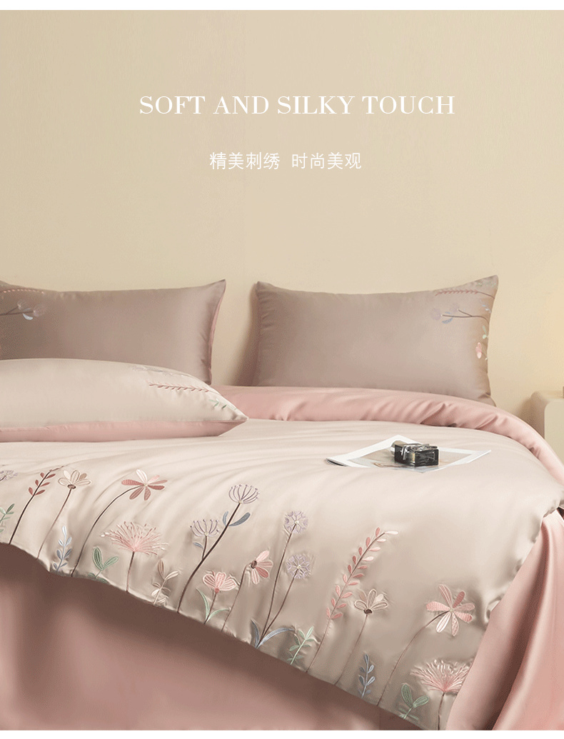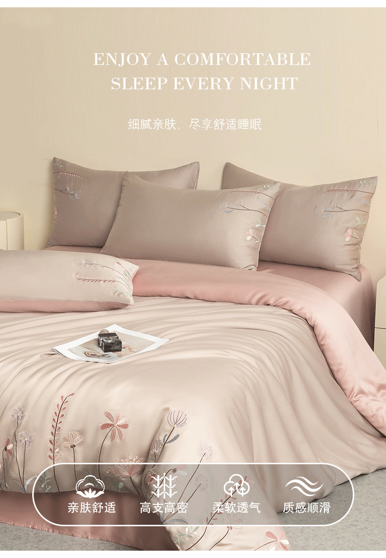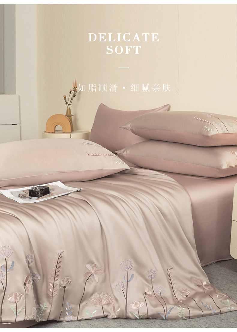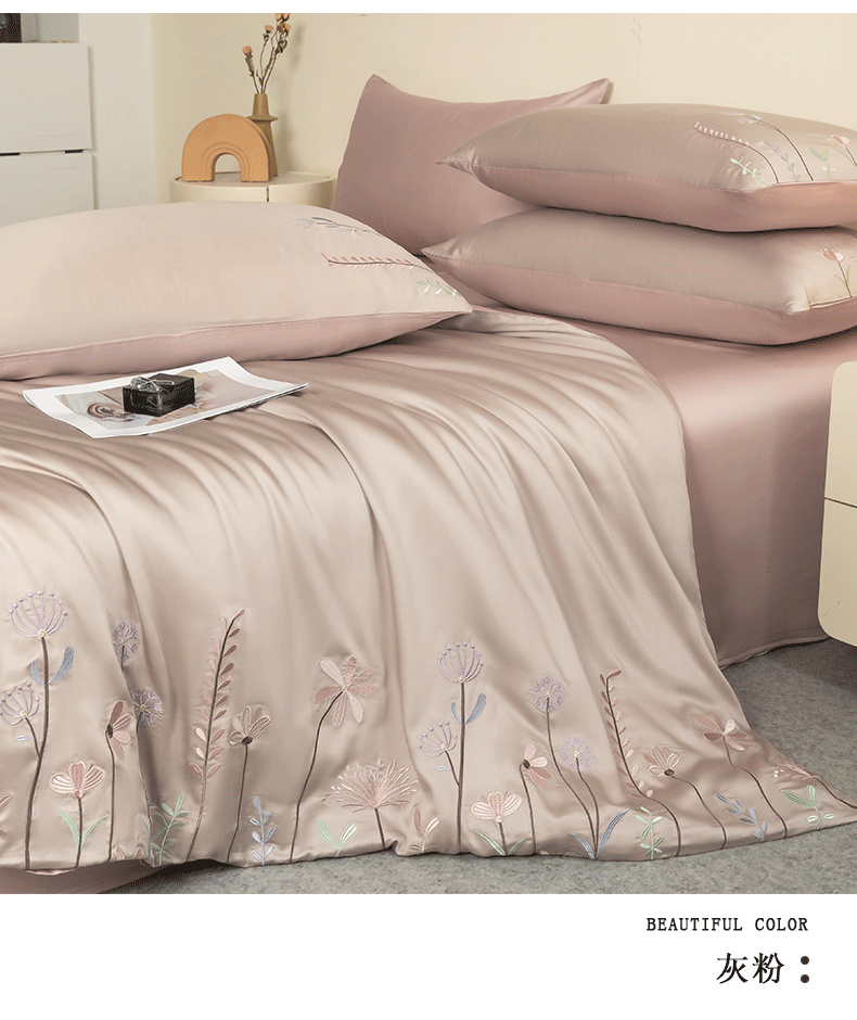 商品名称:618家纺 2025新款60S100支进口兰精天丝四件套-初夏 天丝初夏灰粉