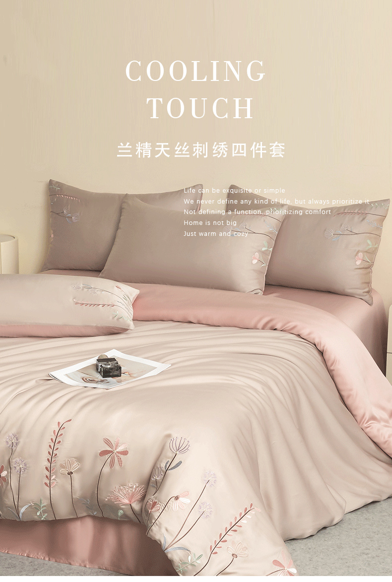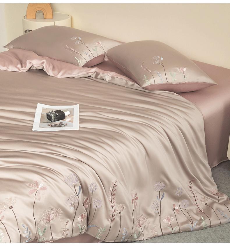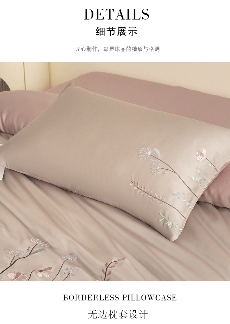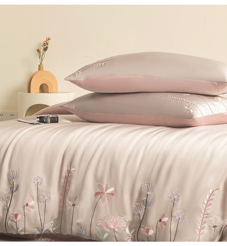 商品名称:618家纺 2025新款60S100支进口兰精天丝四件套-初夏 天丝初夏灰粉