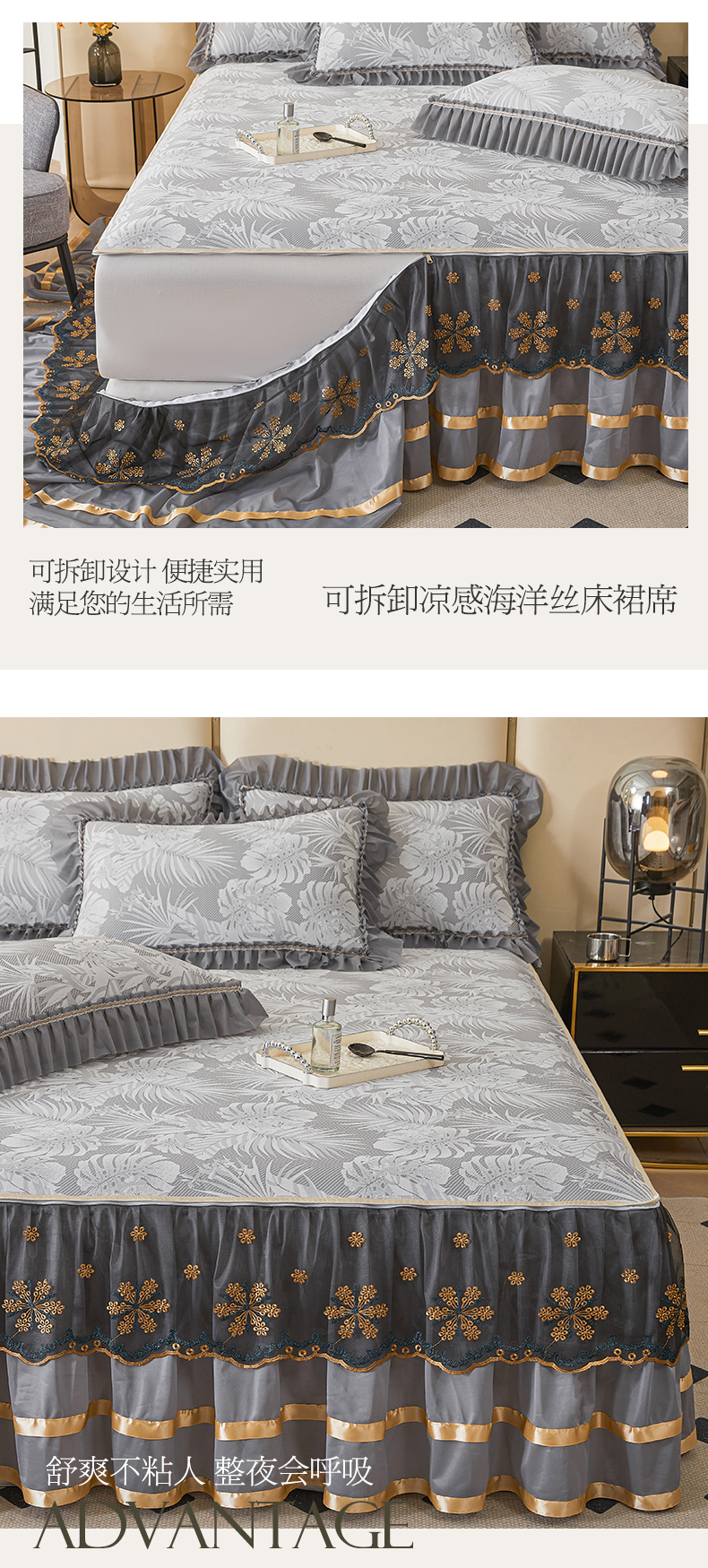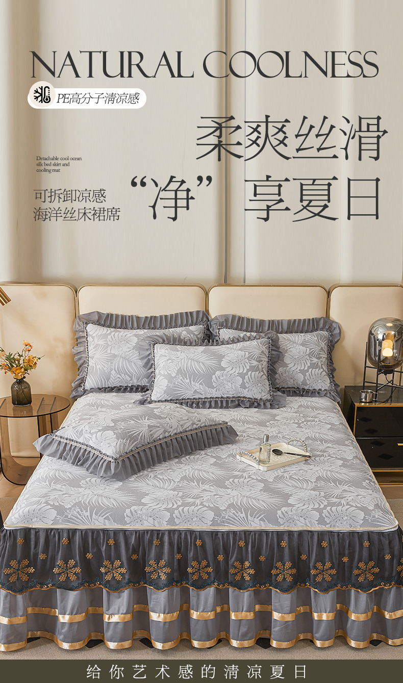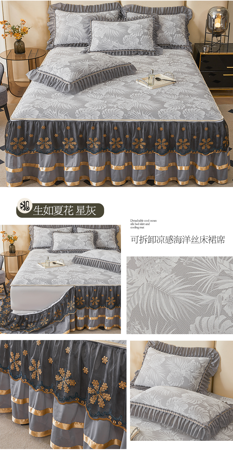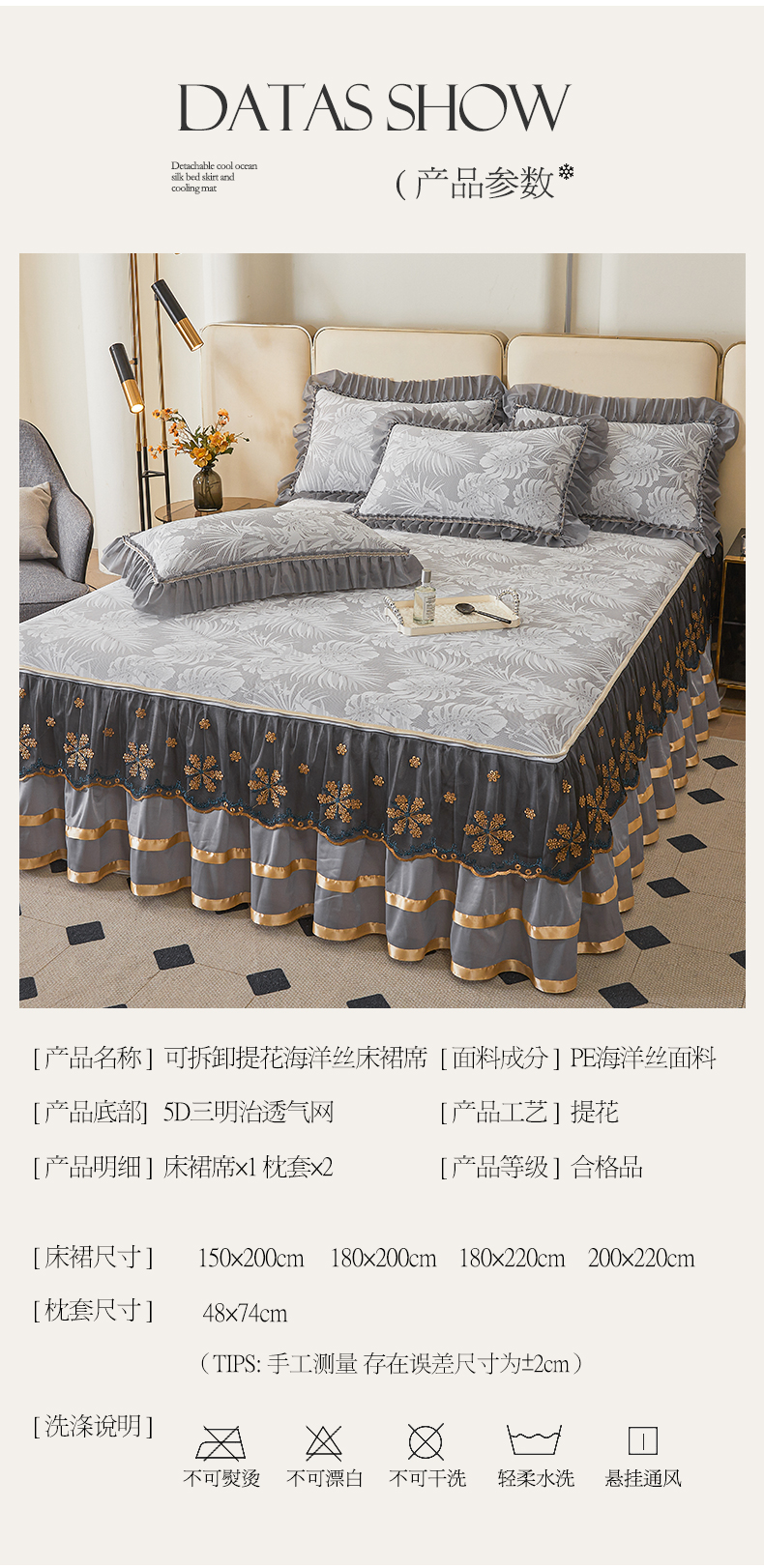商品名称:情恒家纺 2025新款提花PE海洋丝可脱卸床裙席三件套 生如夏花 星灰