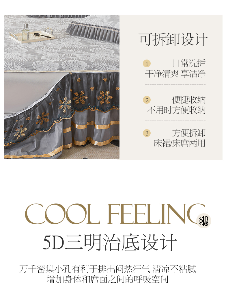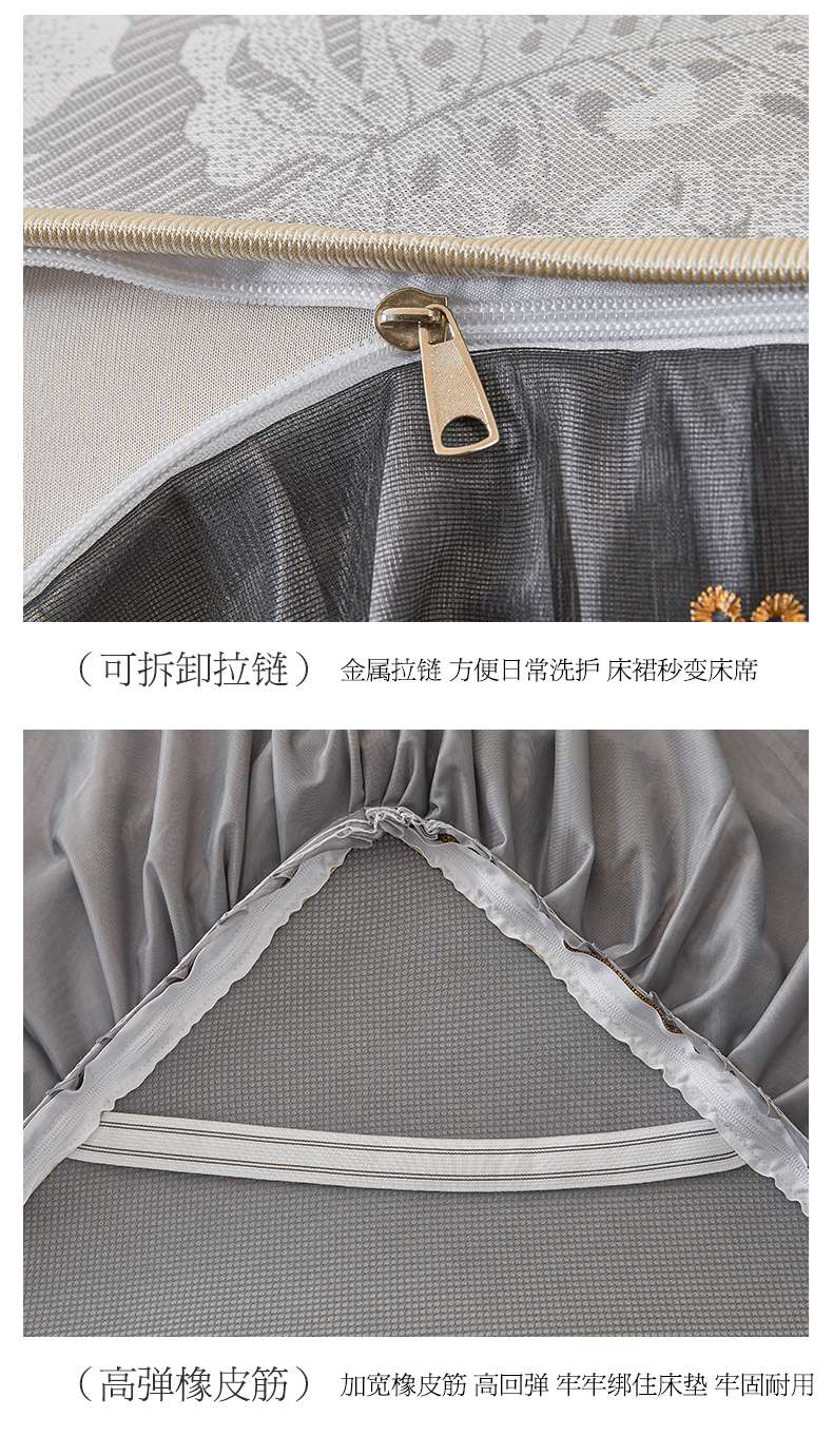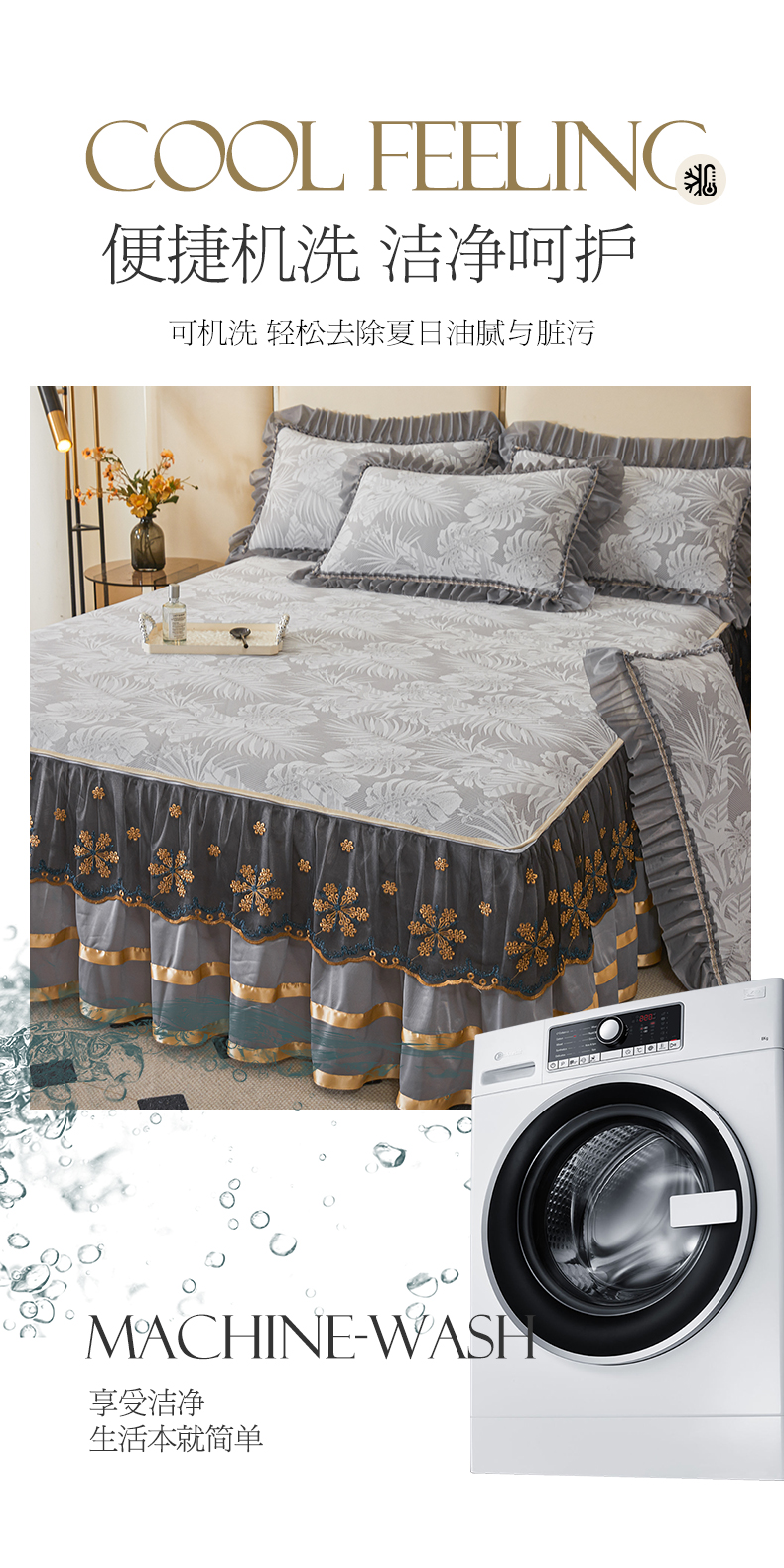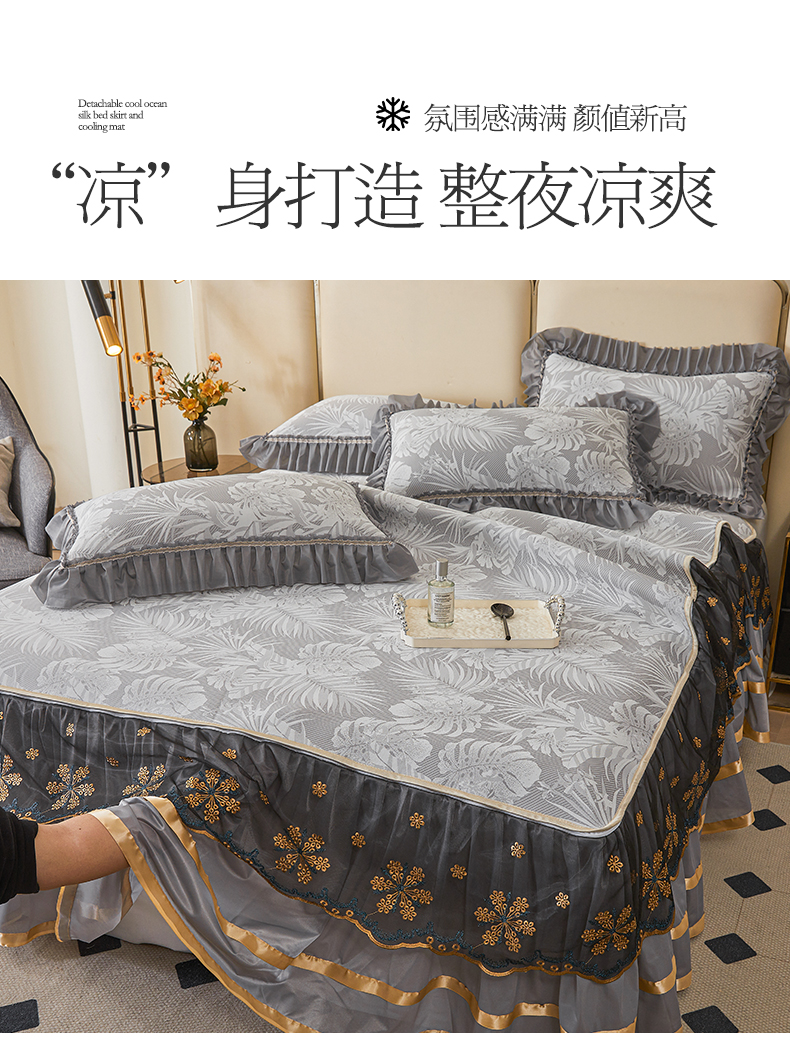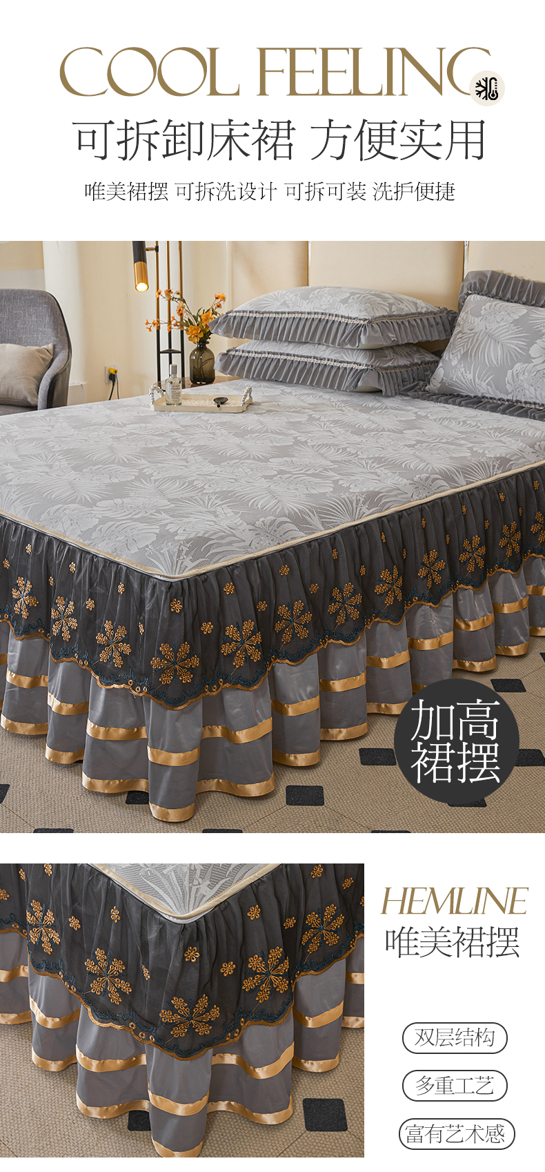 商品名称:情恒家纺 2025新款提花PE海洋丝可脱卸床裙席三件套 生如夏花 星灰