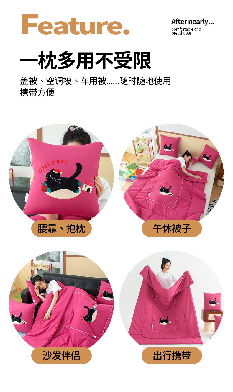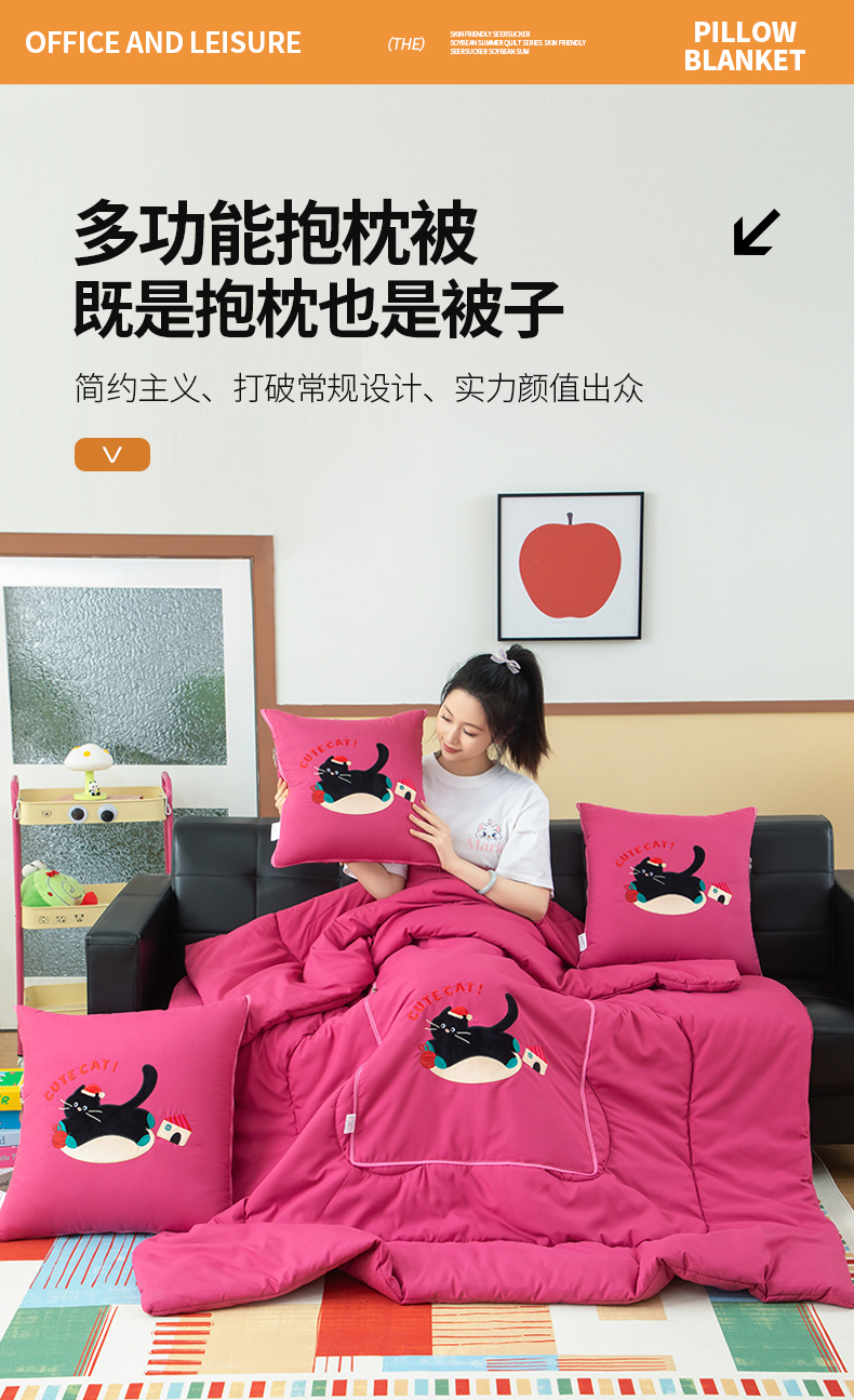 (总)照世家纺 2025新款牛奶绒抗菌棉多功能抱枕被-布偶猫(P标)(控价是优惠券后不能低于 40的68,45的98, 50的119),橙色,粉色,湖蓝,姜黄,咖色,香芋紫
