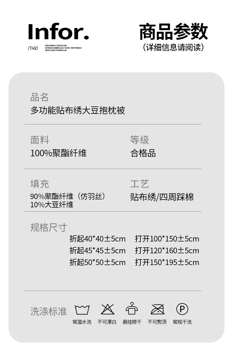 商品名称:(总)照世家纺 2025新款多功能贴布绣大豆抱枕被【控价不能低于 40的58 45的75 50的89】