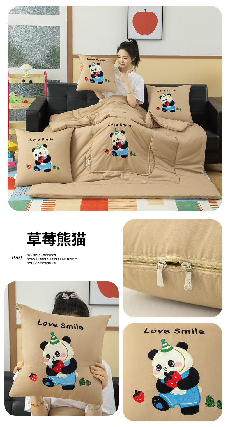 照世家纺 2024新款牛奶绒可爱印花抱枕被(控价59/82/109/139) 熊猫,熊猫