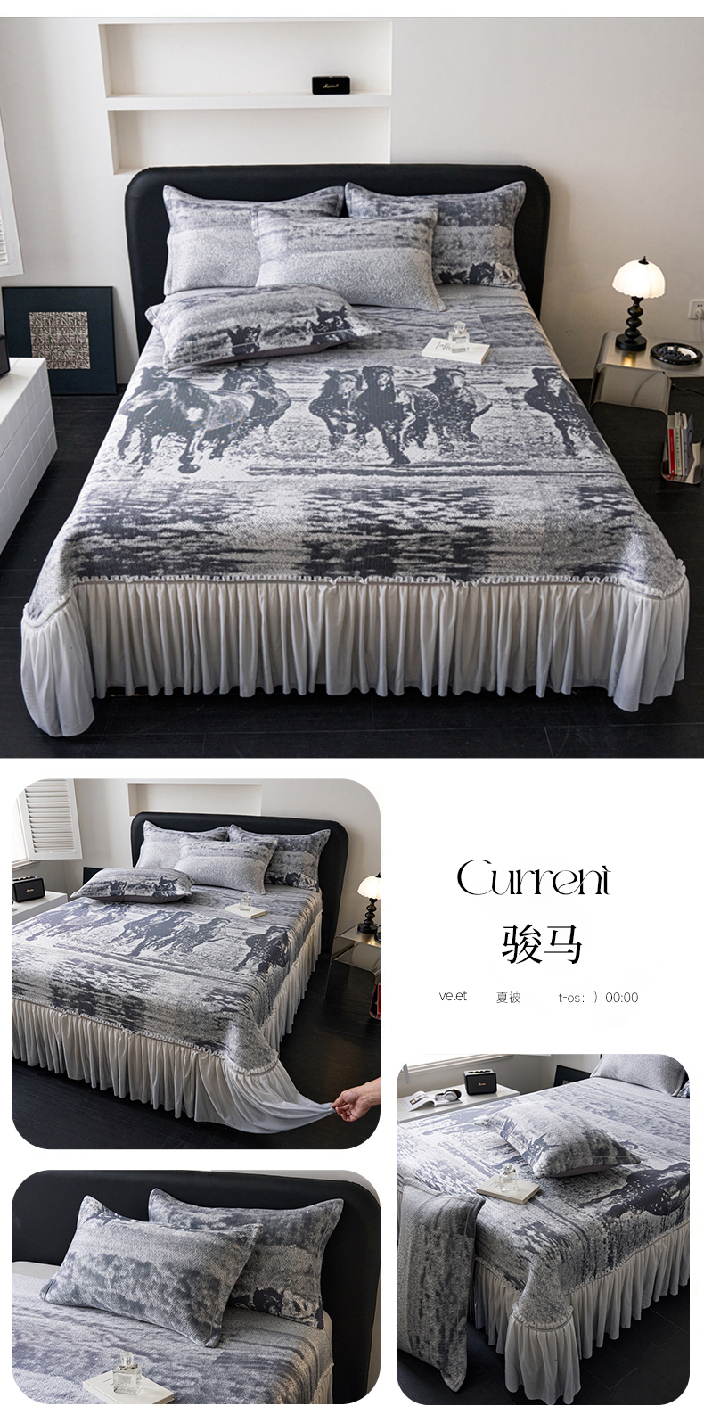 商品名称:2025新款5D提花全凉感中分子凉席 冰感床裙款凉席三件套-提花系列 骏马
