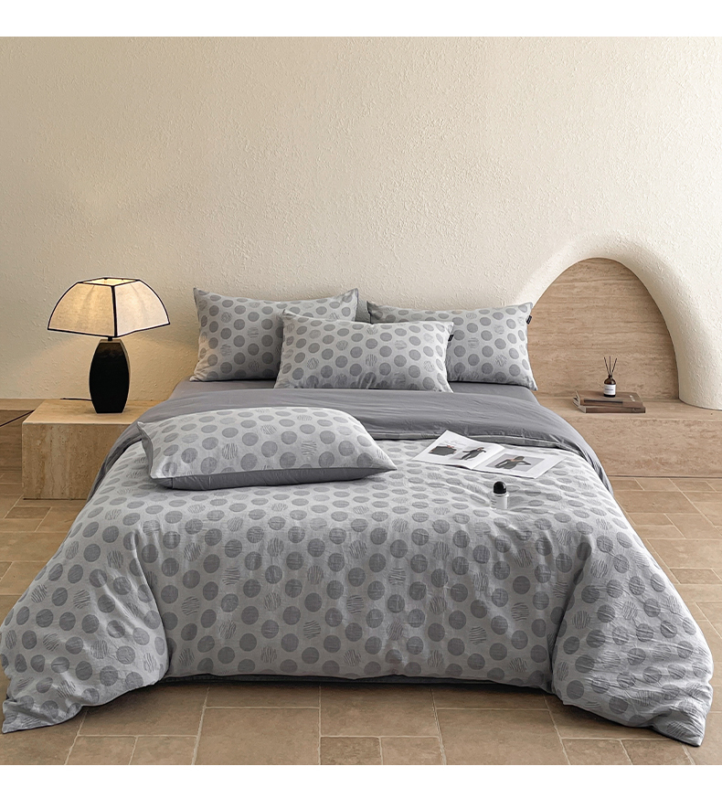 当前位置: 91家纺网 > 商品网购 > 床品套件 > 四件套 > 全棉普通四件套 > 拼社2025新款全棉色织水洗三层纱提花纯棉四件套全棉单被套【提供买家秀】 波妞-灰