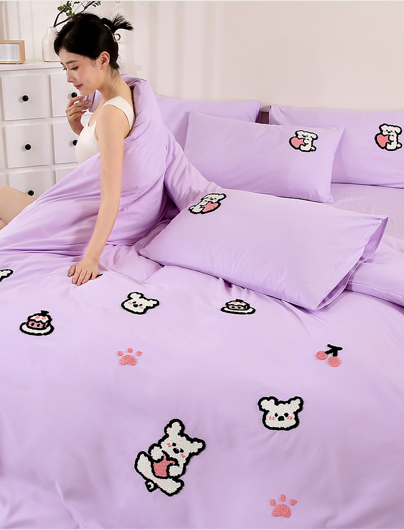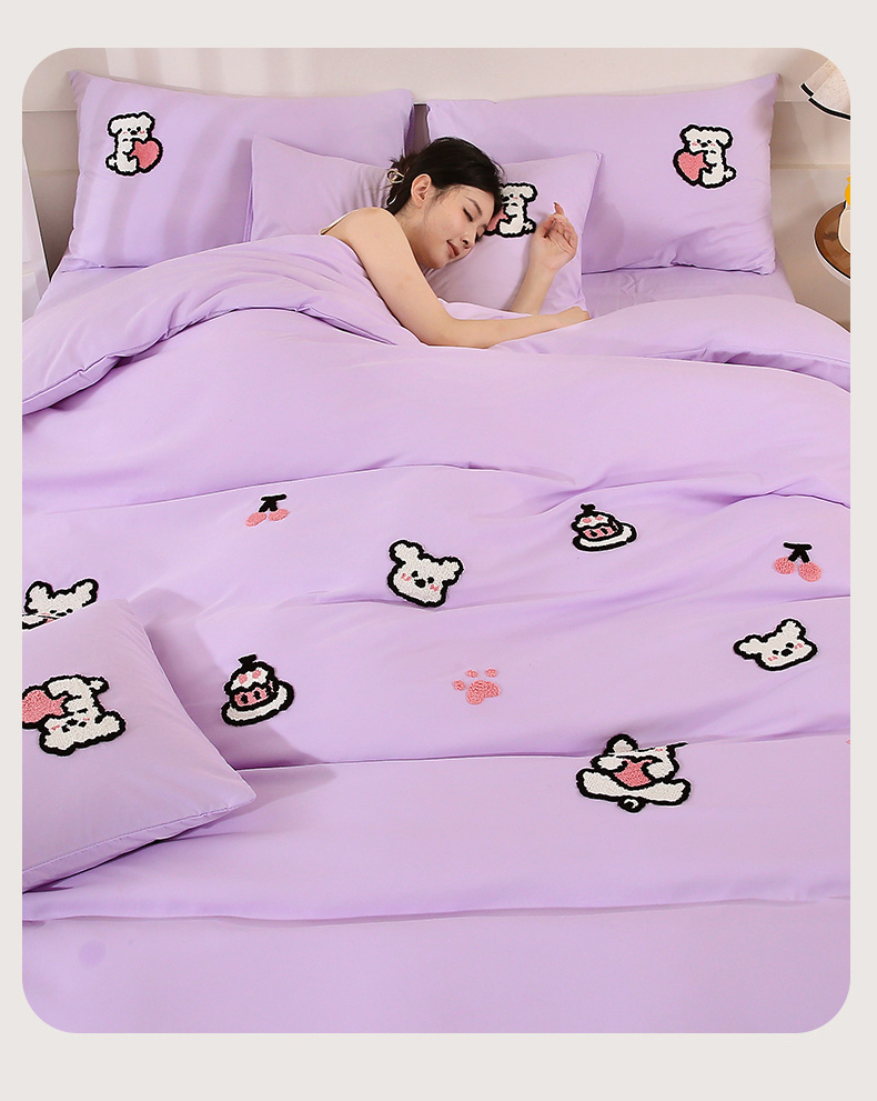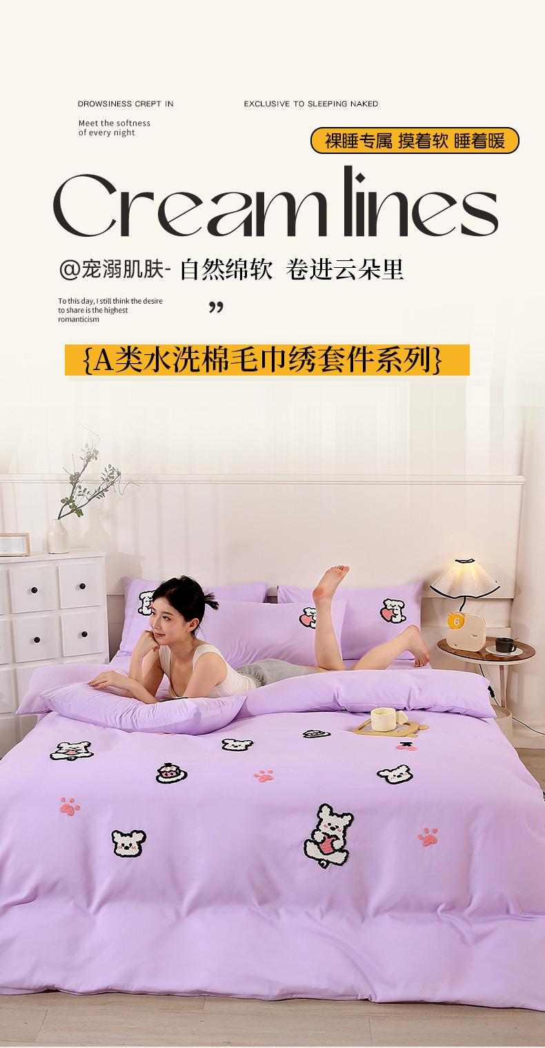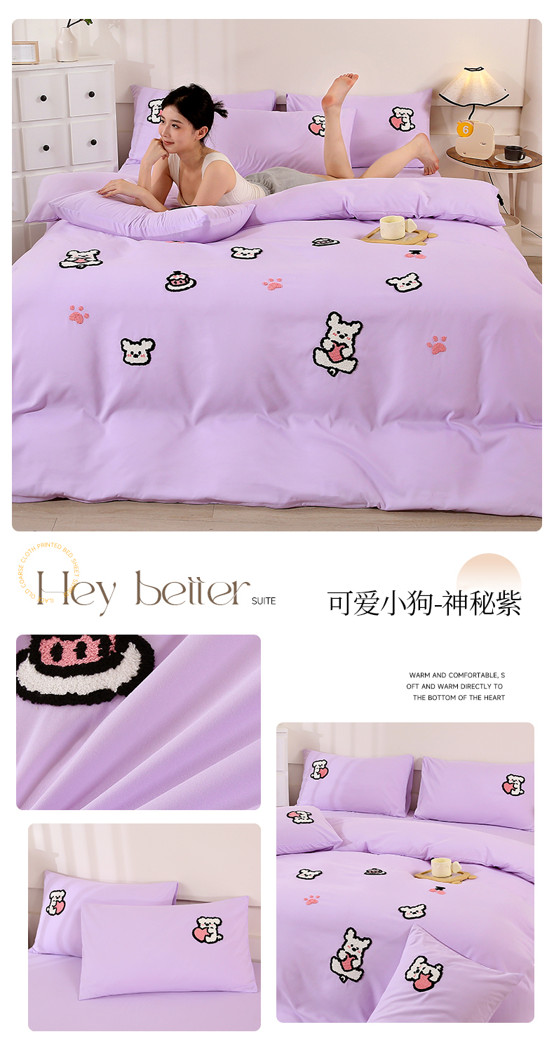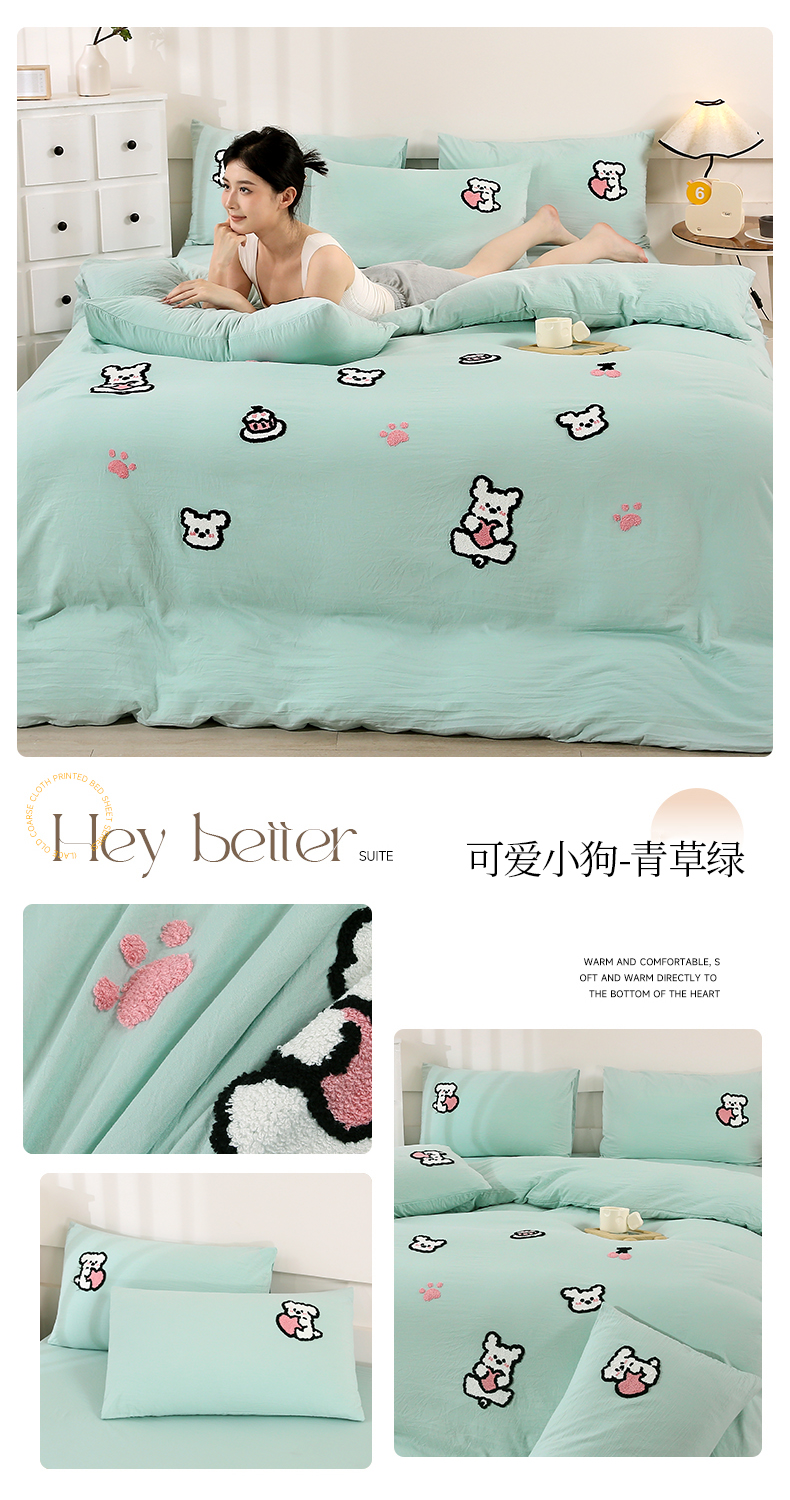 商品名称:优米家纺 2025新款A类水洗棉毛巾绣四件套-可爱小狗 可爱小狗-月光白