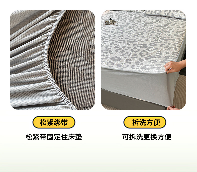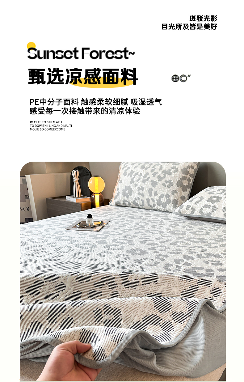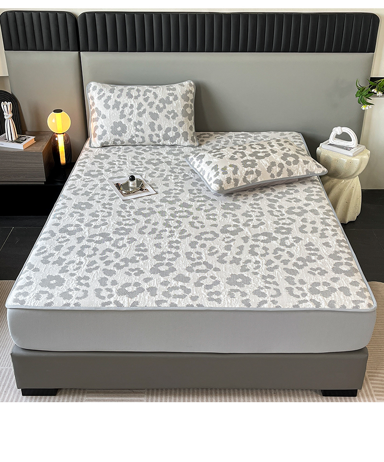 商品名称:子曰 2025春夏新款A类中分子430gPE聚乙烯乙纶凉豆豆凉席-床笠款 小豹纹-灰