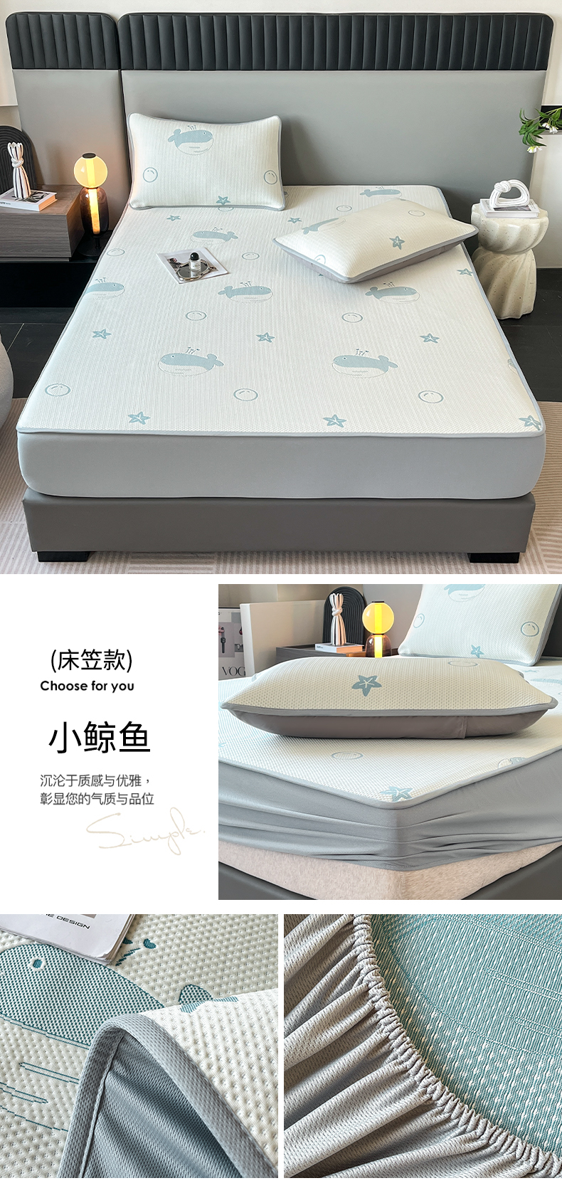 (总)子曰 2025春夏新款A类中分子430gPE聚乙烯乙纶凉豆豆凉席-床笠款,小豹纹-灰,快乐熊-蓝,快乐熊-绿,小豹纹-粉,小鲸鱼,椰子树,英伦-灰