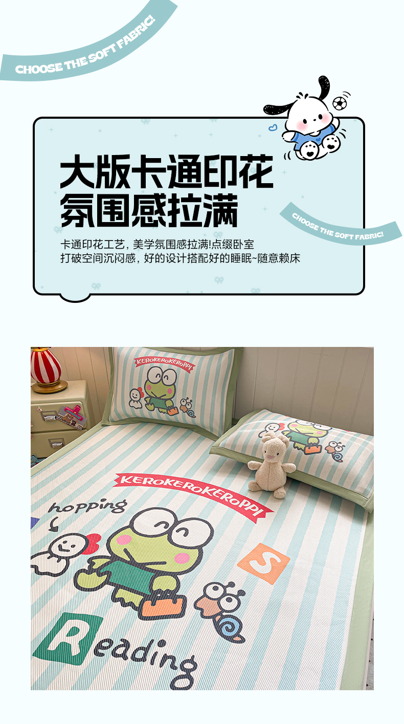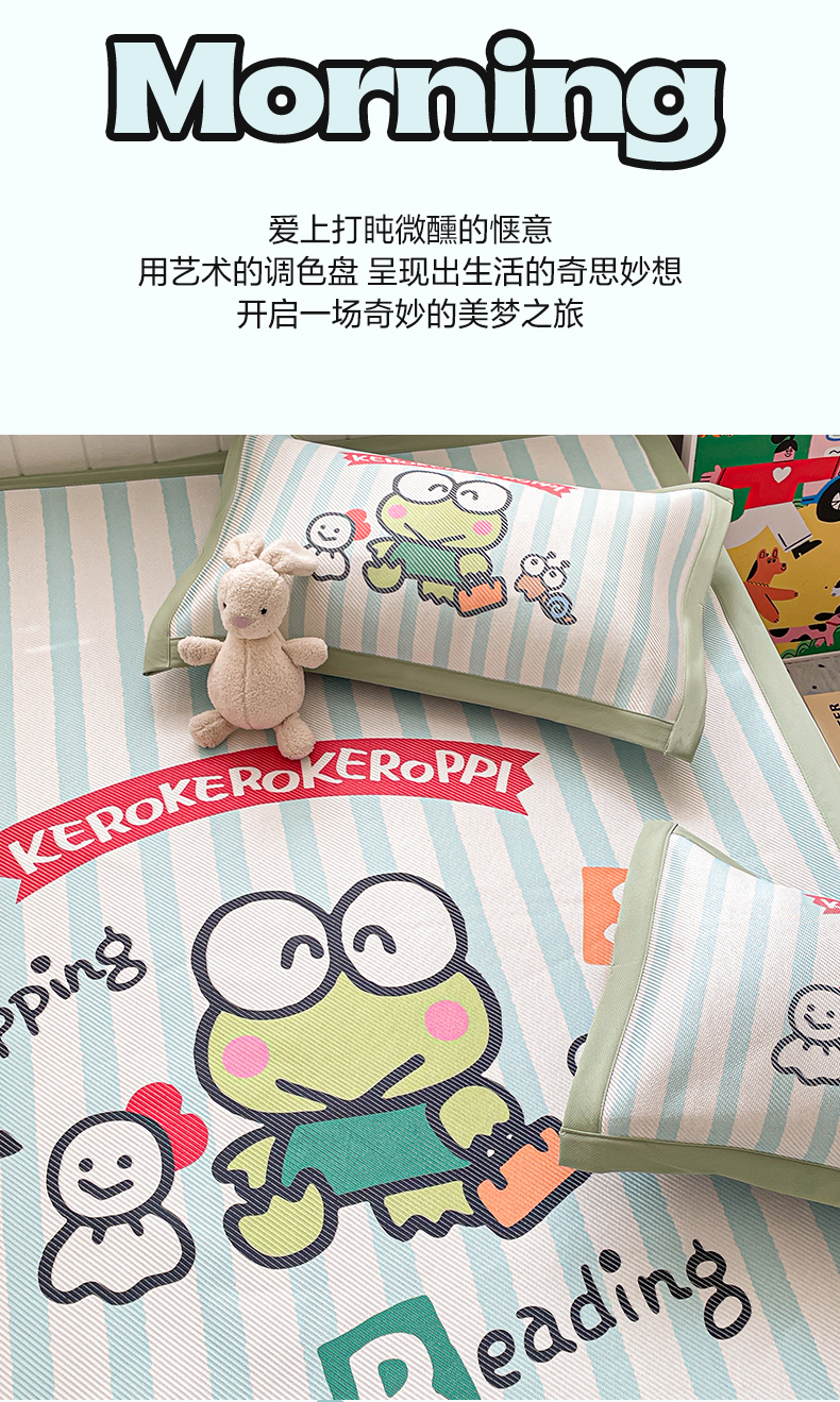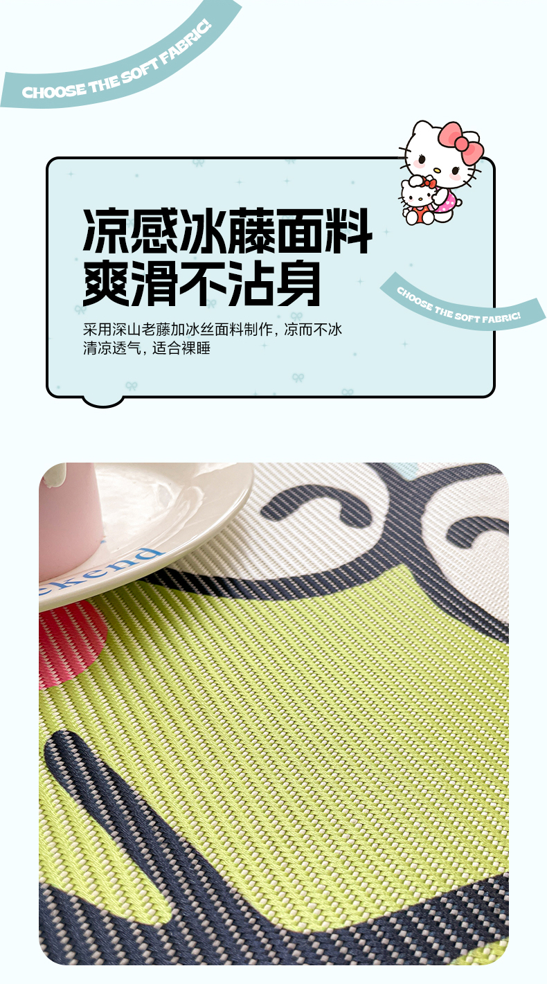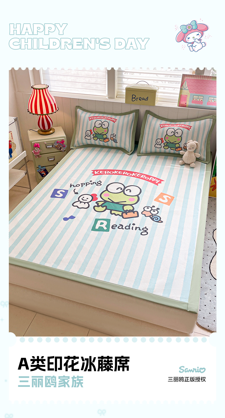 商品名称:蓝邻 2025春夏新款正版三丽鸥600D冰藤大版数码印花凉席-场景二 三眼蛙