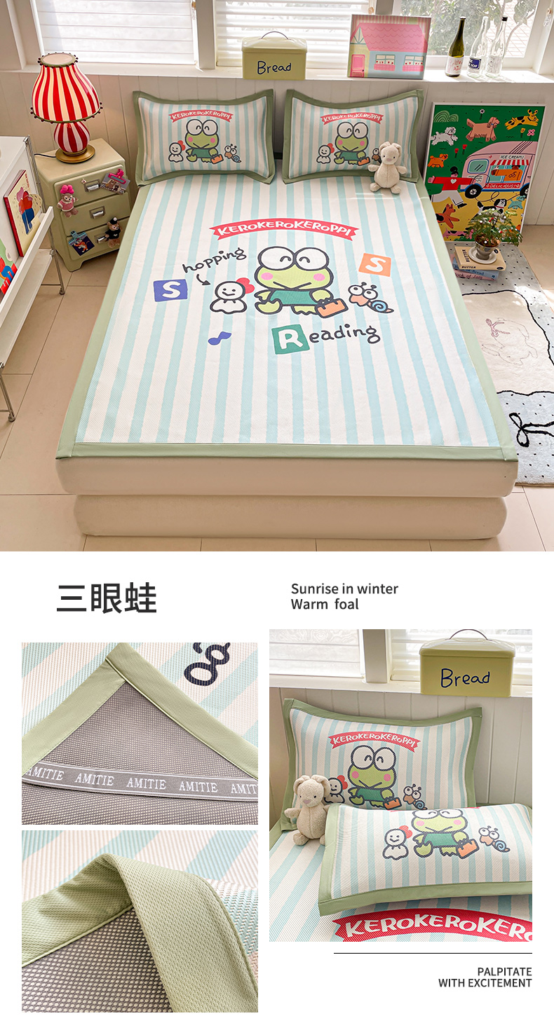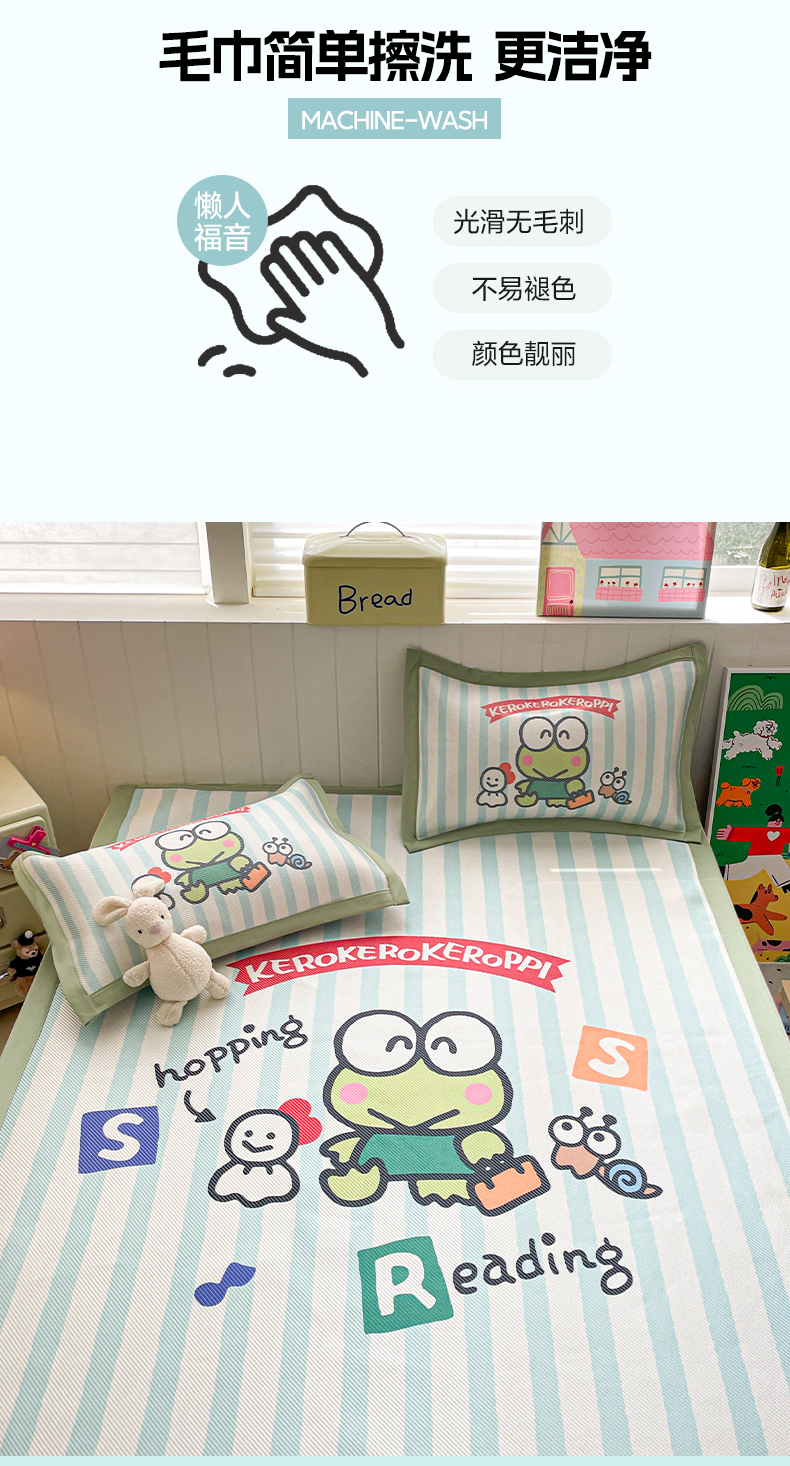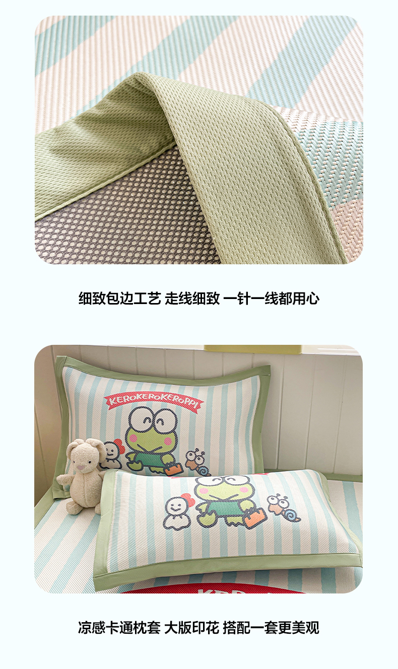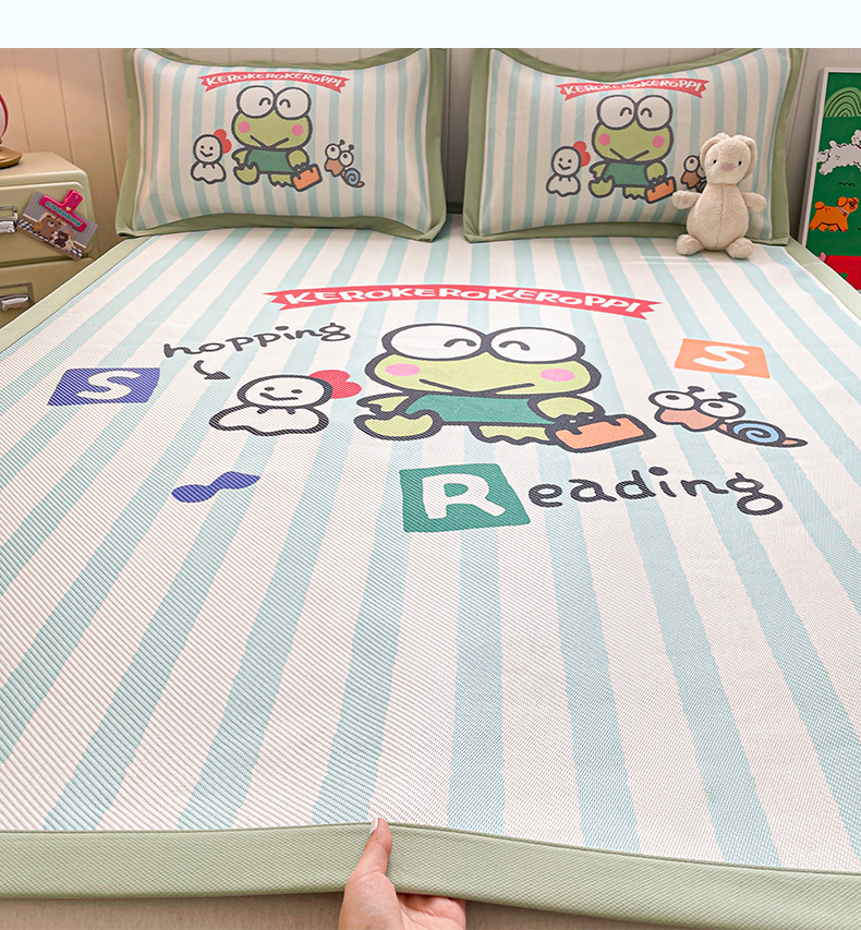 商品名称:蓝邻 2025春夏新款正版三丽鸥600D冰藤大版数码印花凉席-场景二 三眼蛙