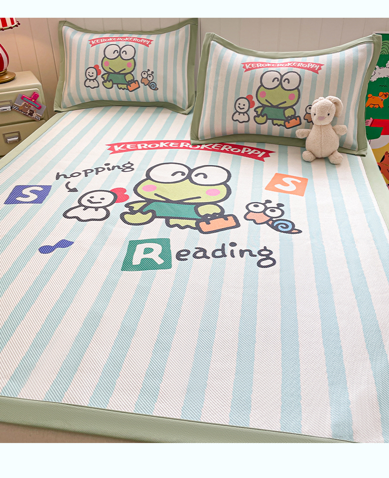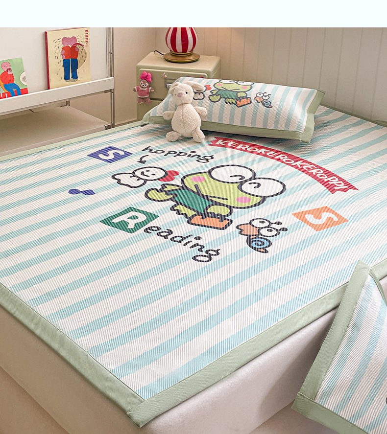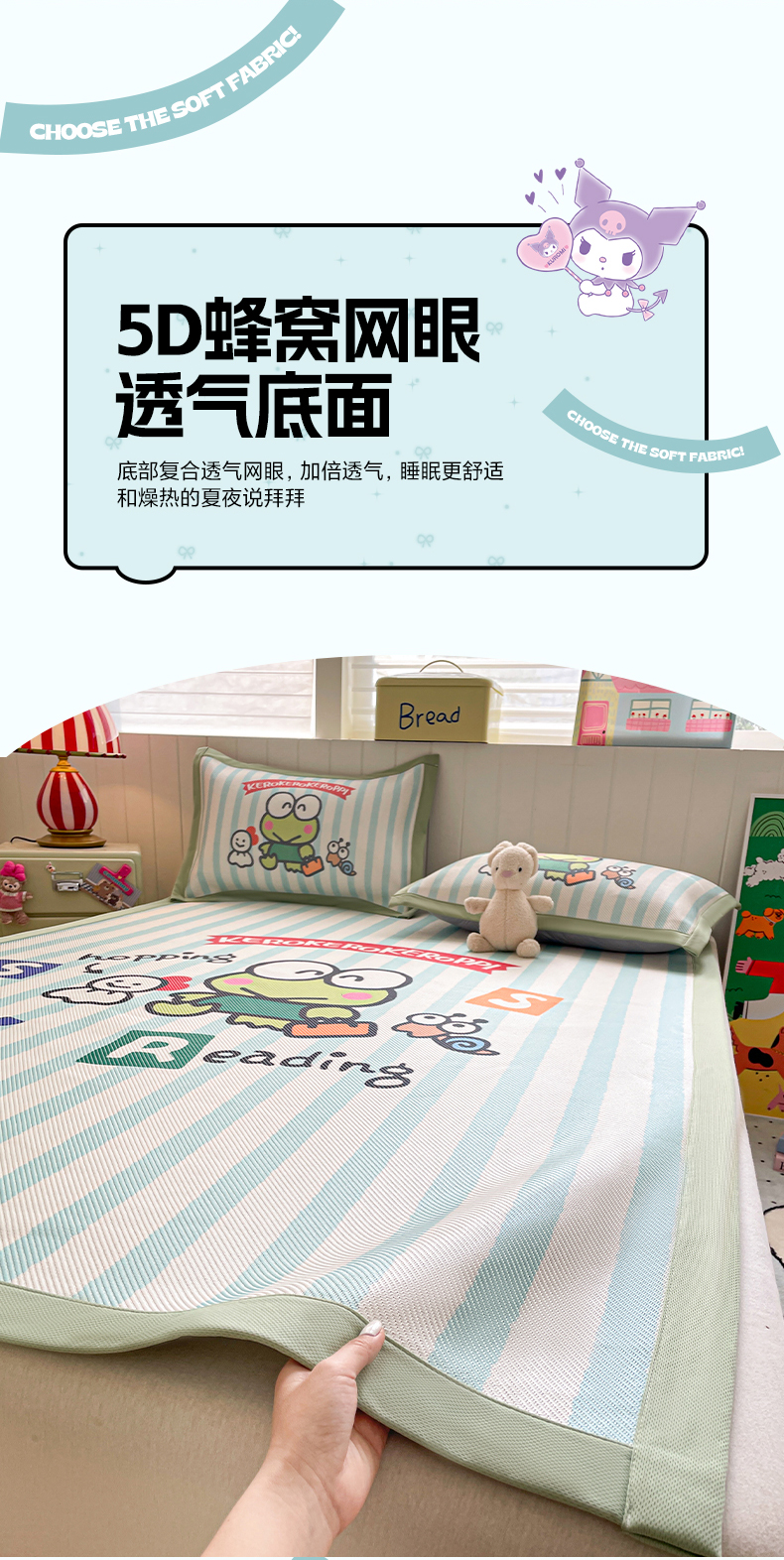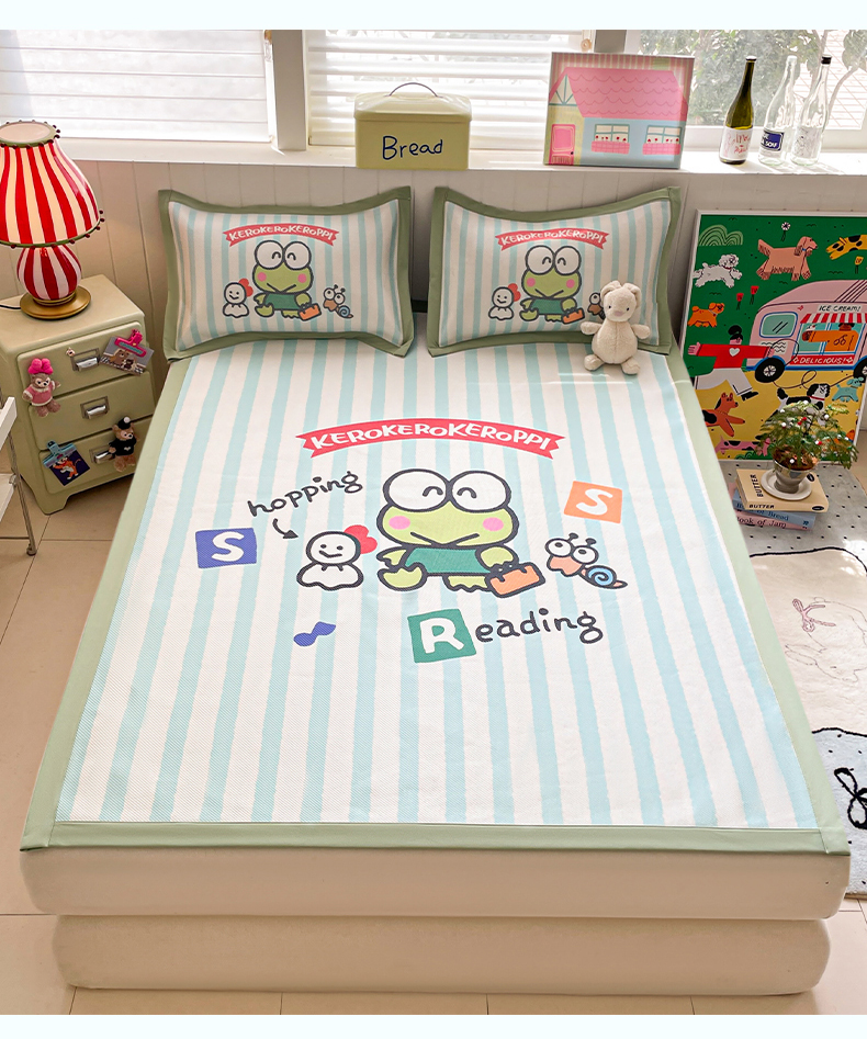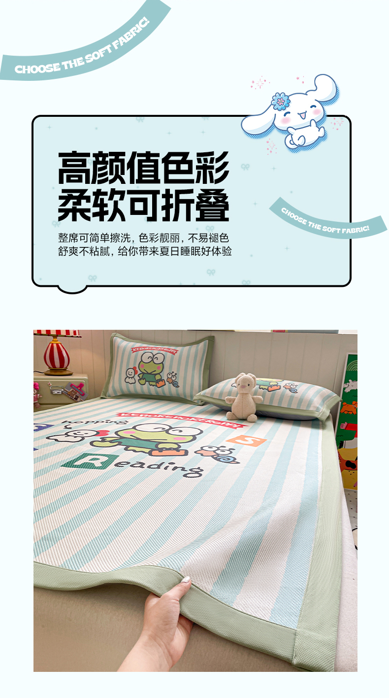 商品名称:蓝邻 2025春夏新款正版三丽鸥600D冰藤大版数码印花凉席-场景二 三眼蛙
