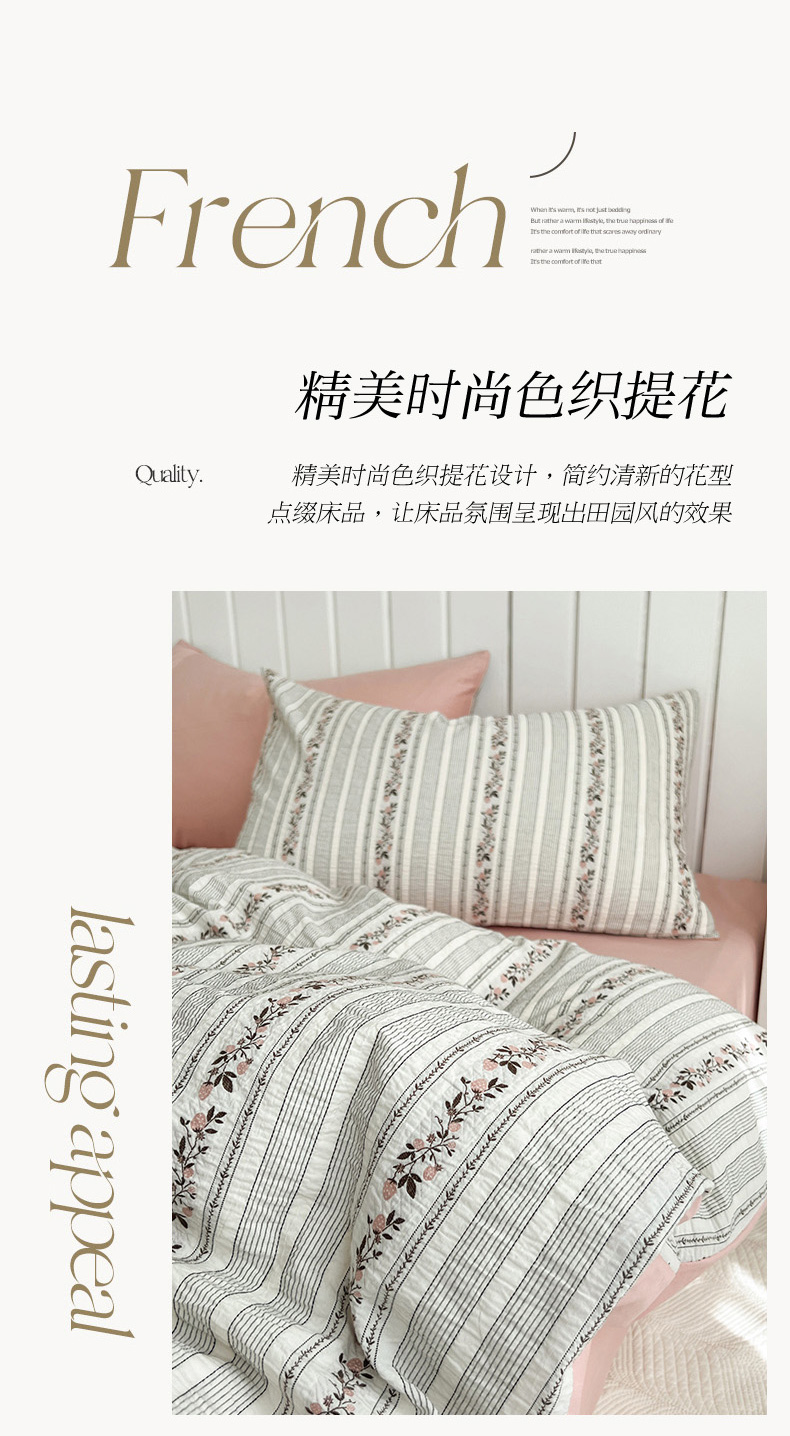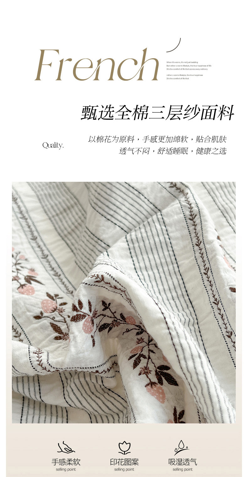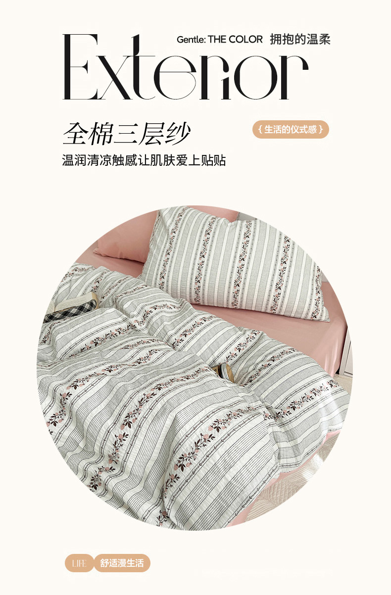 商品名称:倾慕2025年新款三层纱田园风套件单被套系列 田梦卡其粉