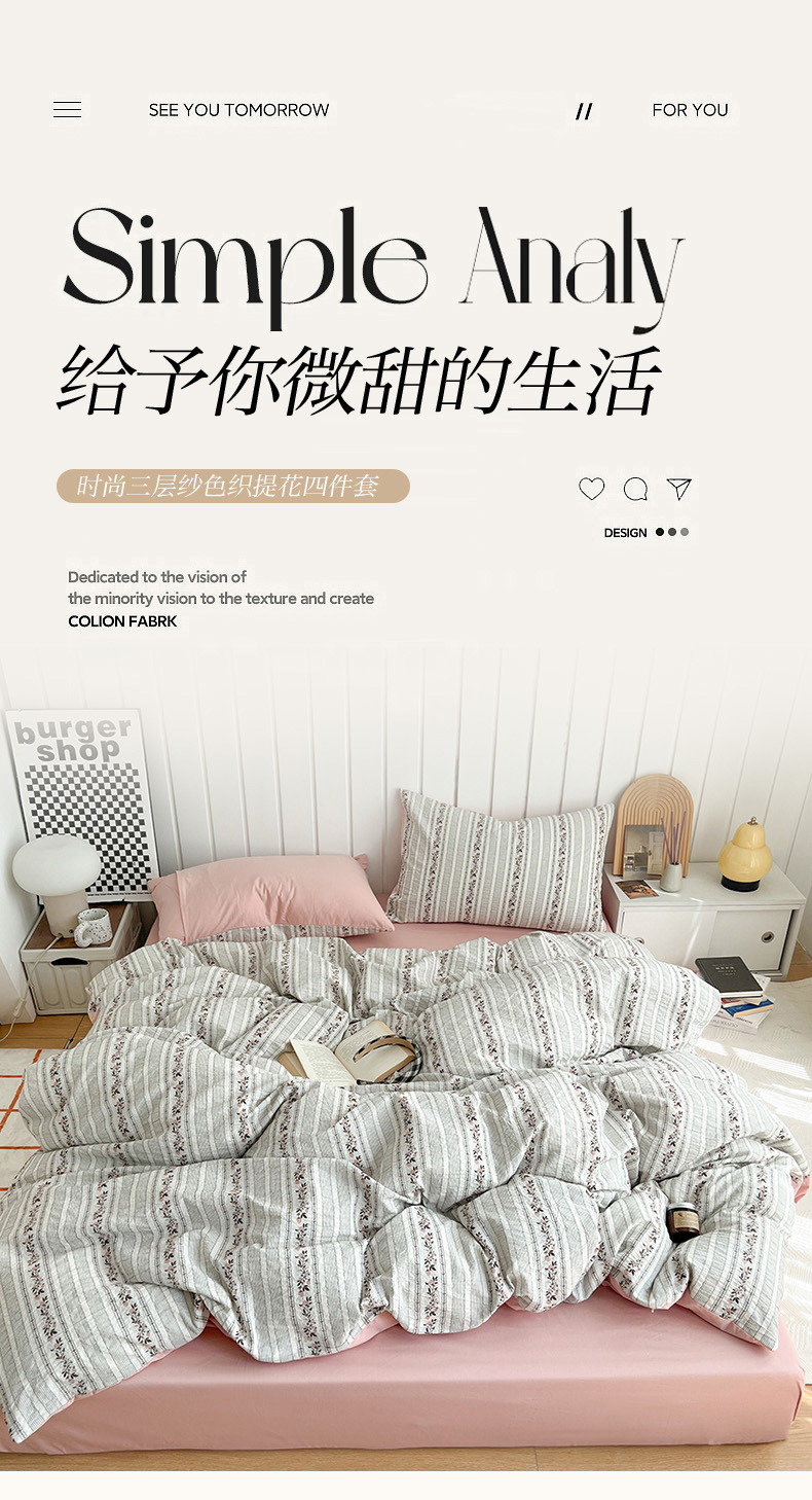 (总)倾慕 2025新款数码风加厚保暖套件系列四件套,达琳粉,达琳蓝,达琳紫,花颂卡其,花信粉,花之韵粉,花织卡其,花织蓝,花织紫粉,流光紫,山奈蓝,雾野蓝