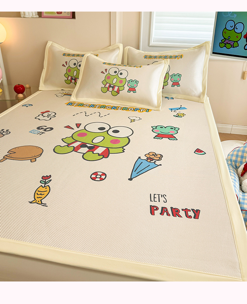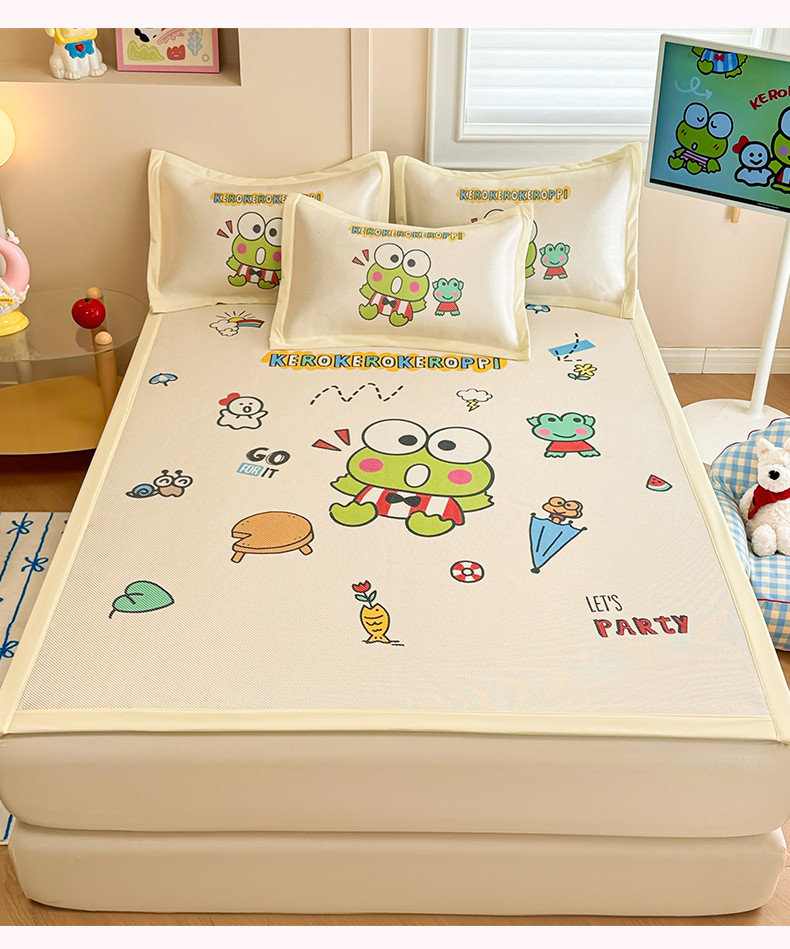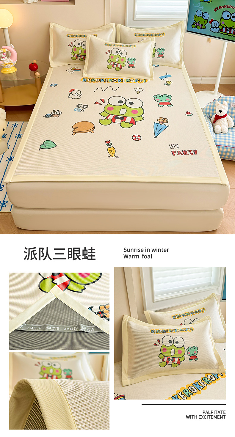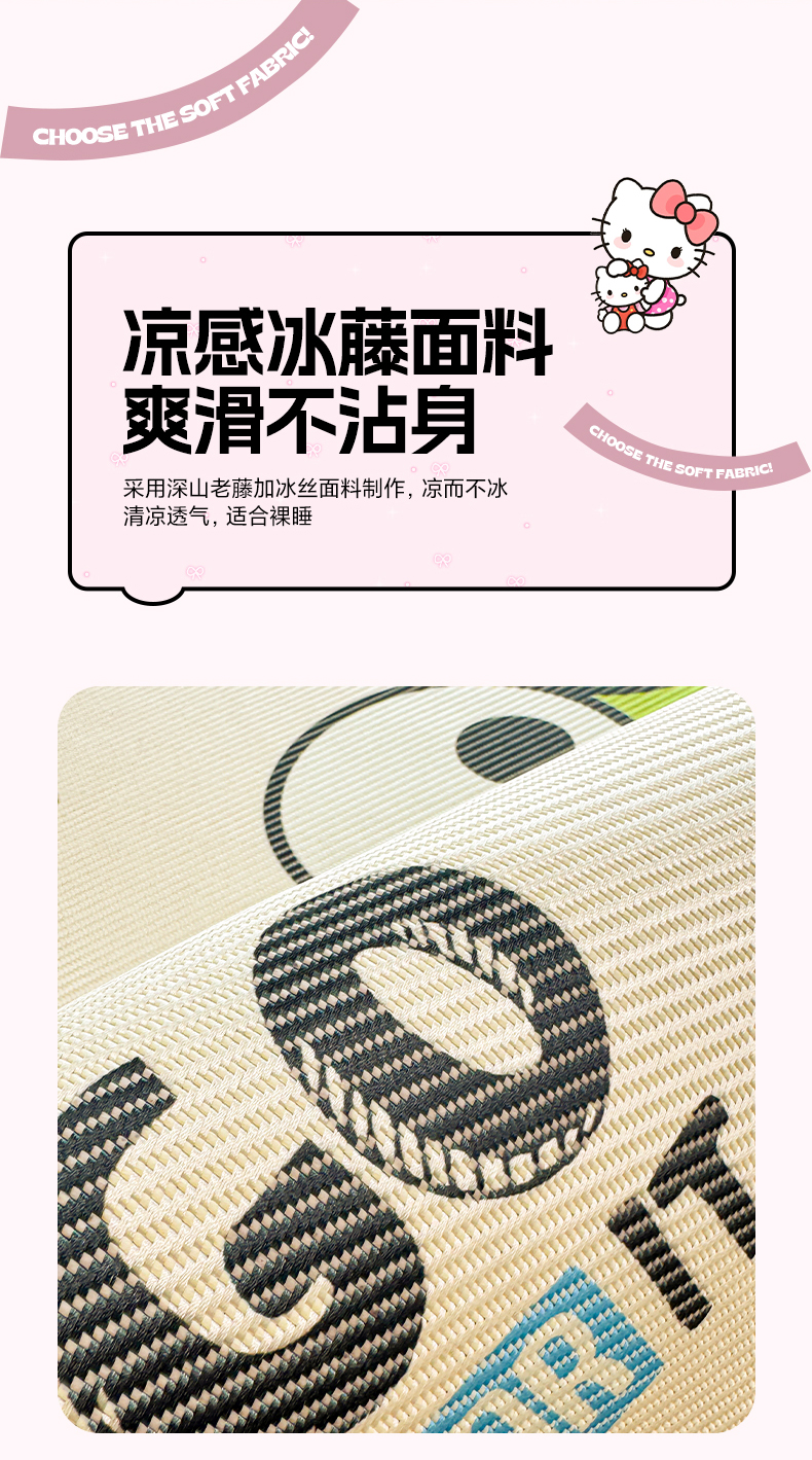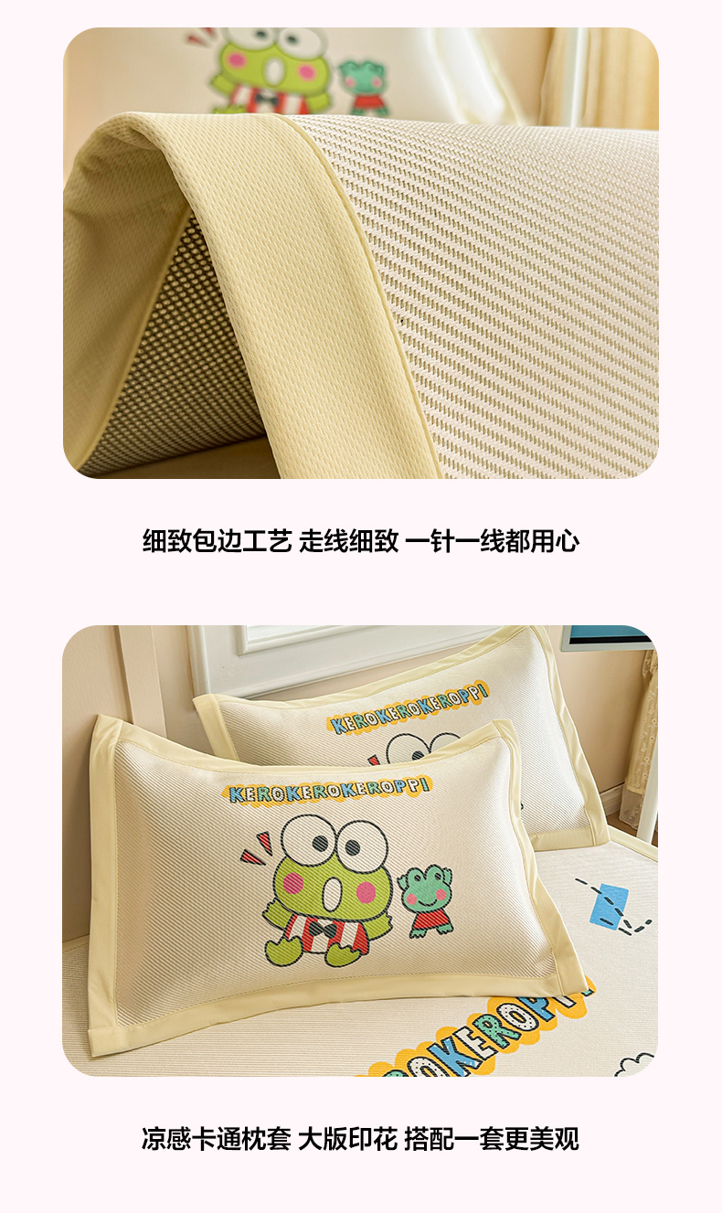 商品名称:蓝邻 2025春夏新款正版三丽鸥600D冰藤大版数码印花凉席-场景一 派队三眼蛙