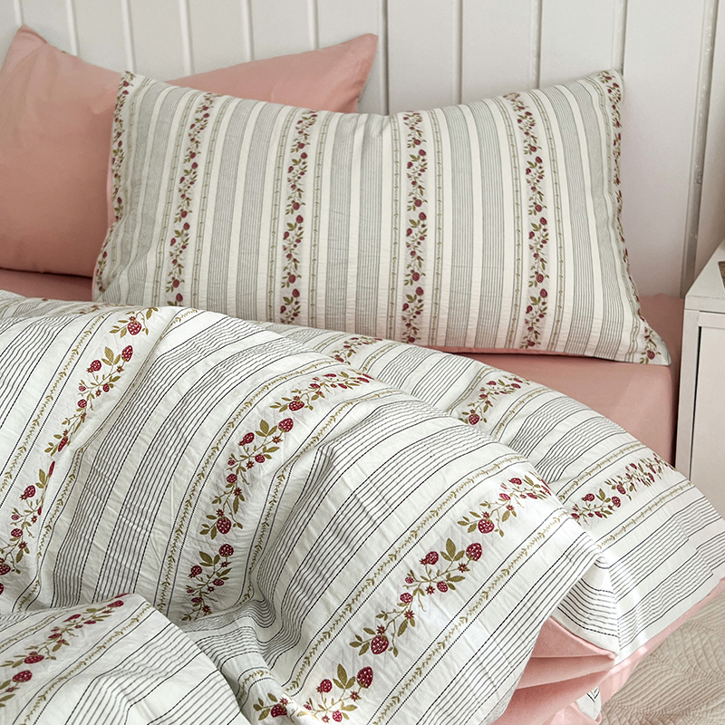 商品名称:倾慕2025新款时尚三层纱色织提花田园风系列枕套 田梦红粉