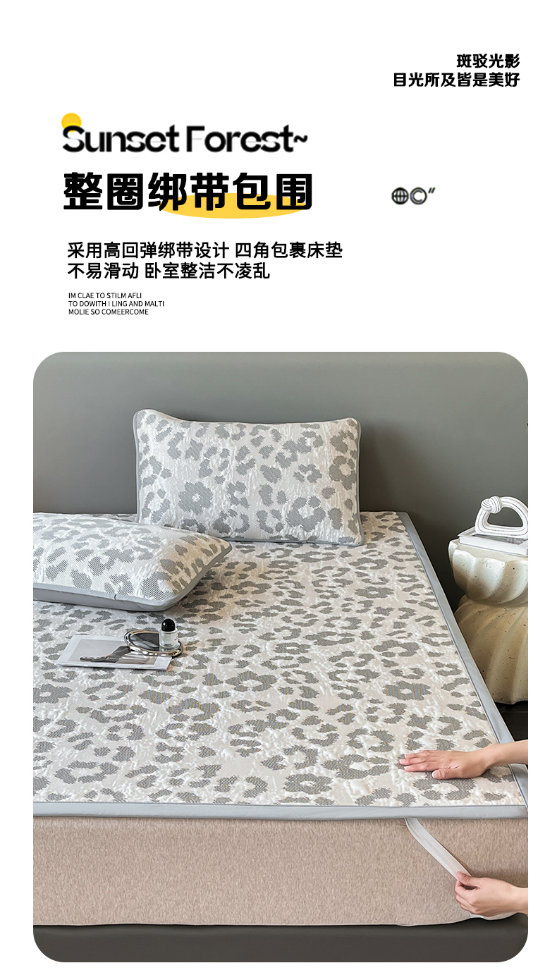 (总)子曰 2025春夏新款A类中分子430gPE聚乙烯乙纶凉豆豆凉席-床笠款,小豹纹-灰,快乐熊-蓝,快乐熊-绿,小豹纹-粉,小鲸鱼,椰子树,英伦-灰