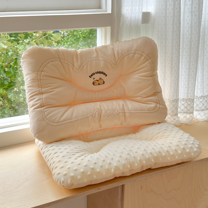 商品名称:北鸣有鱼 2024新款100S全棉A类豆豆绒双拼枕学生儿童抚触柔软护颈椎枕头枕芯 卡皮巴拉