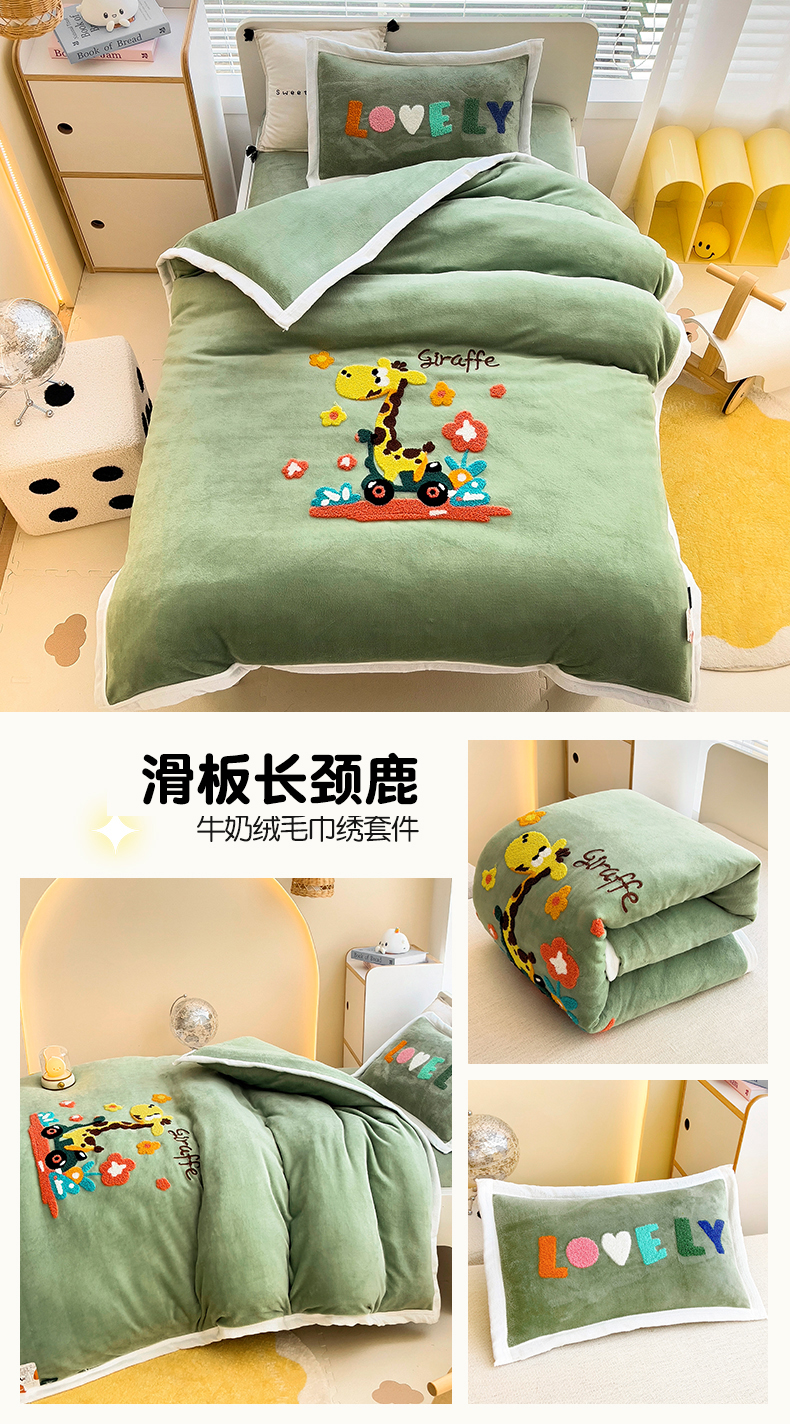 当前位置: 91家纺网 > 商品网购 > 床品套件 > 三件套 > 梵赫 2025新款A类牛奶绒毛巾绣儿童幼儿园三件套多件套 滑板长颈鹿