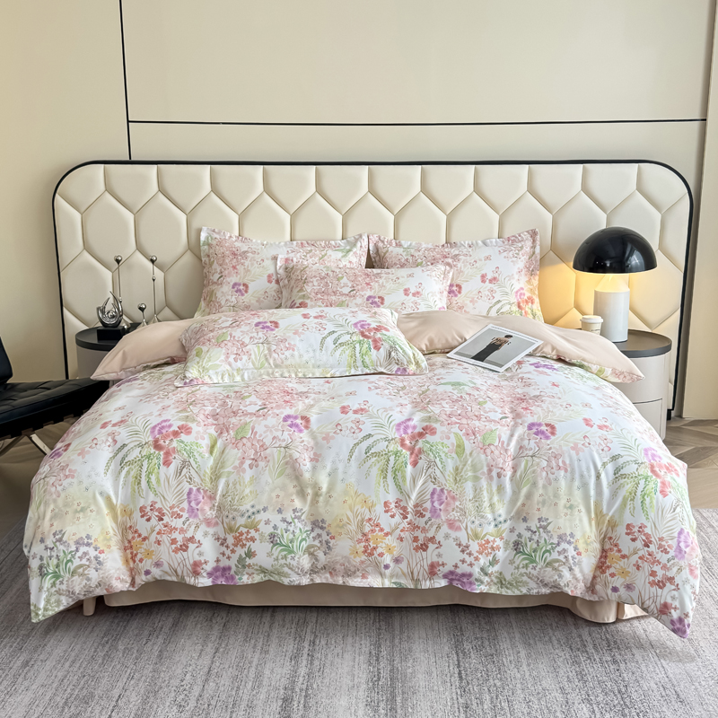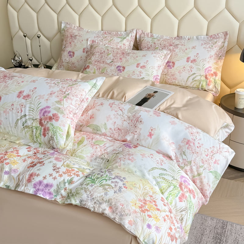 (总)优纤家纺 2025新款水洗真丝四件套,高定风华,花间时光,九重紫,流满时光,缦野观夏,秘境花庭,绮梦,小兰花,熊猫报竹,粉红佳人