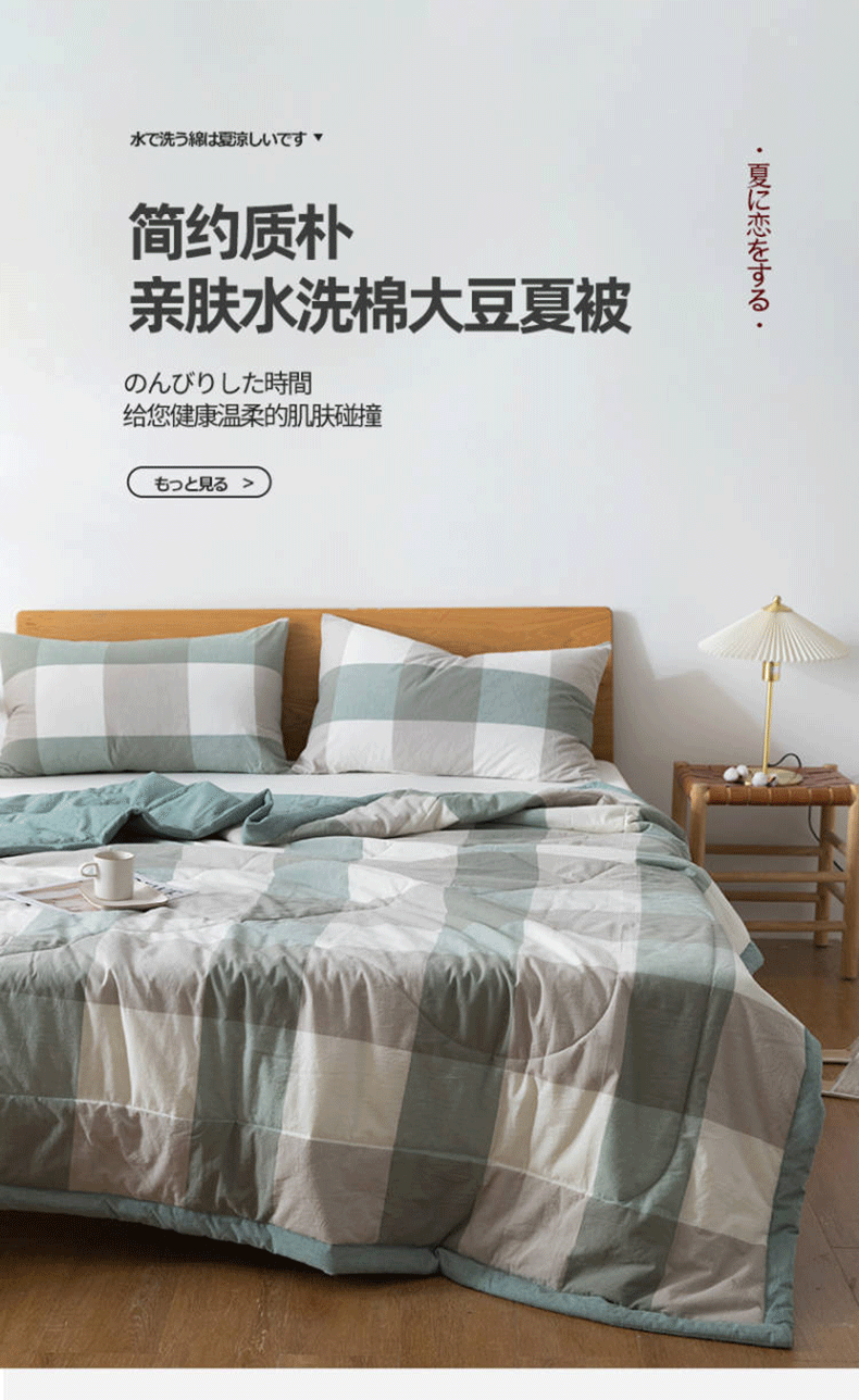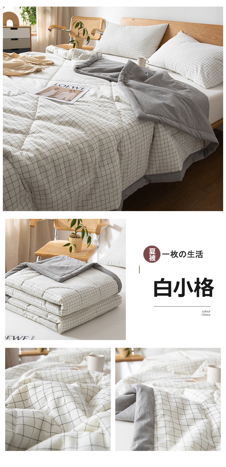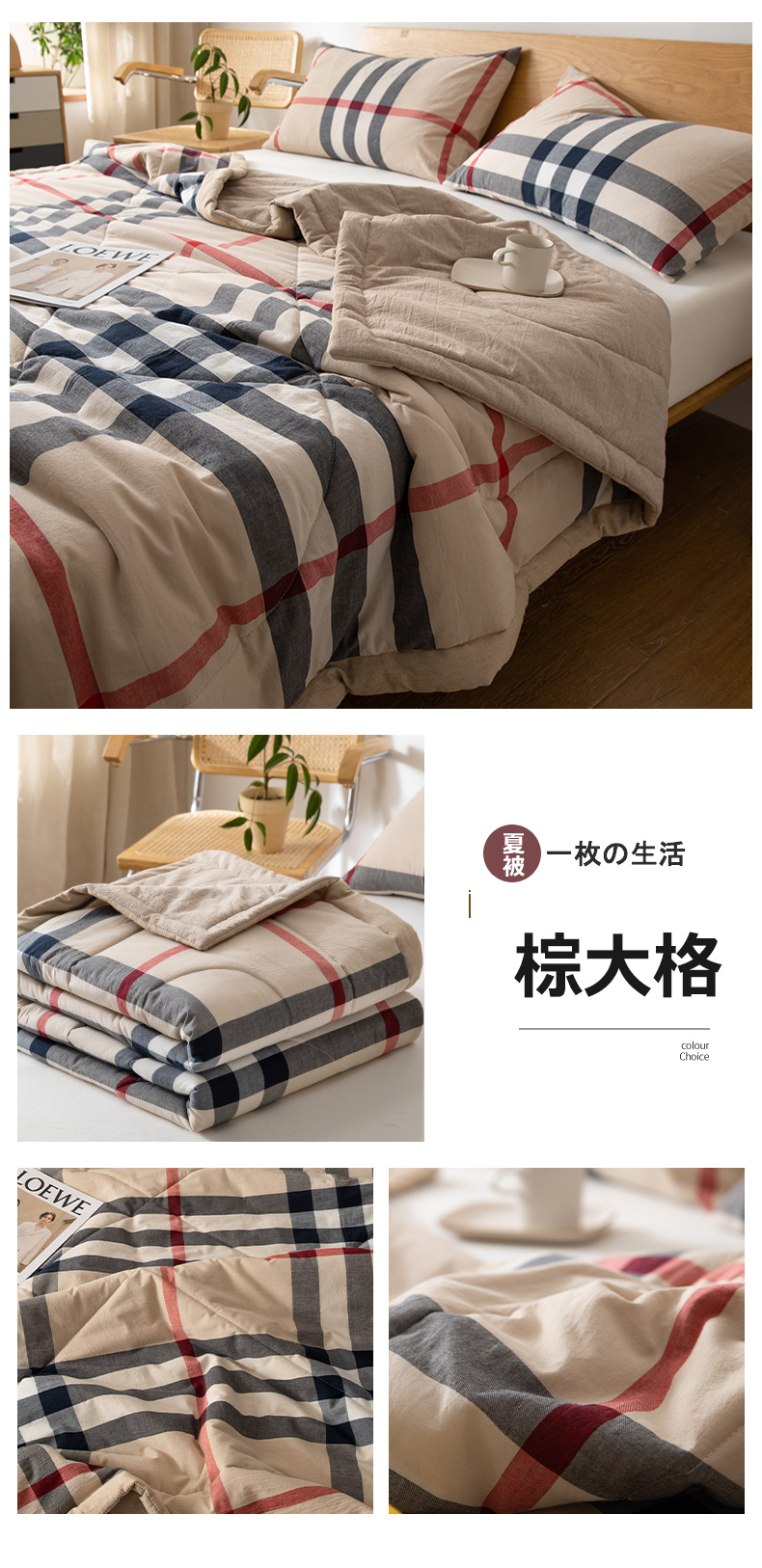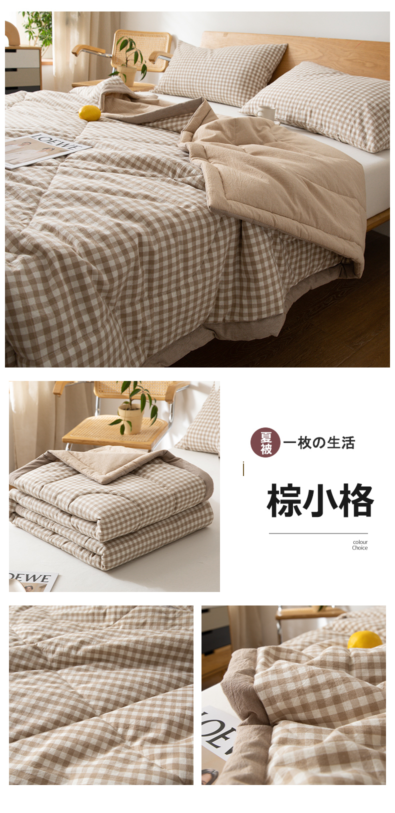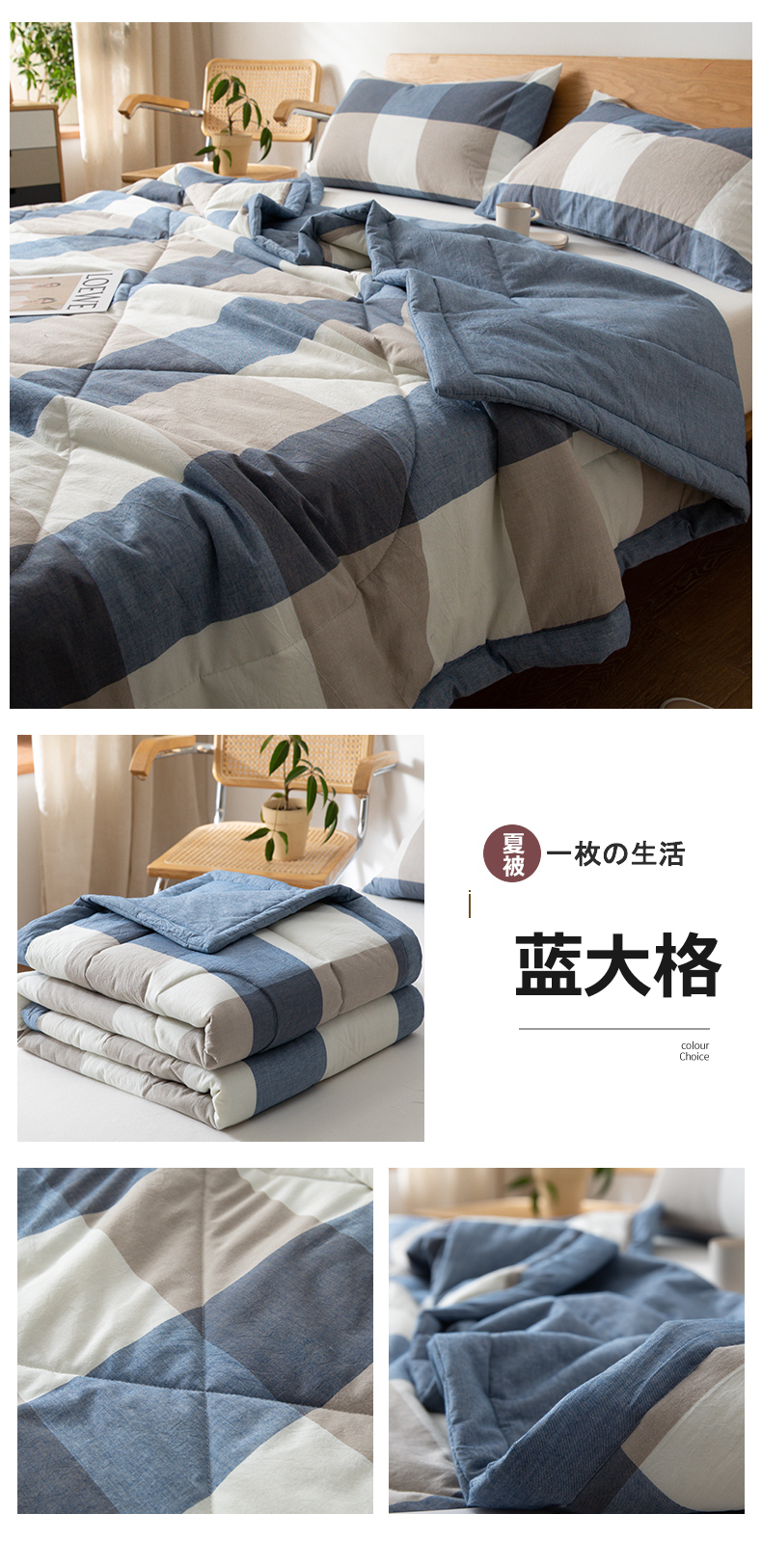 被子 > 夏被 > (总)缦绣阁家纺 2025春夏新款无印风格子夏凉被亲肤柔软裸睡级色织水洗棉大豆夏被空调被可机洗凉感夏被
