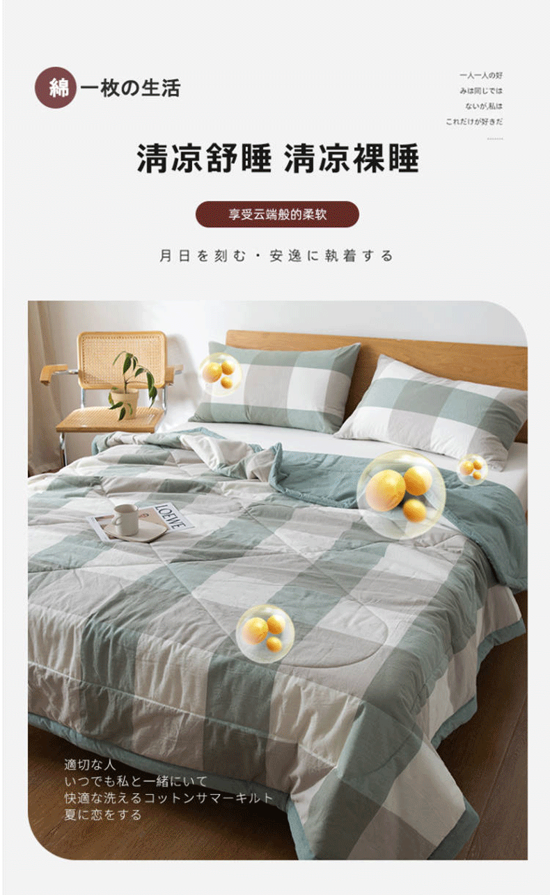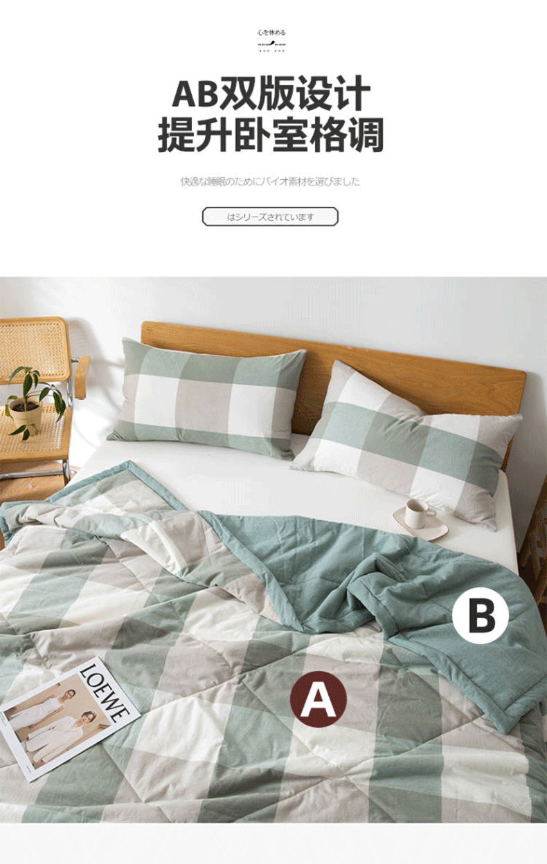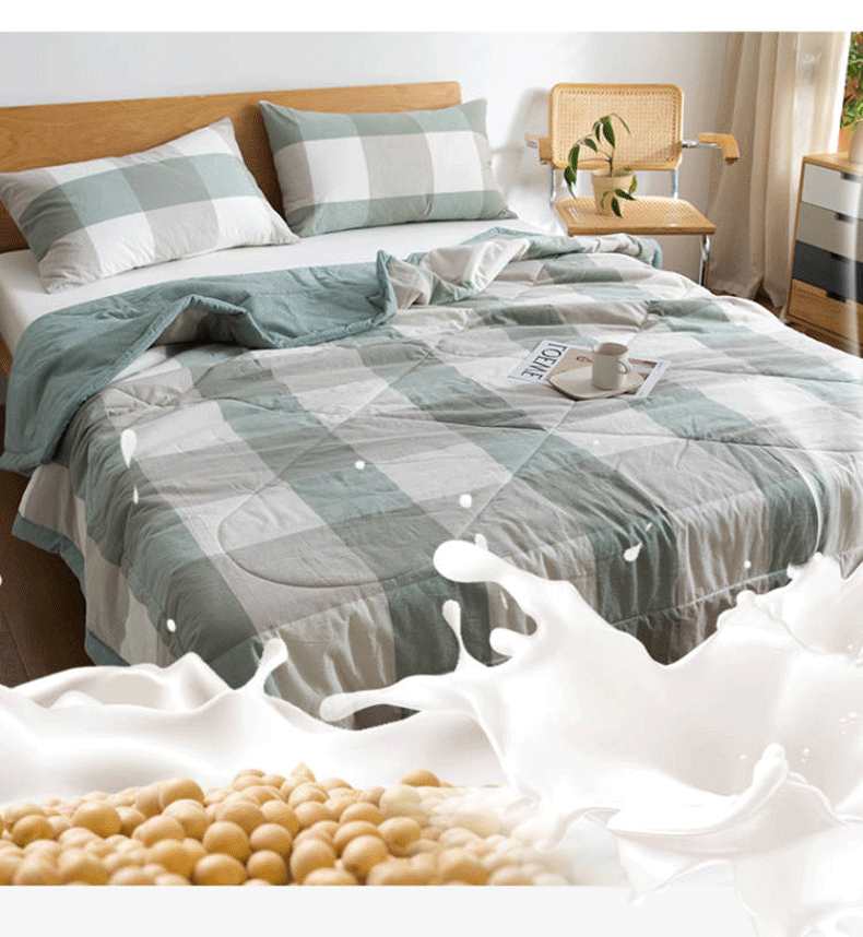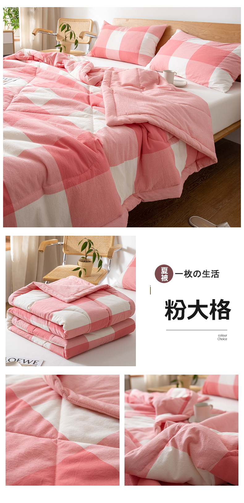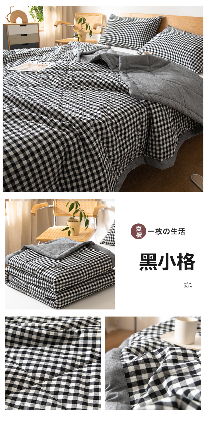被子 > 夏被 > (总)缦绣阁家纺 2025春夏新款无印风格子夏凉被亲肤柔软裸睡级色织水洗棉大豆夏被空调被可机洗凉感夏被