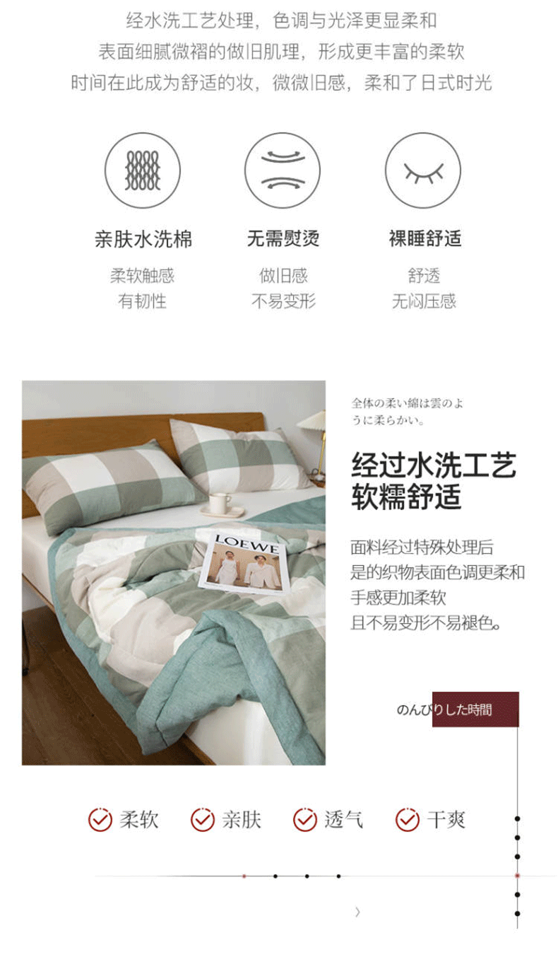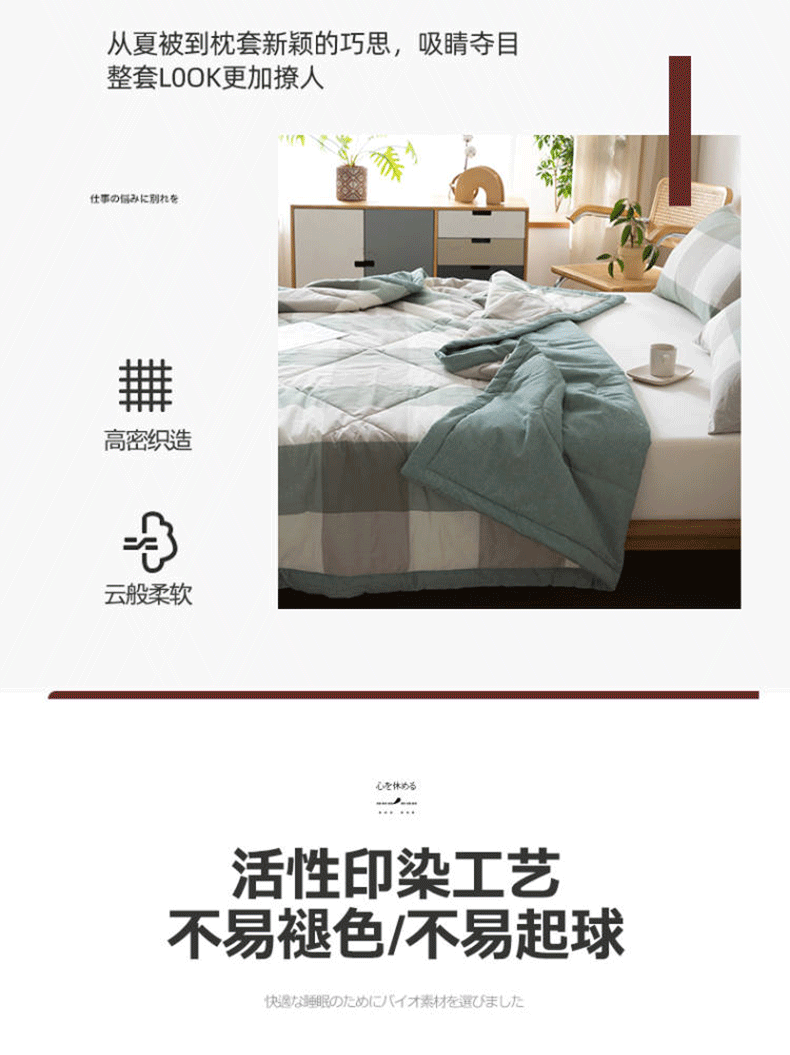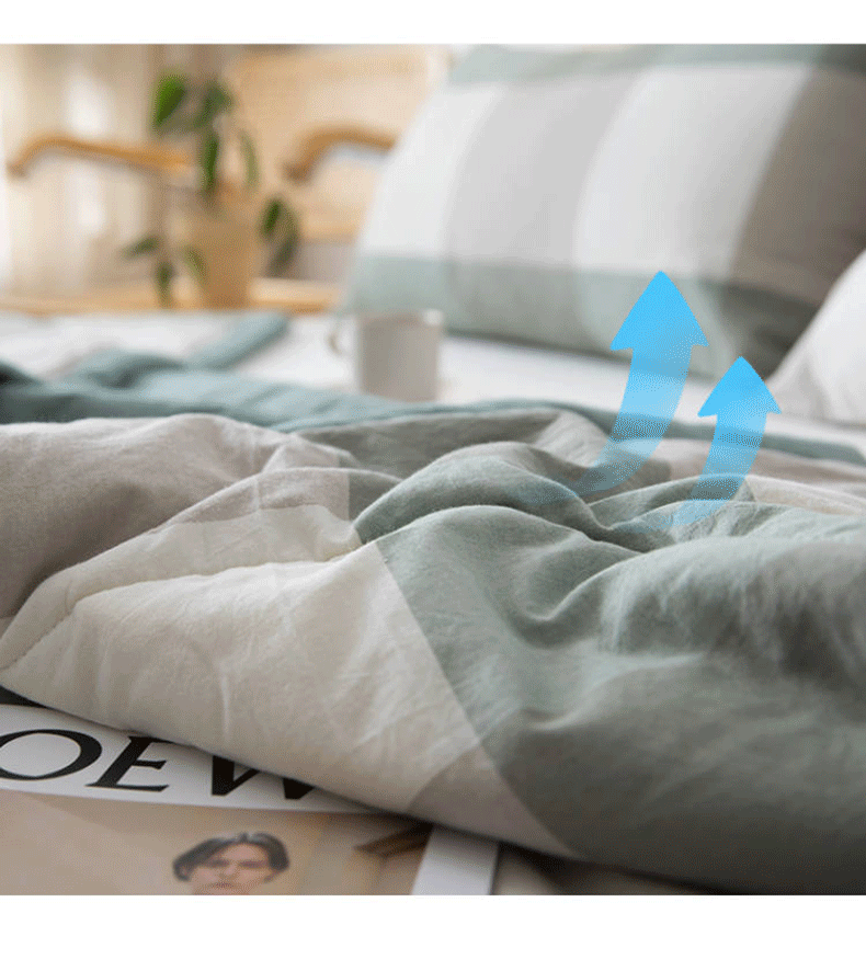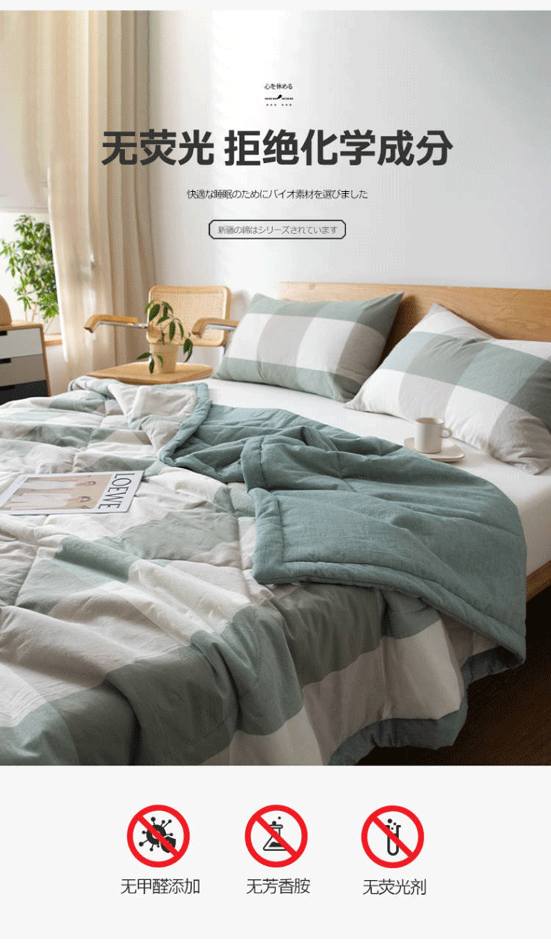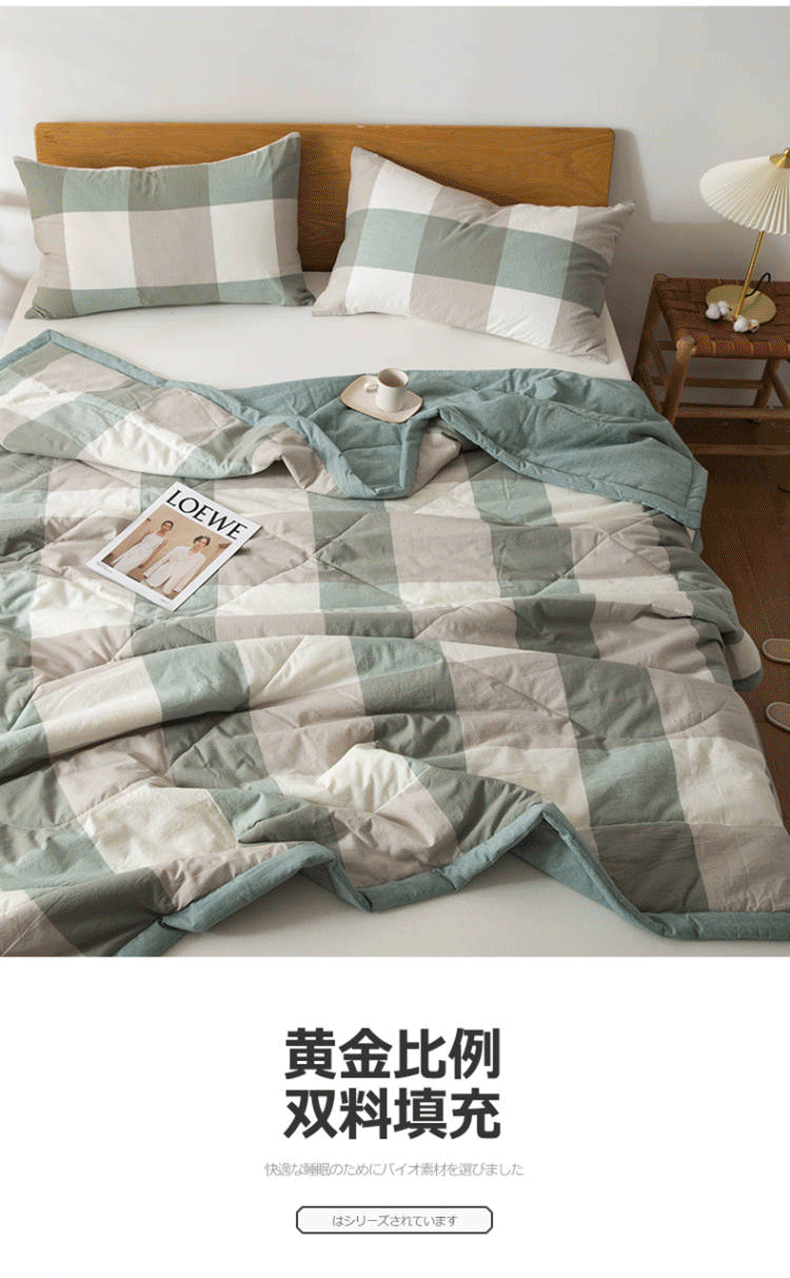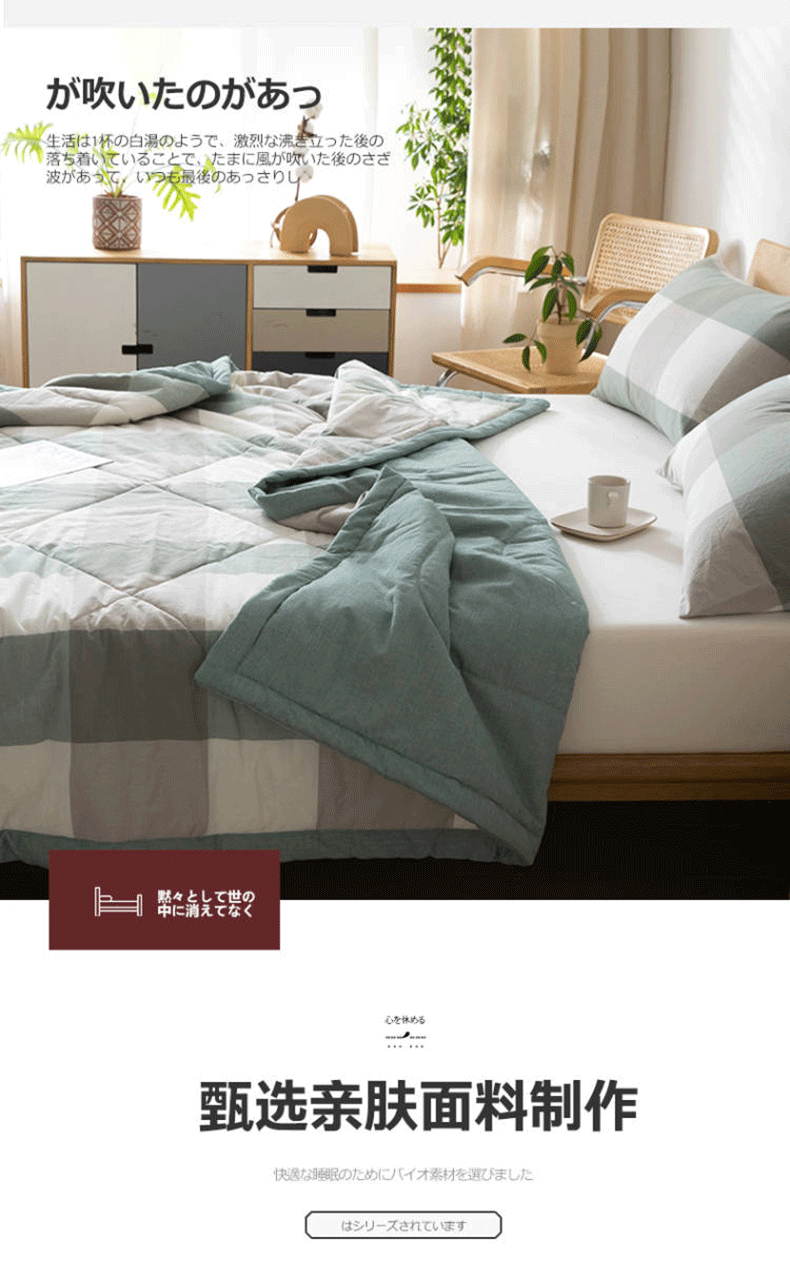 被子 > 夏被 > (总)缦绣阁家纺 2025春夏新款无印风格子夏凉被亲肤柔软裸睡级色织水洗棉大豆夏被空调被可机洗凉感夏被