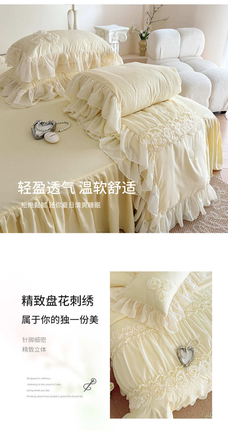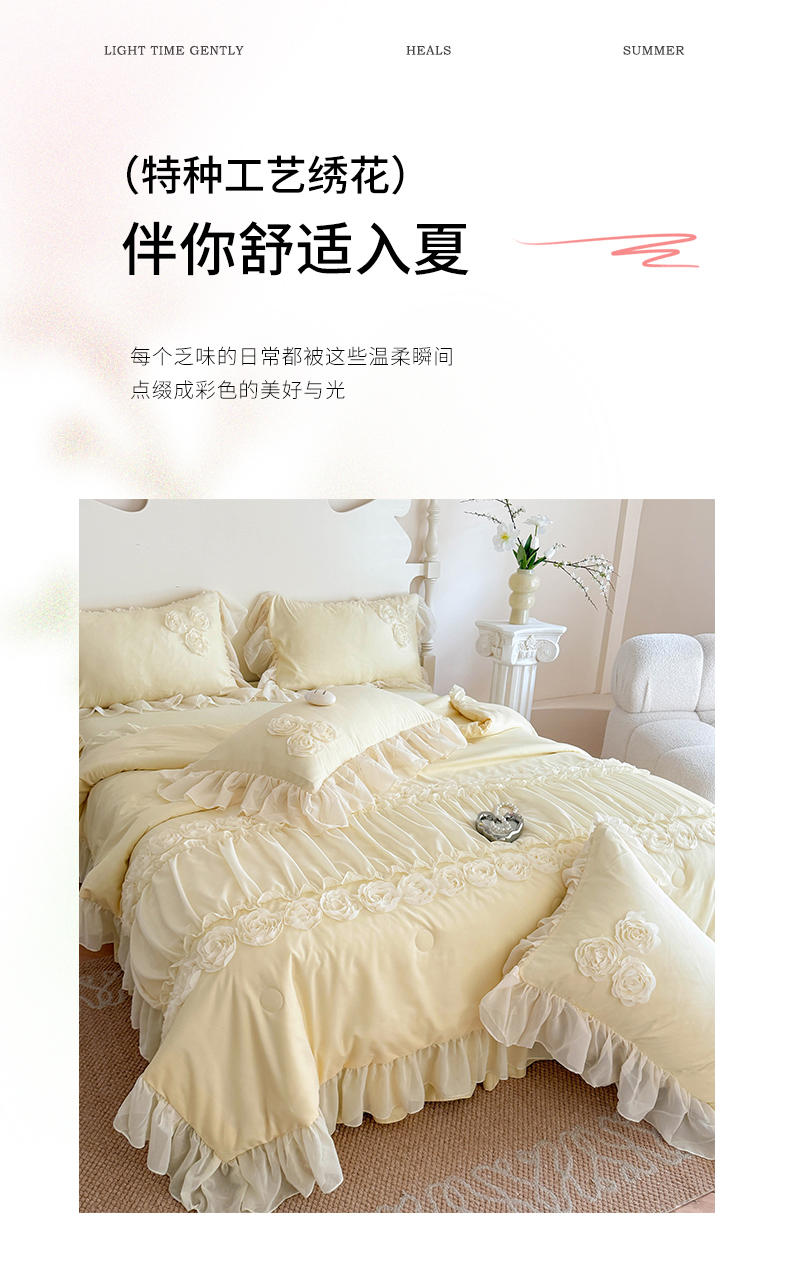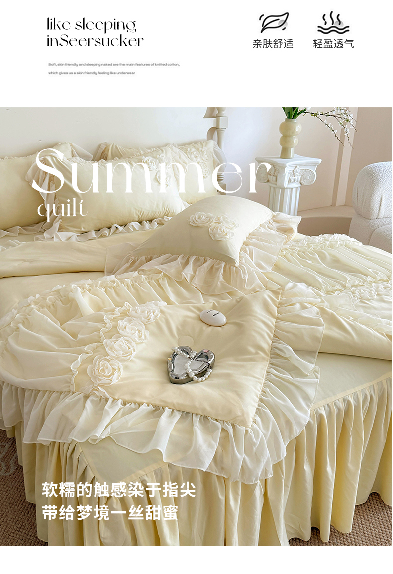 当前位置: 91家纺网 > 商品网购 > 床品套件 > 四件套 > 夏被四件套 > 富盛家纺 2025新款水洗亲肤棉盘花特种刺绣夏被夏凉被空调被床裙款四件套 甜蜜蜜-黄