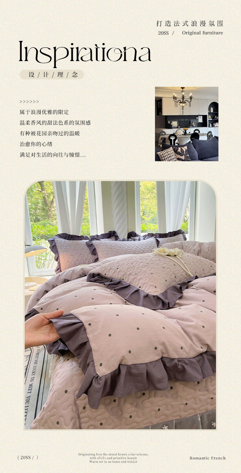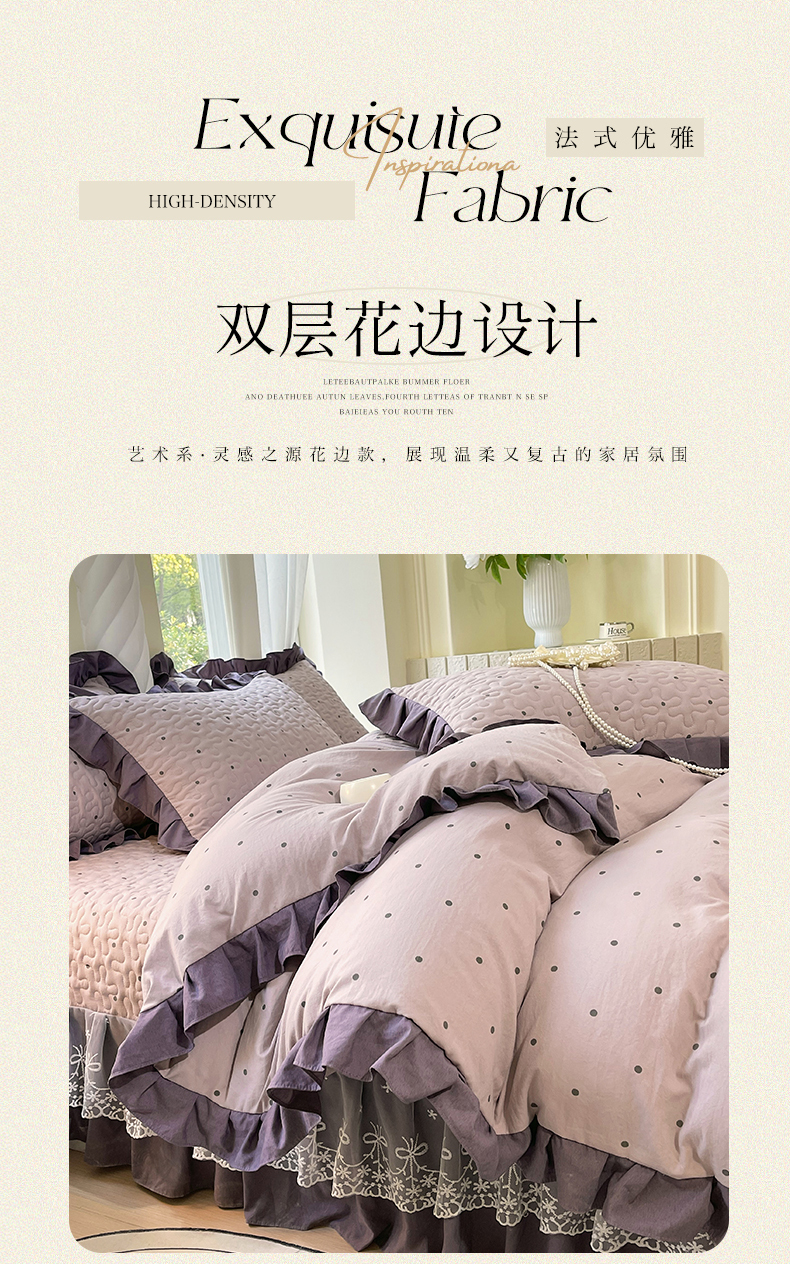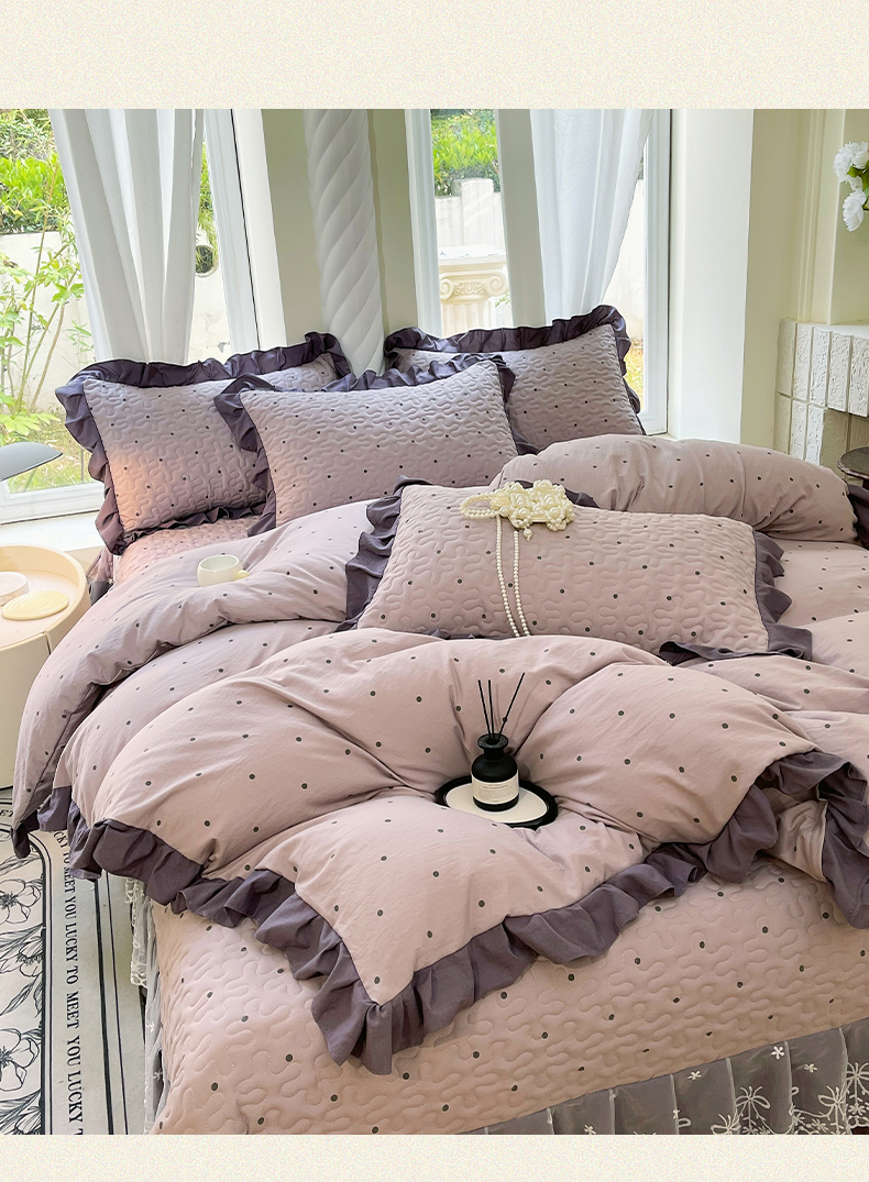 当前位置: 91家纺网 > 商品网购 > 床品套件 > 四件套 > 水洗棉四件套 > 雨彤家纺 2025年新款赫本风云朵水洗棉夹棉双层花边床盖四件套 芋艿波波-紫-赫本风