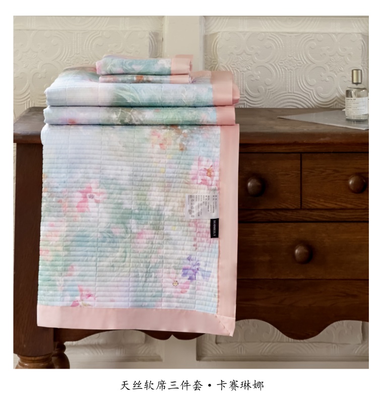 商品名称:南通朵美纺织品有限公司 2025【DM】50天丝软席席子三件套 简爱 灰