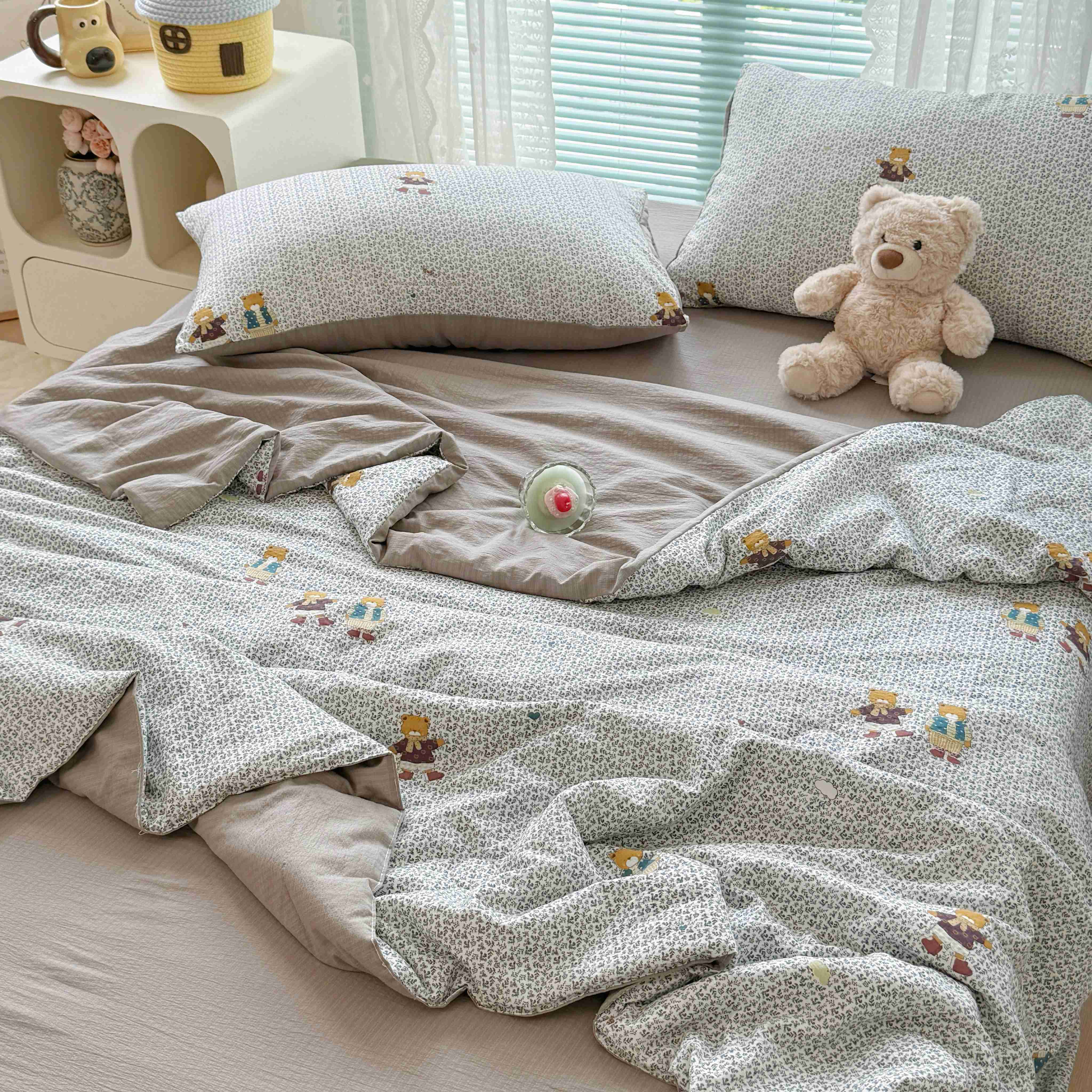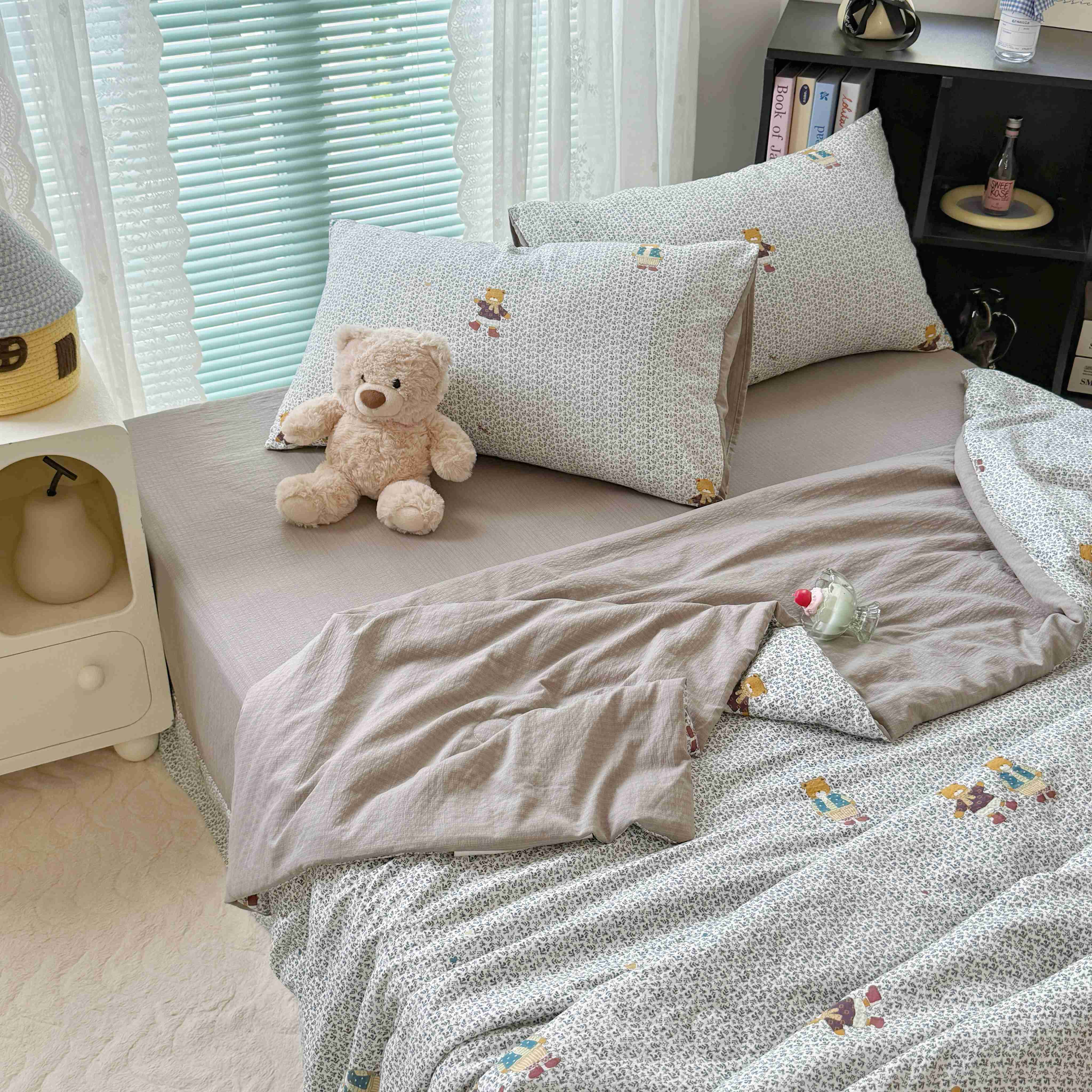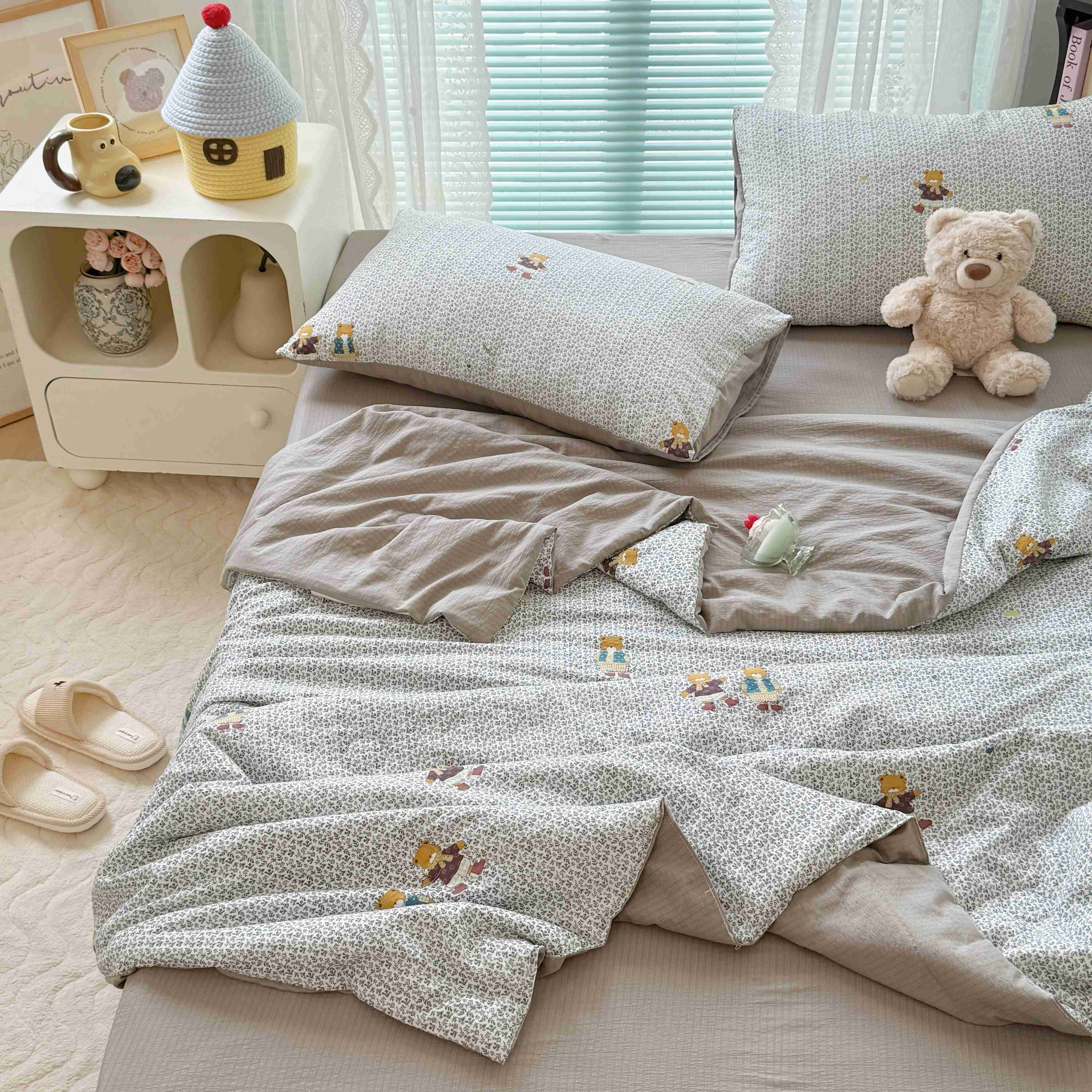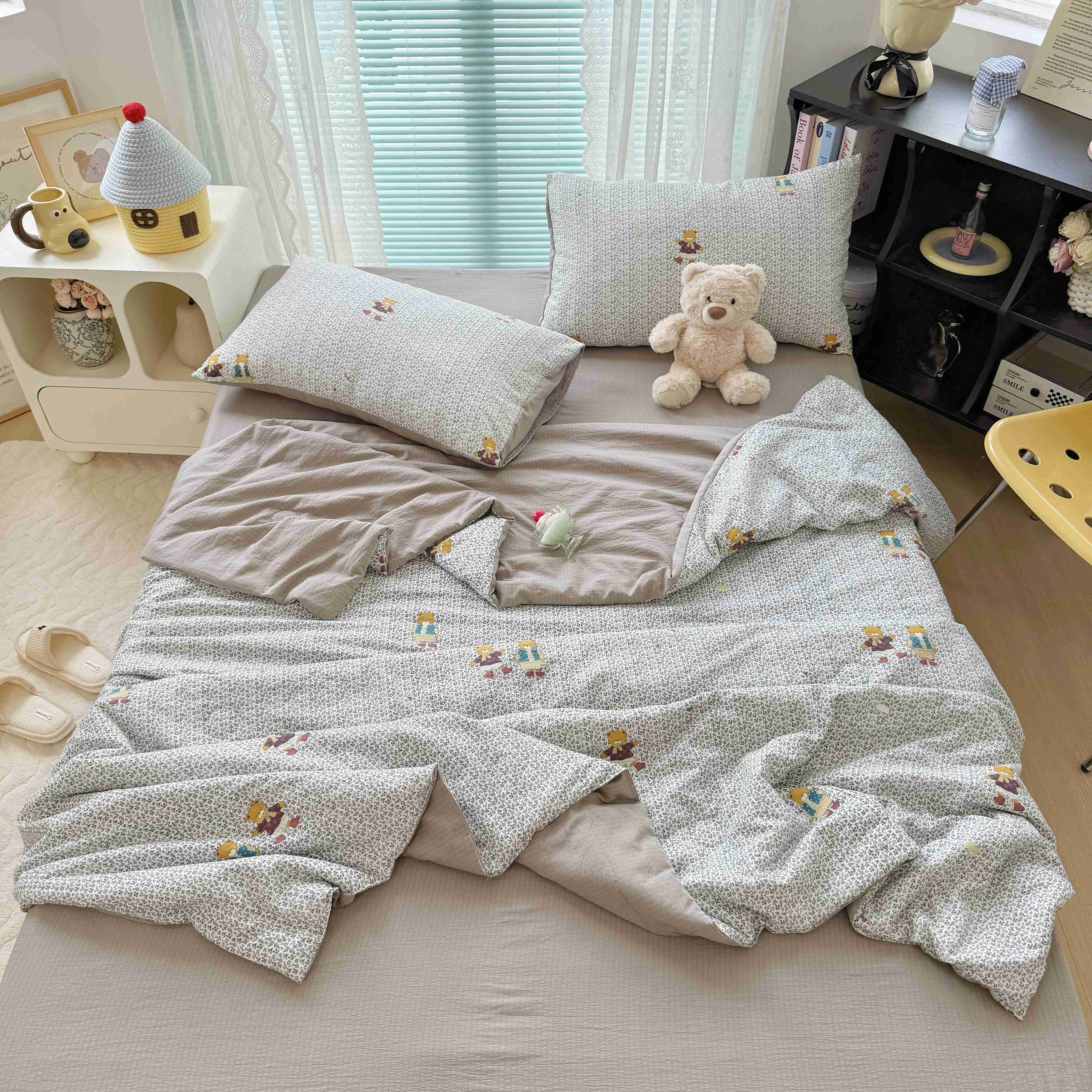 暖伊家居 2025新款云感双层纱夏被四件套 酷萌小熊