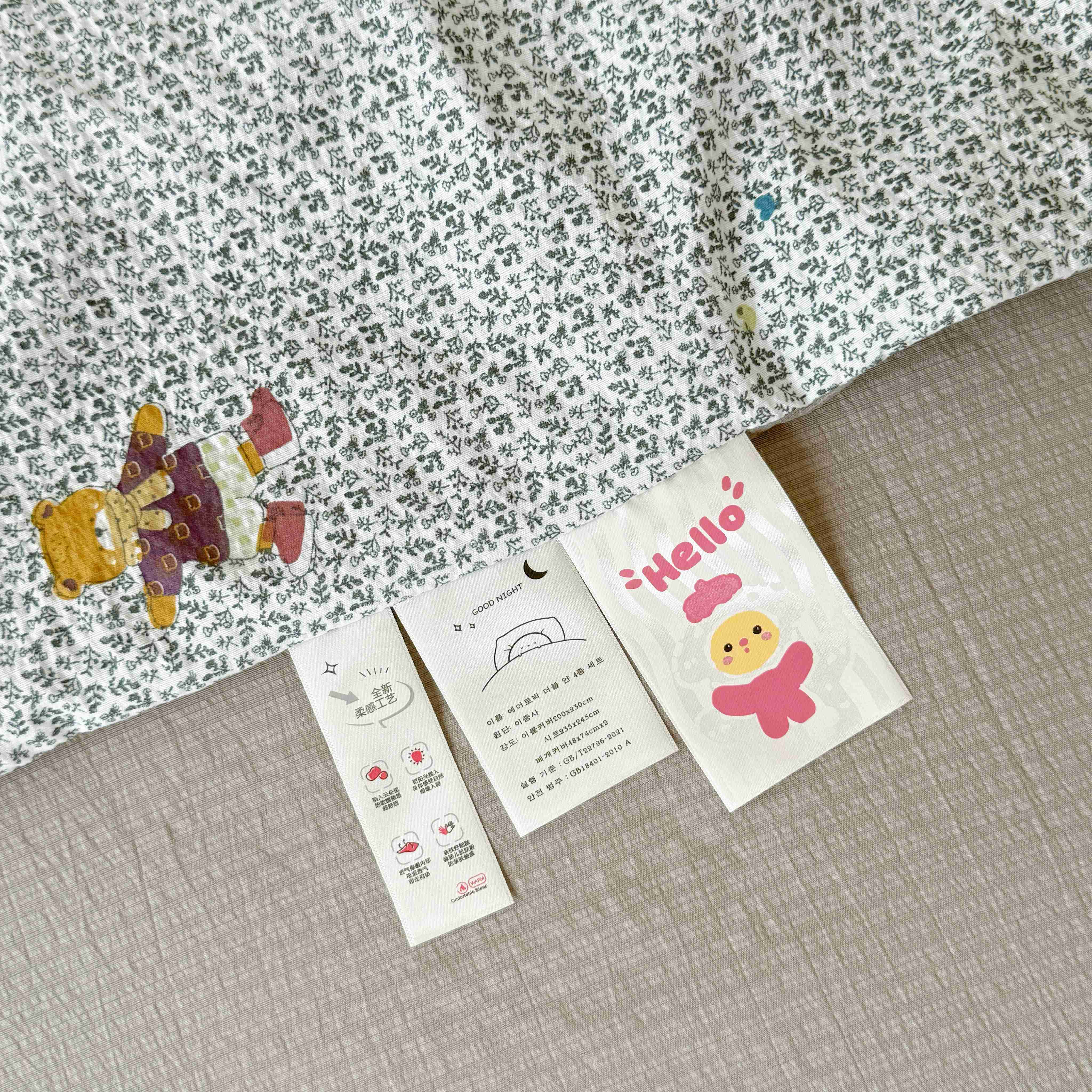 商品名称:暖伊家居 2025新款云感双层纱夏被四件套 酷萌小熊