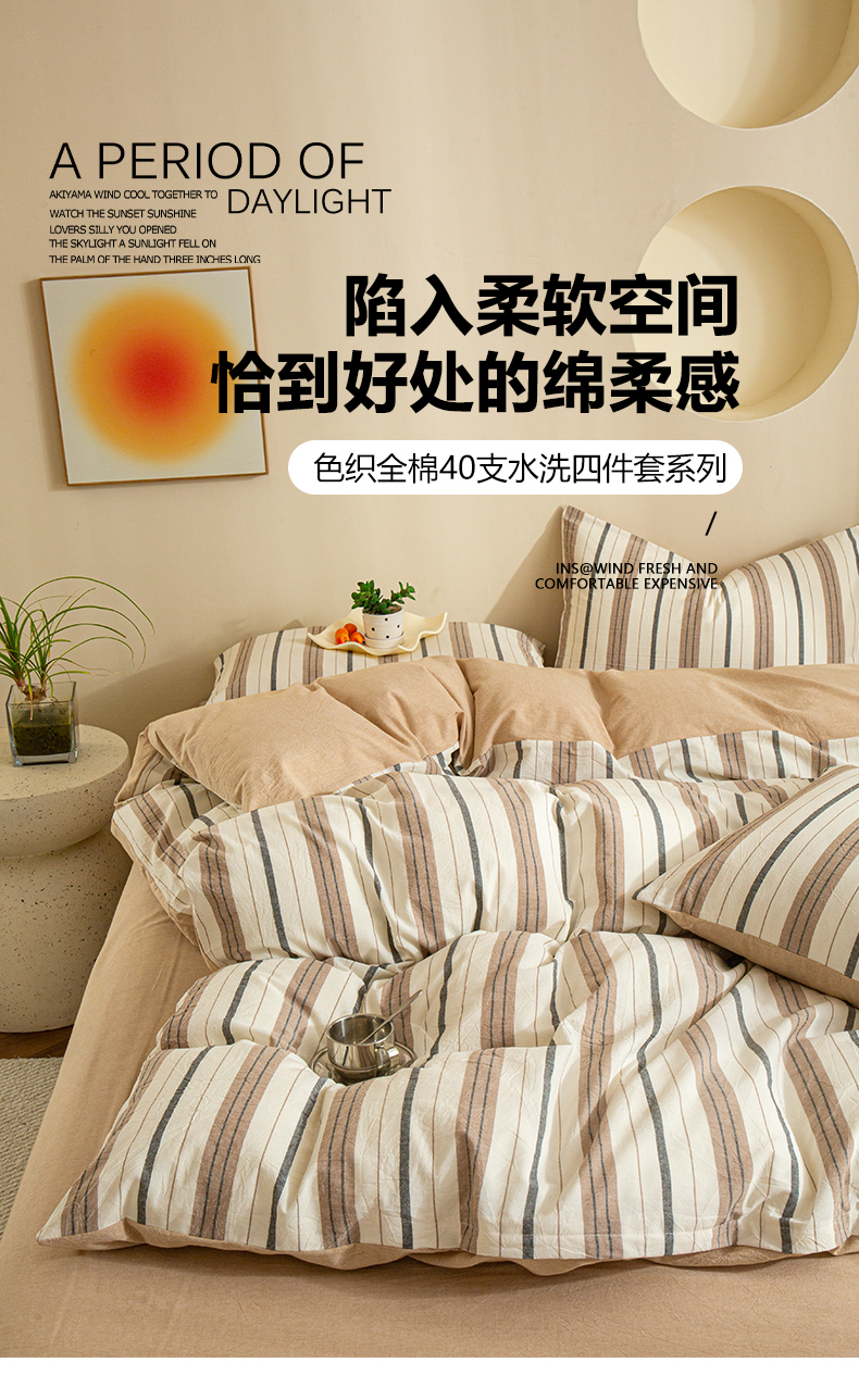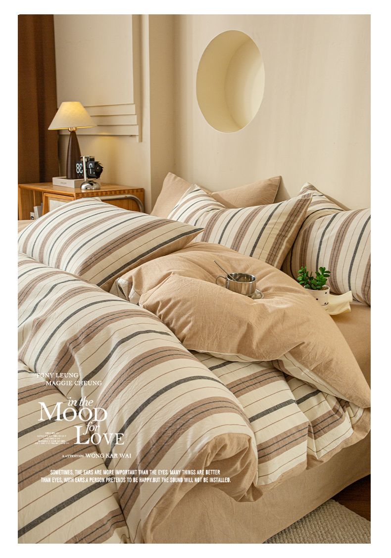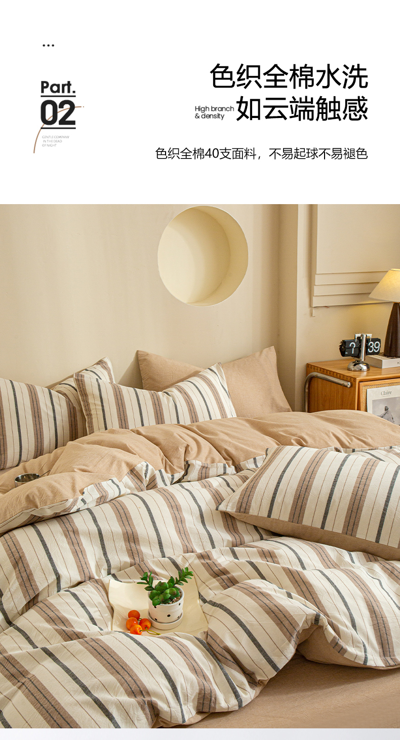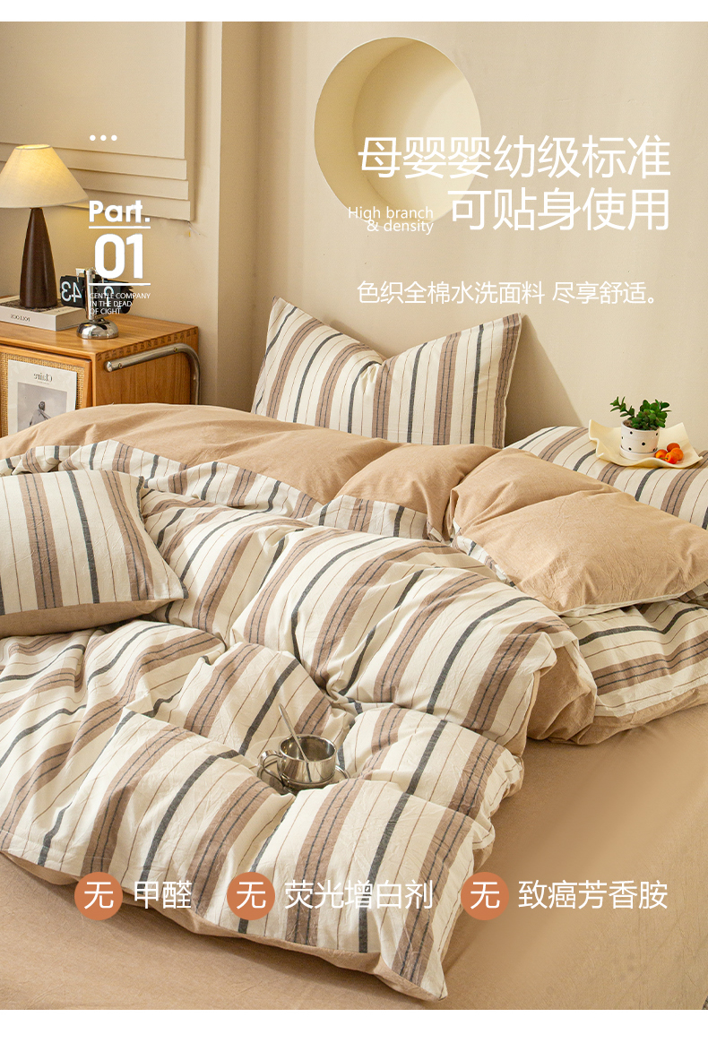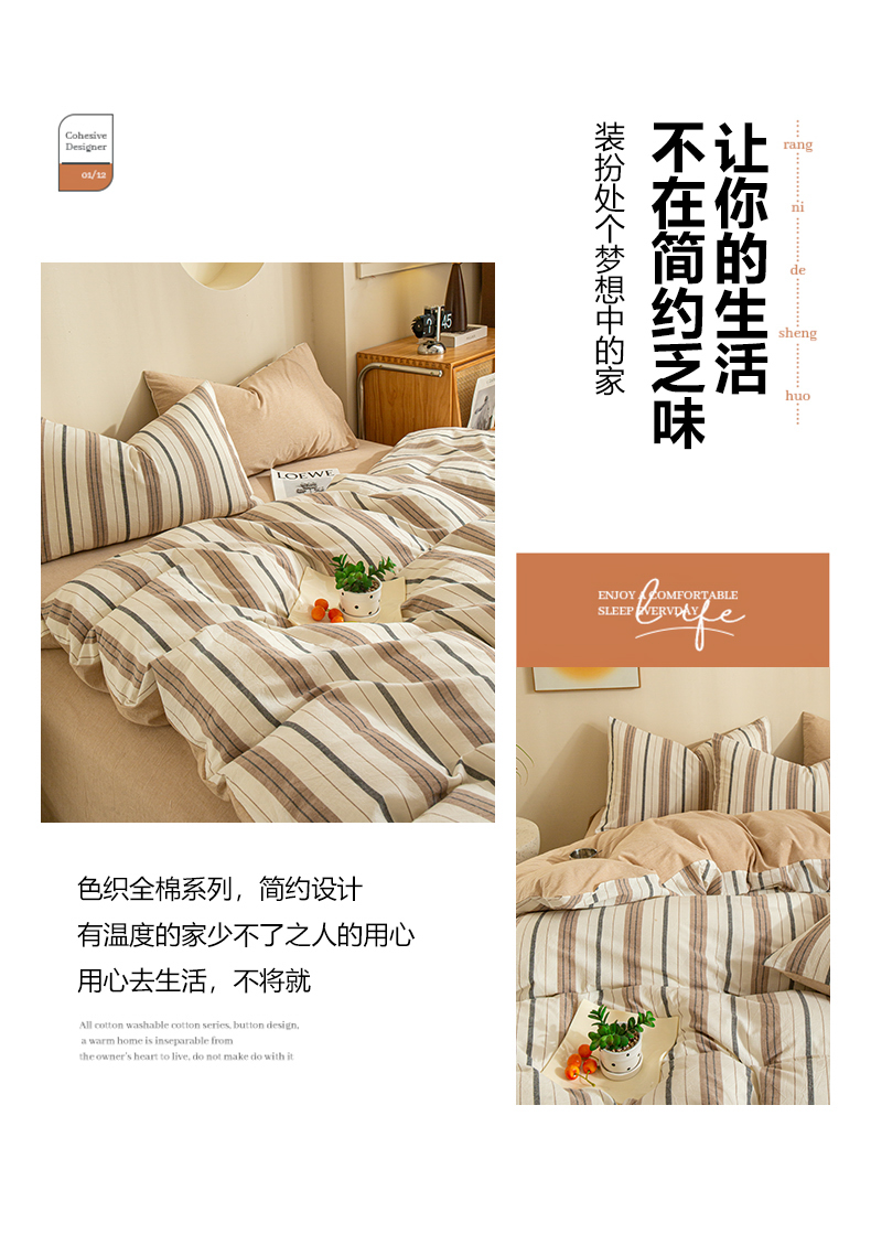 商品名称:优米家纺 2025新款色织全棉纯棉40支水洗四件套及床单系列-四件套 古烟咖