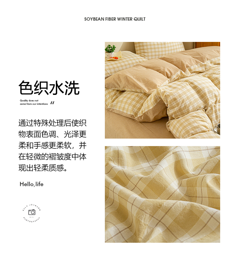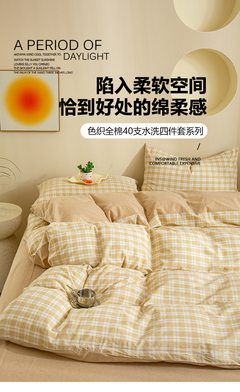 优米家纺 2025新款色织全棉纯棉40支水洗四件套及床单系列-四件套 圣代咖