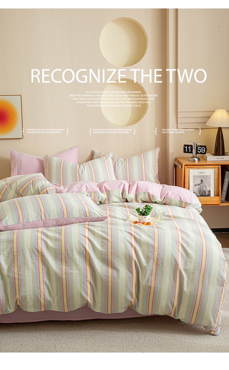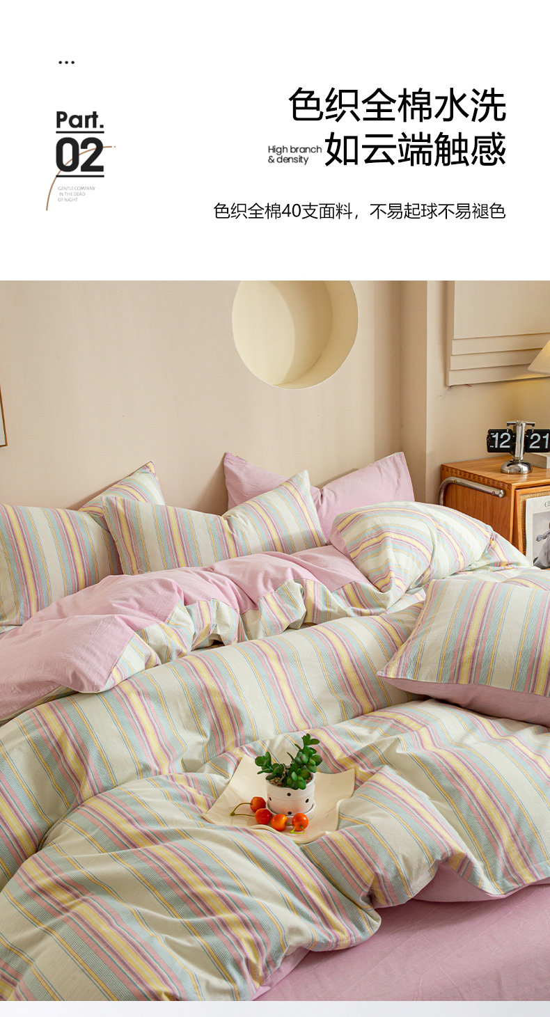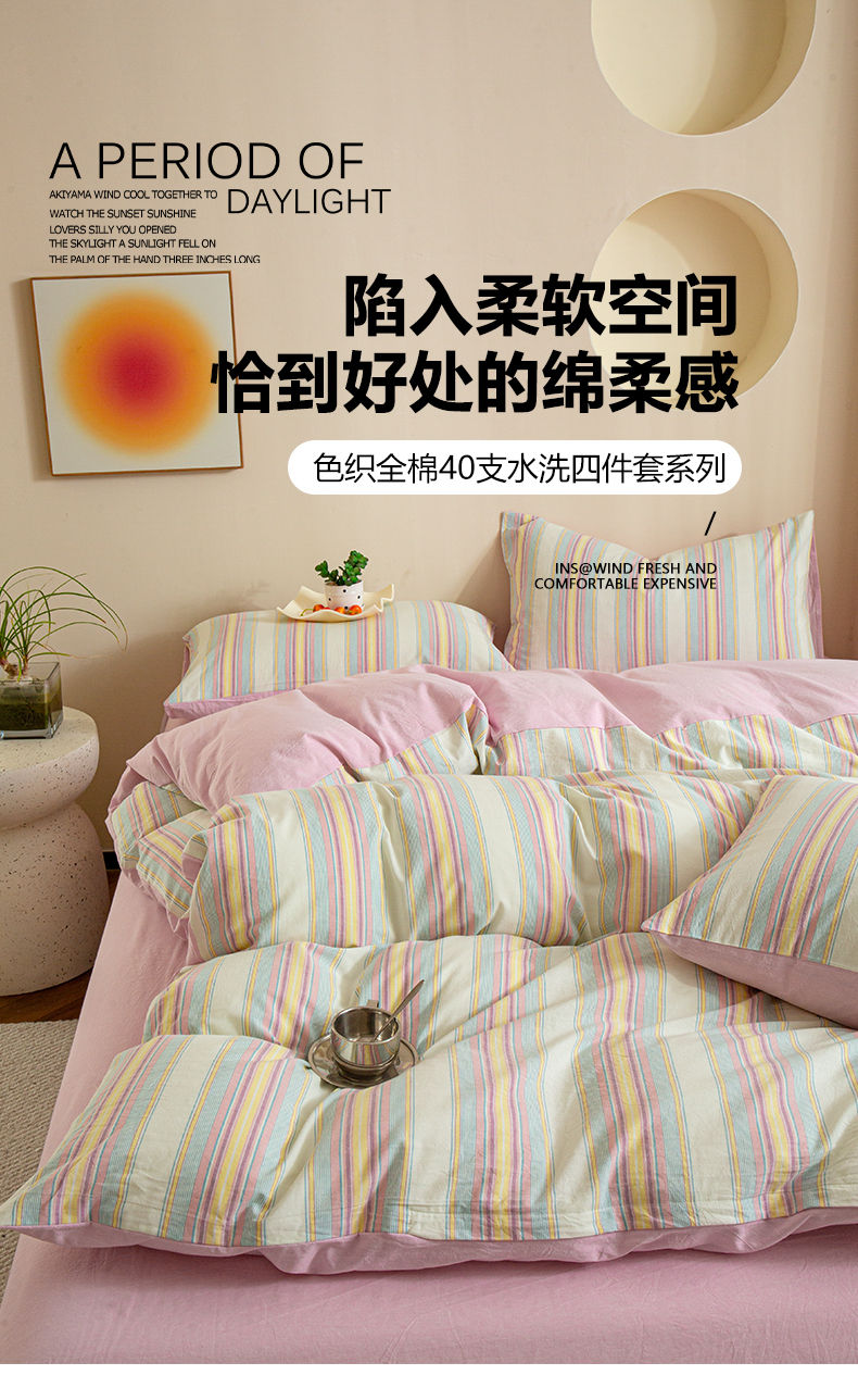 商品名称:优米家纺 2025新款色织全棉纯棉40支水洗四件套系列-单床单 锦素粉