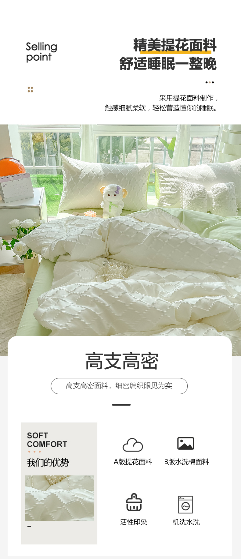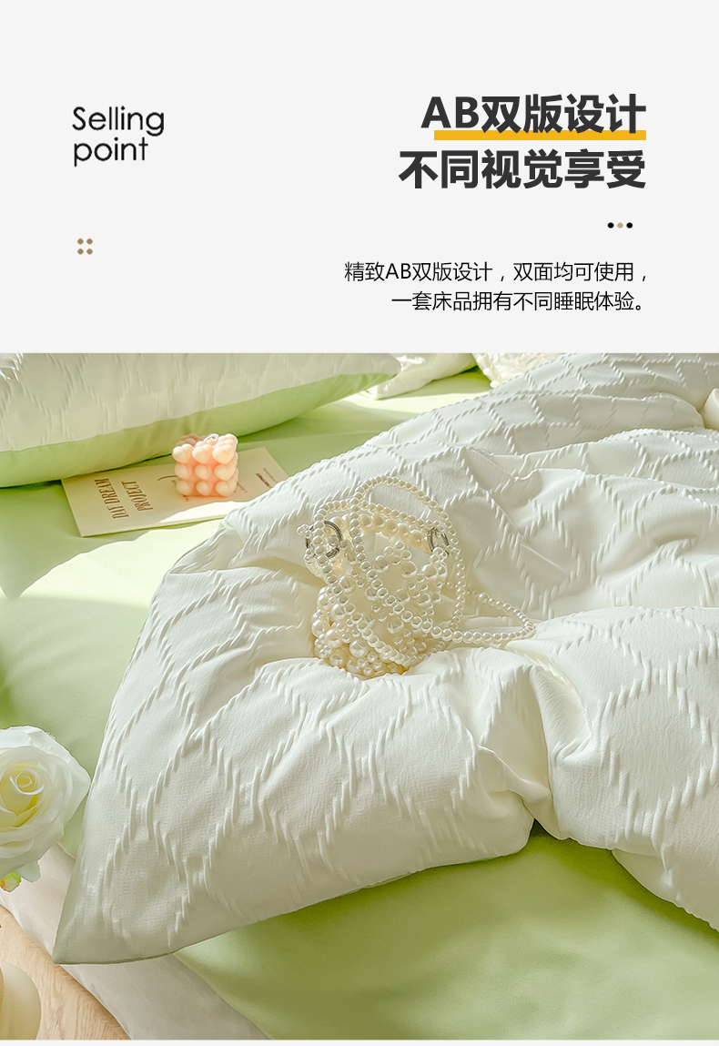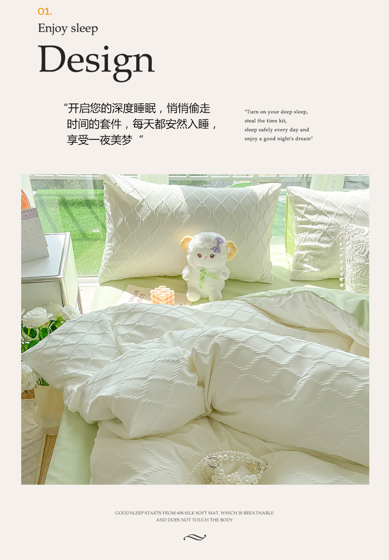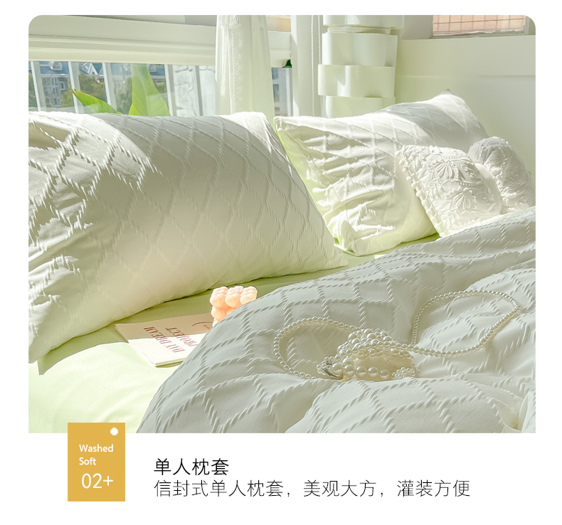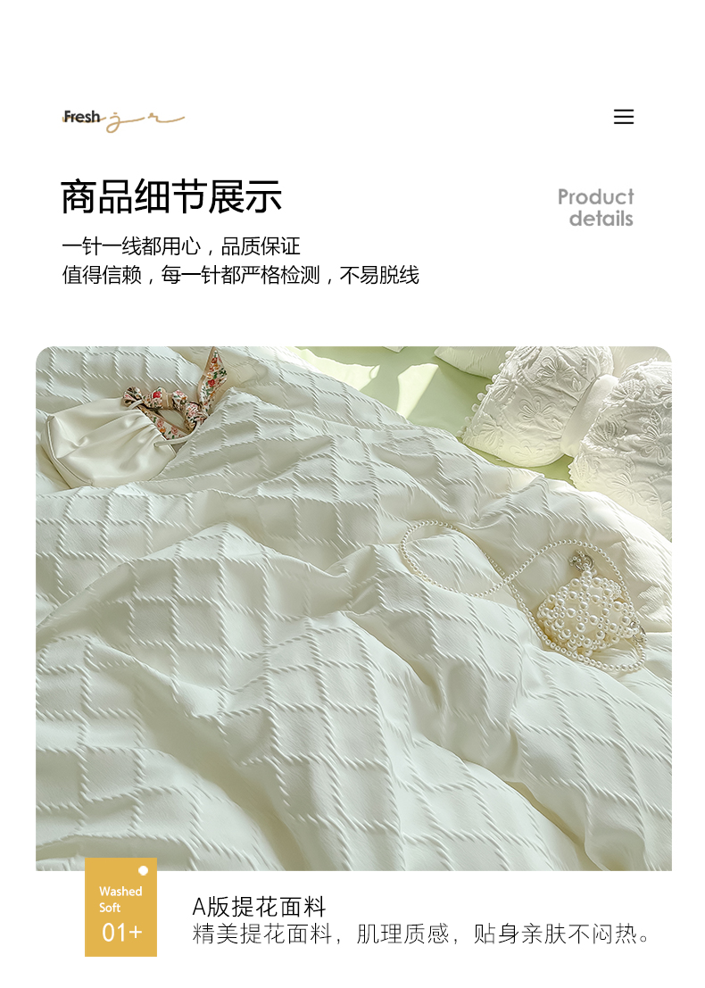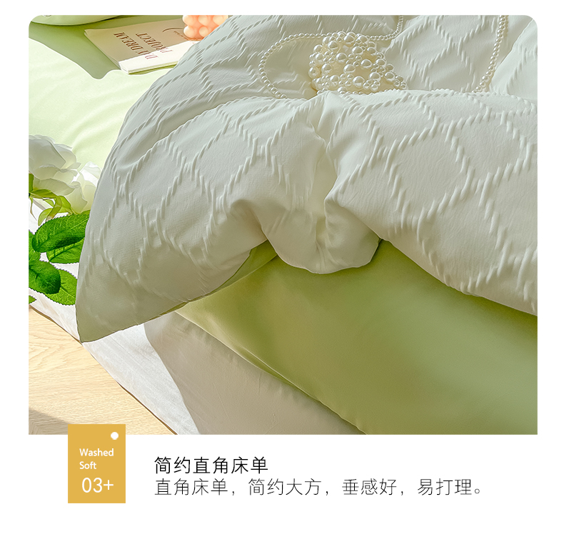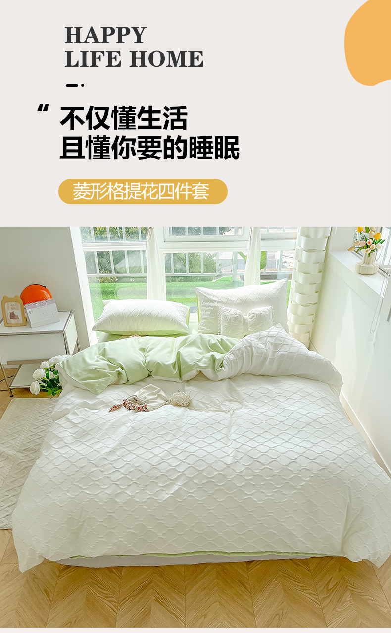 当前位置: 91家纺网 > 商品网购 > 床品套件 > 四件套 > 其它四件套 > 缦绣阁家纺 2025新款AB版菱形格简约提花四件套小清新床单款床笠款4件套生宿舍三件套 菱形格提花-奶白+果绿