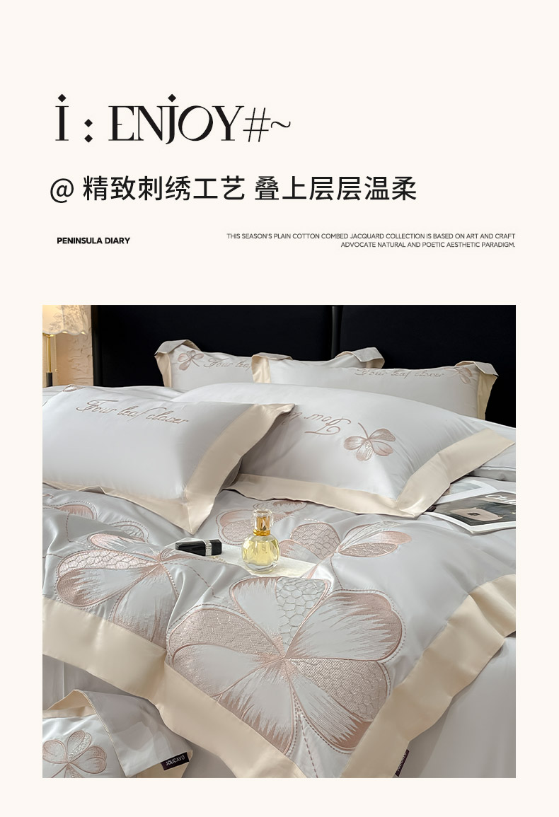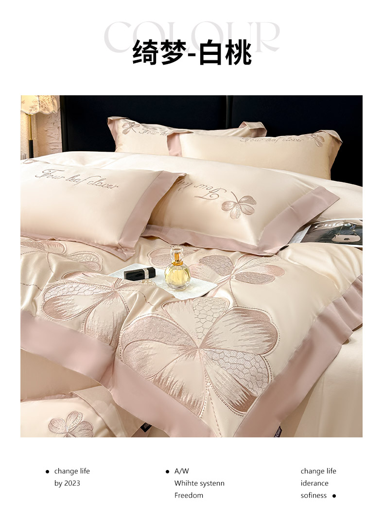 (总) 2025春夏长绒棉四件套纯棉全棉轻奢风床单被套重工刺绣床上用品,芊羽梦-白粉,芊羽梦-茶绿,芊羽梦-黛紫,芊羽梦-慕蓝,芊羽梦-颜粉
