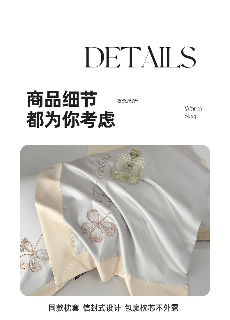 商品名称:【直播爆款】A类全棉四件套纯棉轻奢重工刺绣床单床笠夏季床单床笠床上用品 绮梦-烟灰
