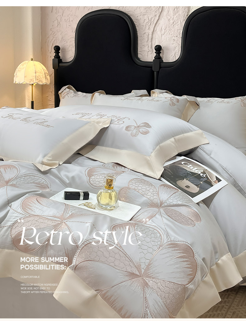 【直播爆款】A类全棉四件套纯棉轻奢重工刺绣床单床笠夏季床单床笠床上用品 绮梦-烟灰