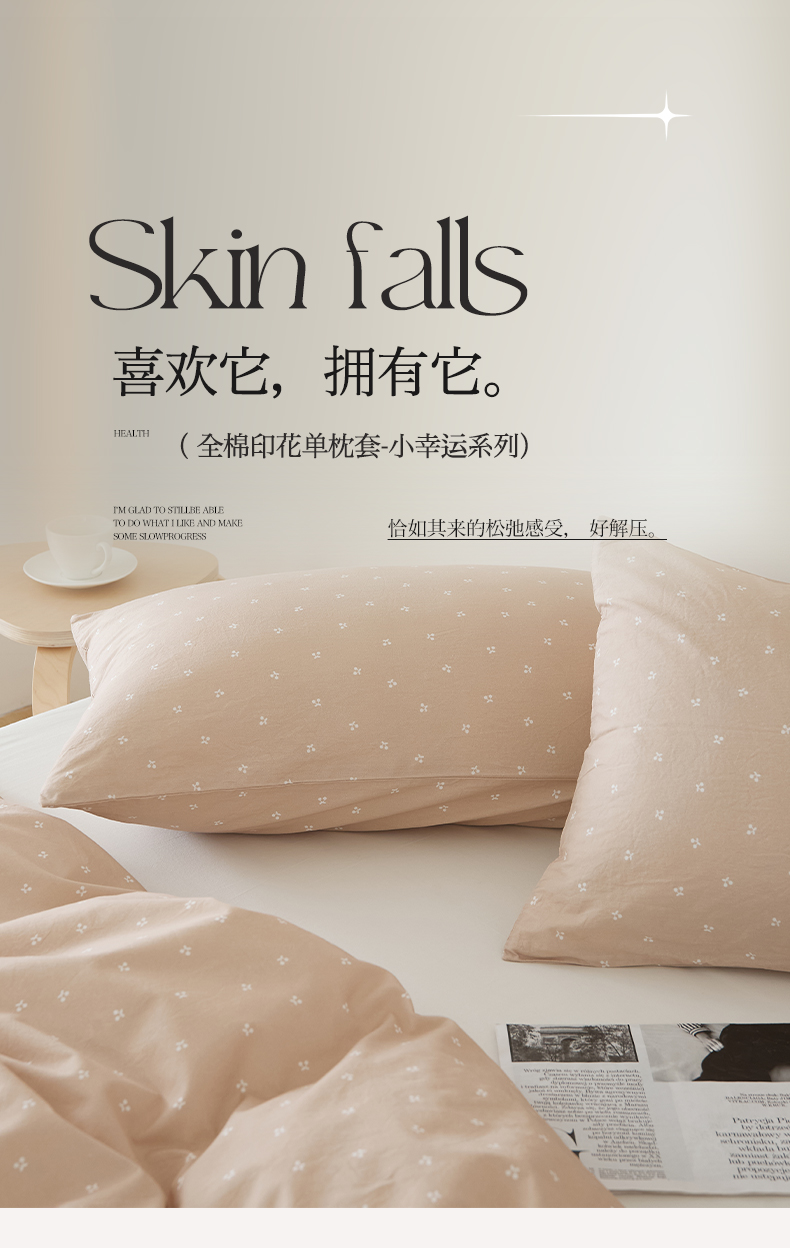 商品名称:EH家居 2025春夏新款40s全棉纯棉印花枕套单件 单枕套-小幸运 小樱桃